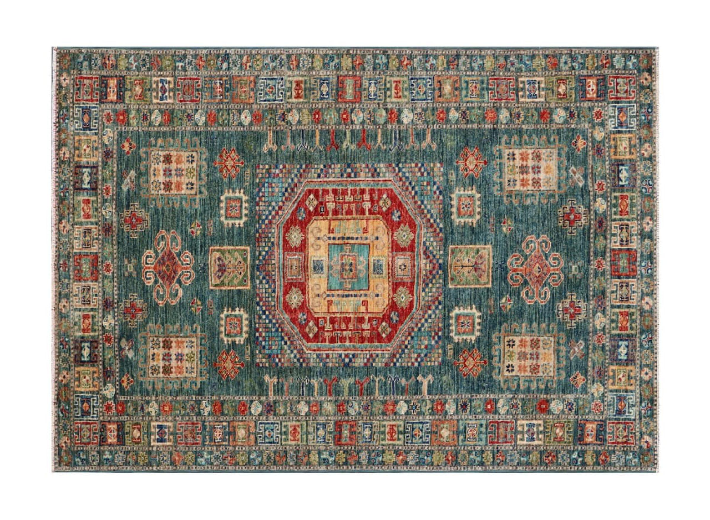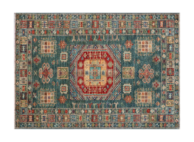 Esta alfombra Kazaka anudada a mano al estilo de las alfombras caucásicas convence por su gran robustez y sus vivos tonos. Así, refleja la cultura del Cáucaso en una bella composición. Una cultura que domina el arte de anudar alfombras desde hace siglos y que lo transmite al mundo exterior con formas encantadoramente sencillas en colores impresionantemente vivos.