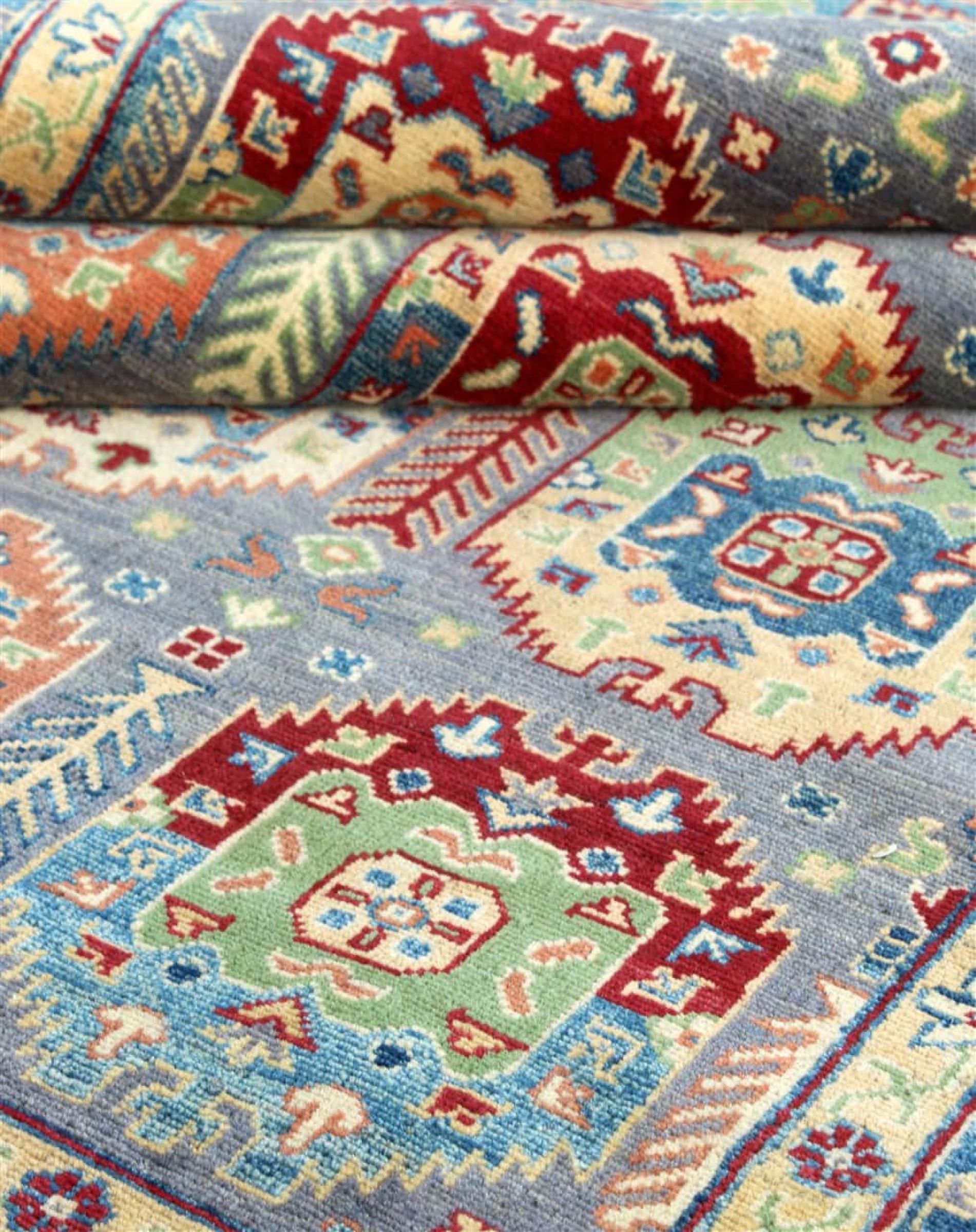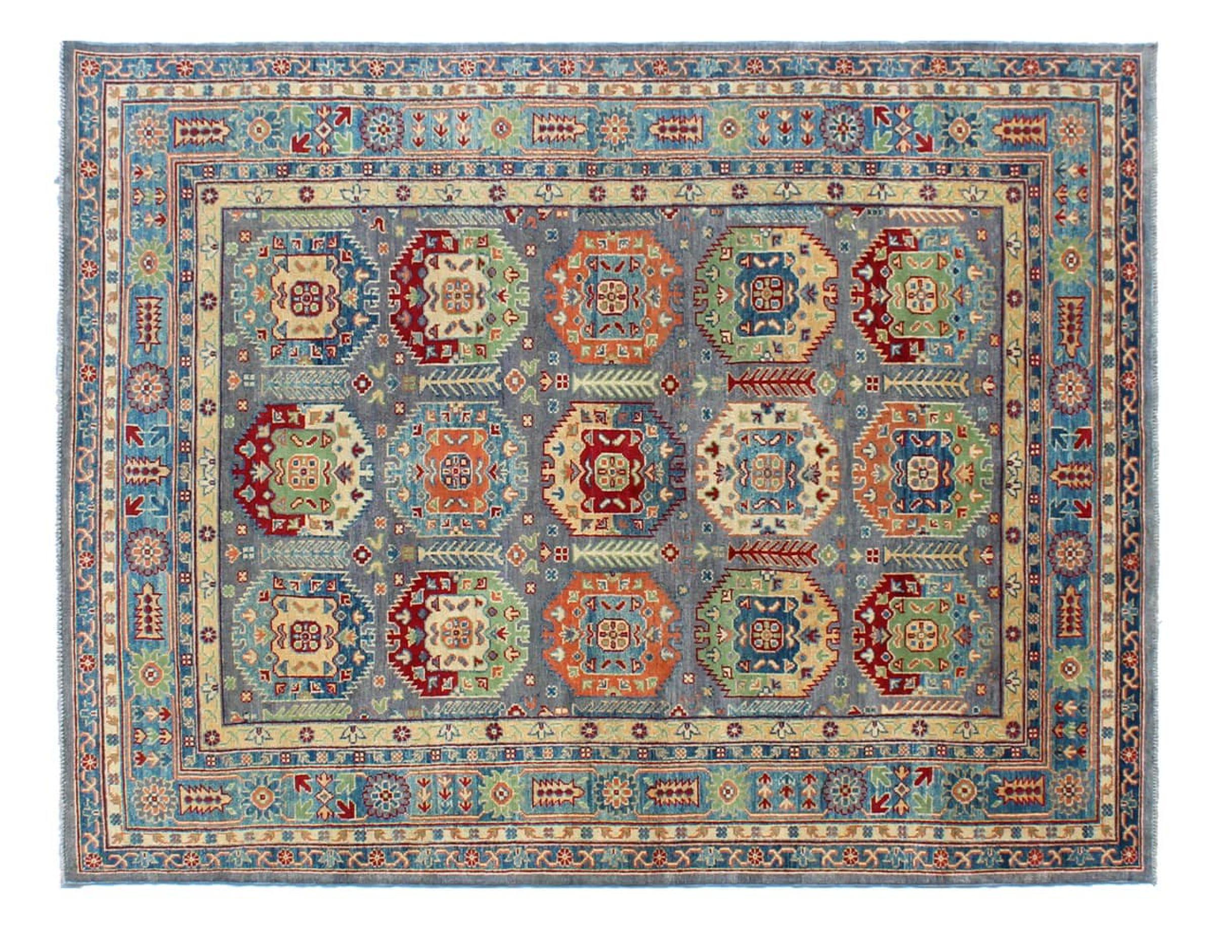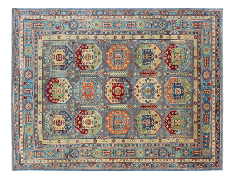 Esta alfombra Kazaka anudada a mano al estilo de las alfombras caucásicas convence por su gran robustez y sus vivos tonos. Así, refleja la cultura del Cáucaso en una bella composición. Una cultura que domina el arte de anudar alfombras desde hace siglos y que lo transmite al mundo exterior con formas encantadoramente sencillas en colores impresionantemente vivos.