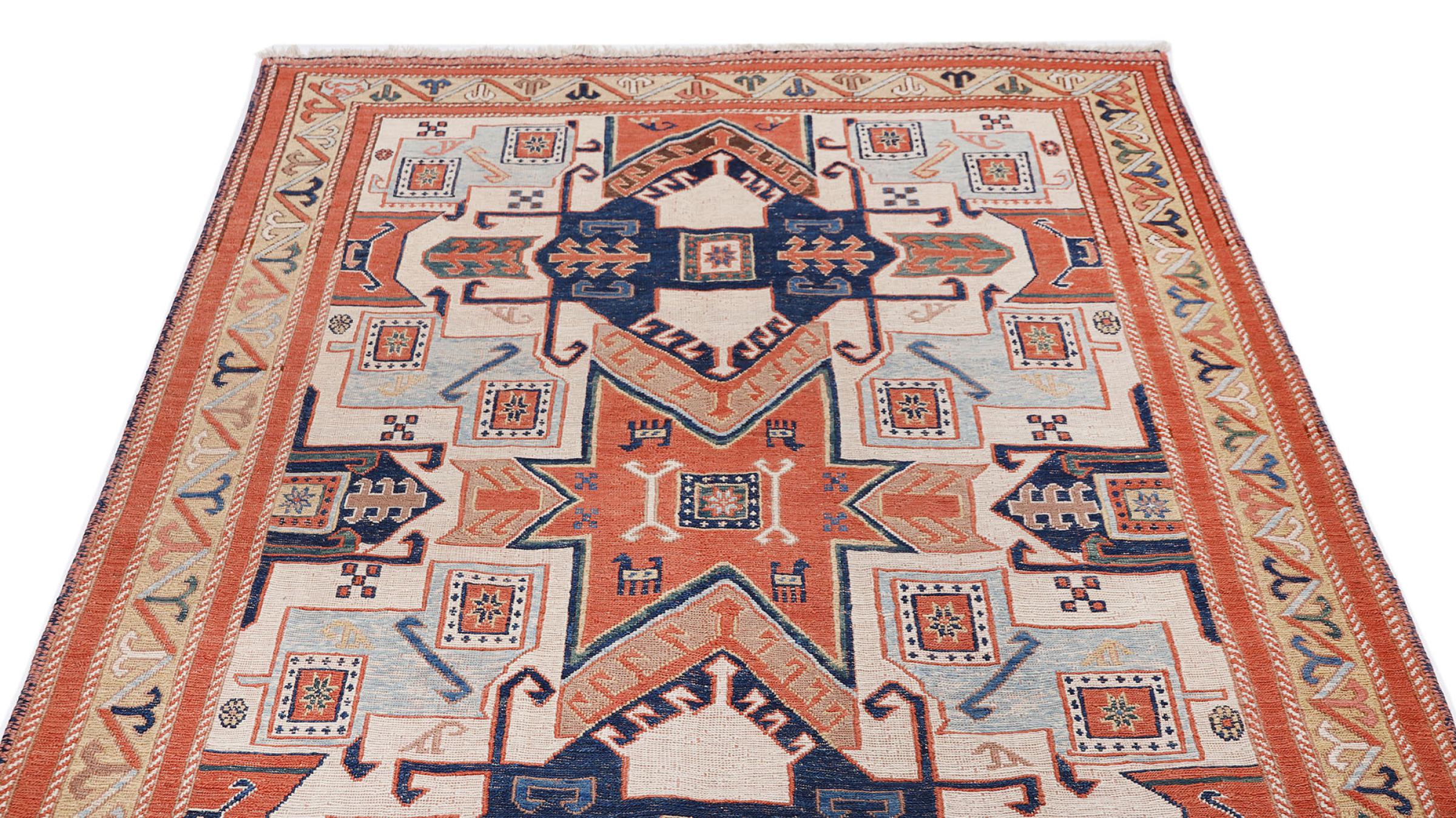 Esta alfombra Kazaka anudada a mano al estilo de las alfombras caucásicas convence por su gran robustez y sus vivos tonos. Así, refleja la cultura del Cáucaso en una bella composición. Una cultura que domina el arte de anudar alfombras desde hace siglos y que lo transmite al mundo exterior con formas encantadoramente sencillas en colores impresionantemente vivos.