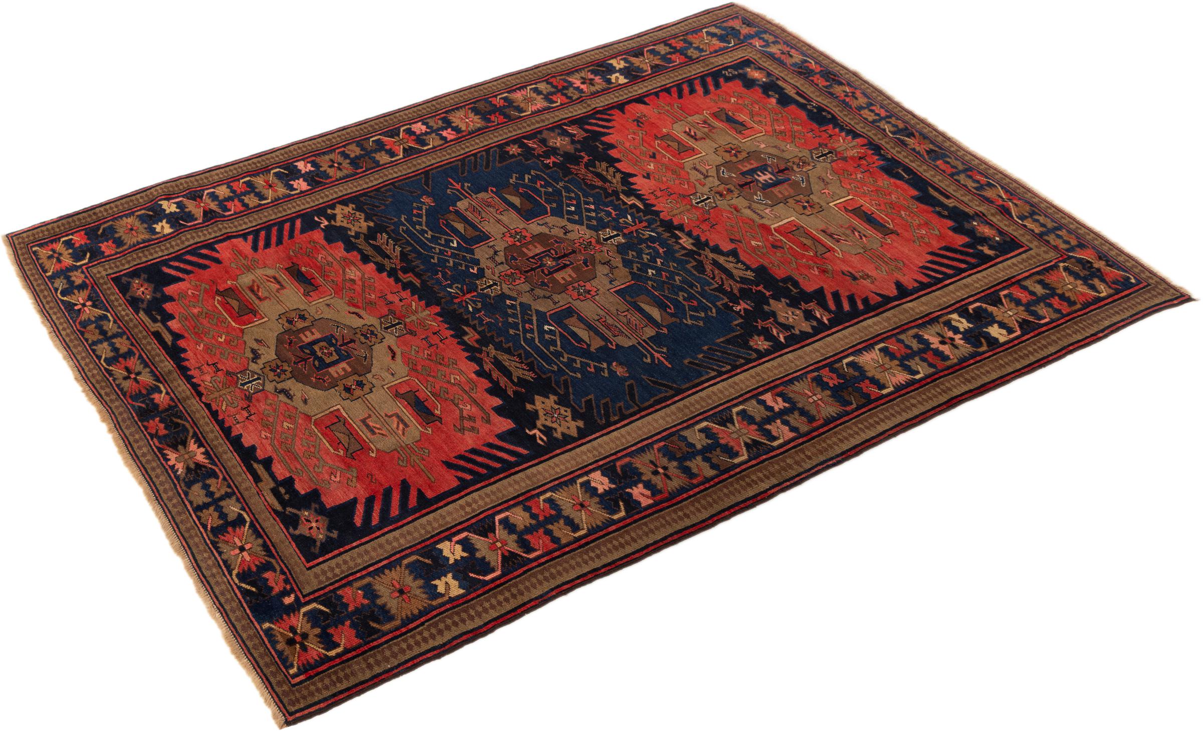 Esta alfombra Kazaka anudada a mano al estilo de las alfombras caucásicas convence por su gran robustez y sus vivos tonos. Así, refleja la cultura del Cáucaso en una bella composición. Una cultura que domina el arte de anudar alfombras desde hace siglos y que lo transmite al mundo exterior con formas encantadoramente sencillas en colores impresionantemente vivos.