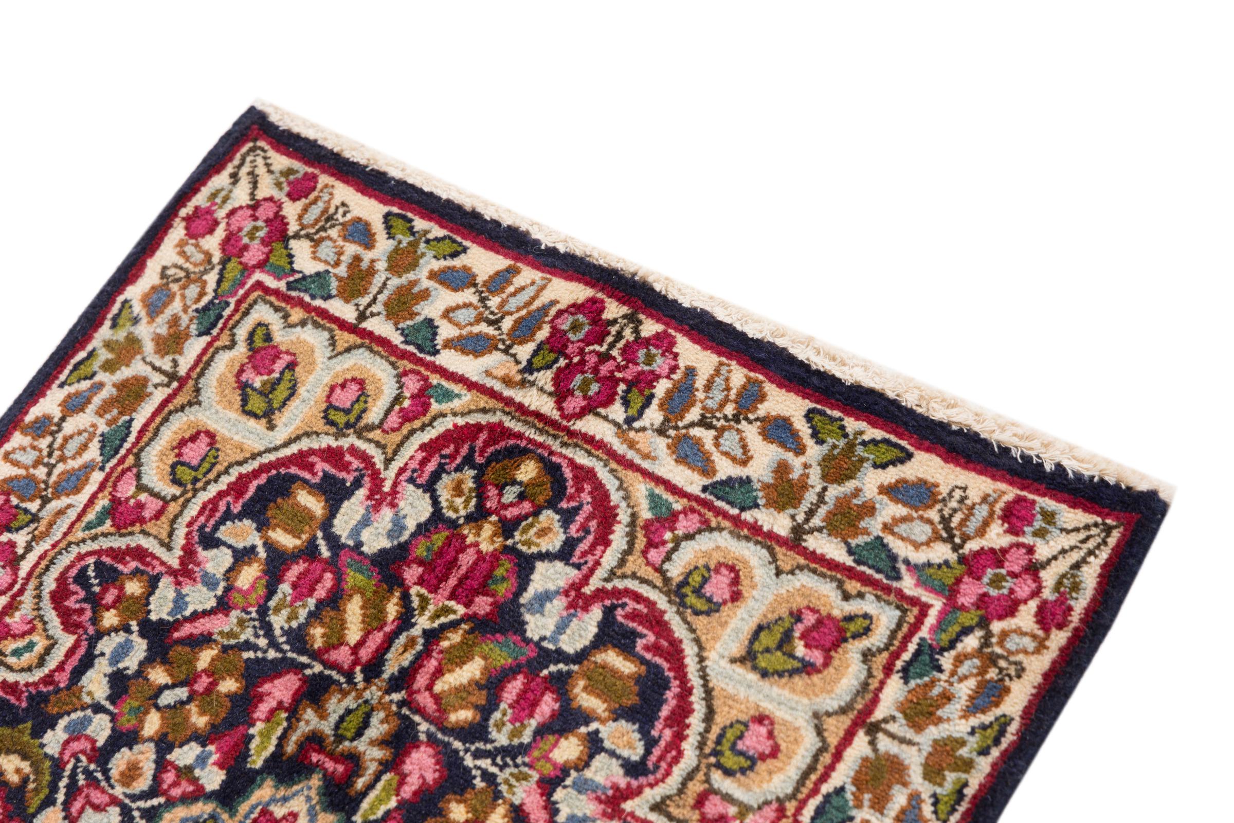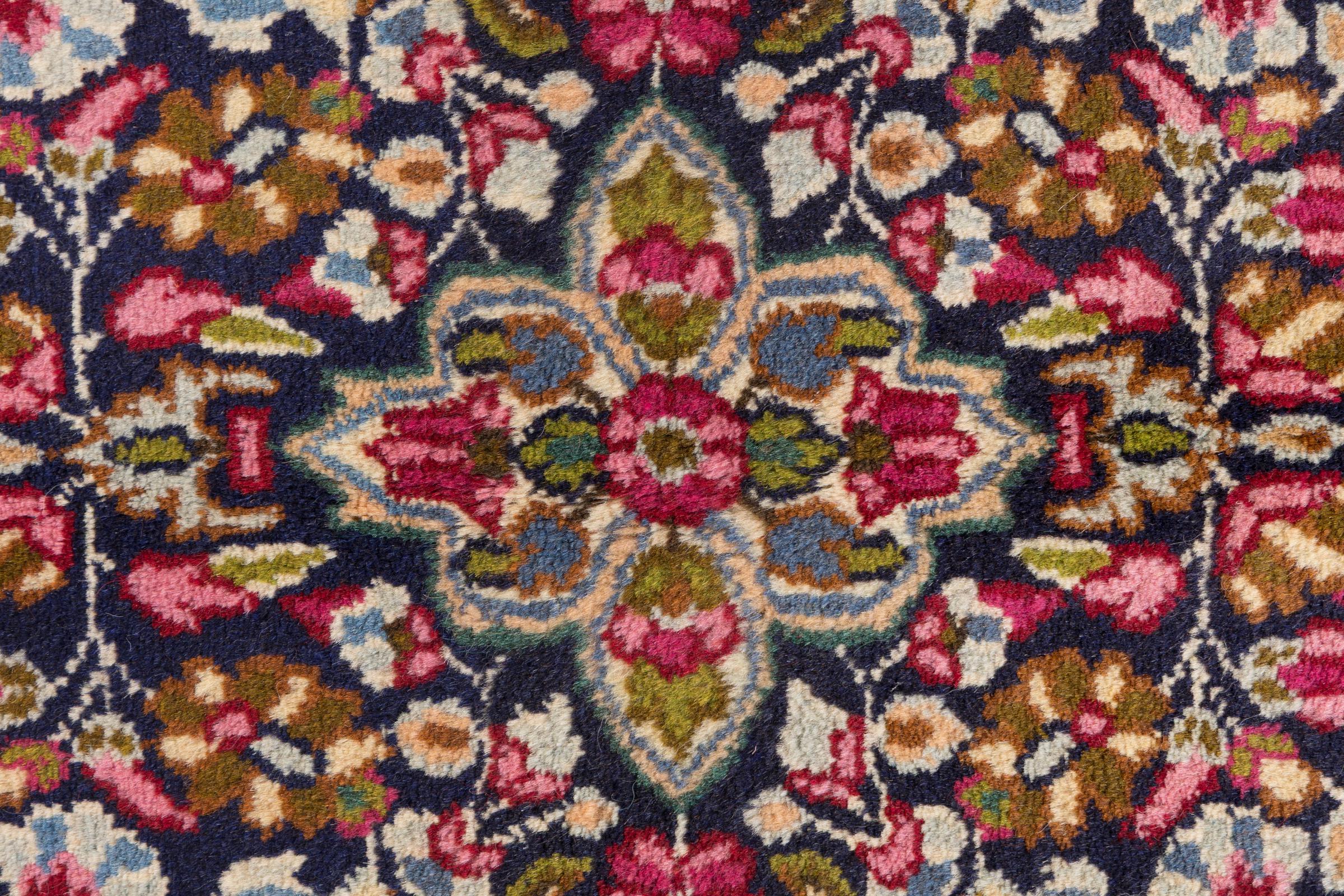 Esta alfombra Kerman convence por su calidad y diseño. Se anudó a mano en la ciudad de Kerman, un oasis en un desierto lejos de Teherán, con hilo de alta calidad durante meses. Contemple usted mismo esta obra de arte. Le dará a su habitación un hermoso toque oriental con adornos florales.