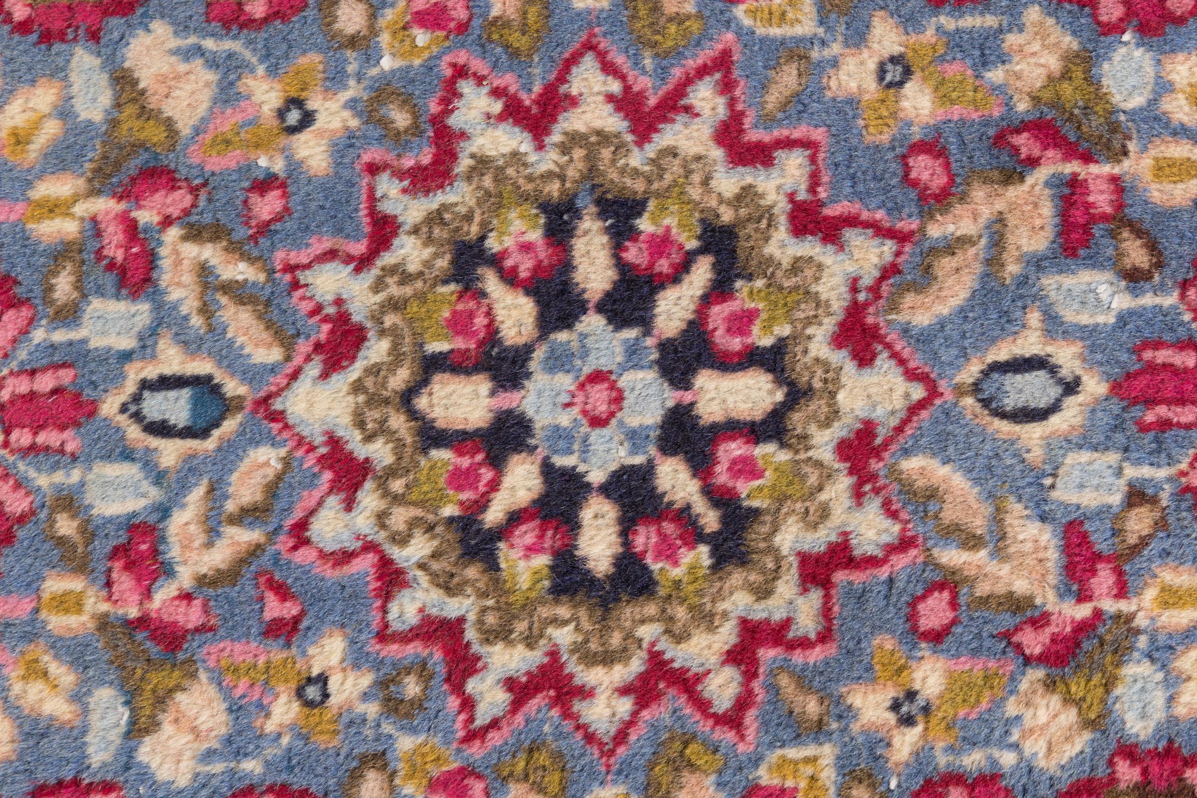 Esta alfombra Kerman convence por su calidad y diseño. Se anudó a mano en la ciudad de Kerman, un oasis en un desierto lejos de Teherán, con hilo de alta calidad durante meses. Contemple usted mismo esta obra de arte. Le dará a su habitación un hermoso toque oriental con adornos florales.