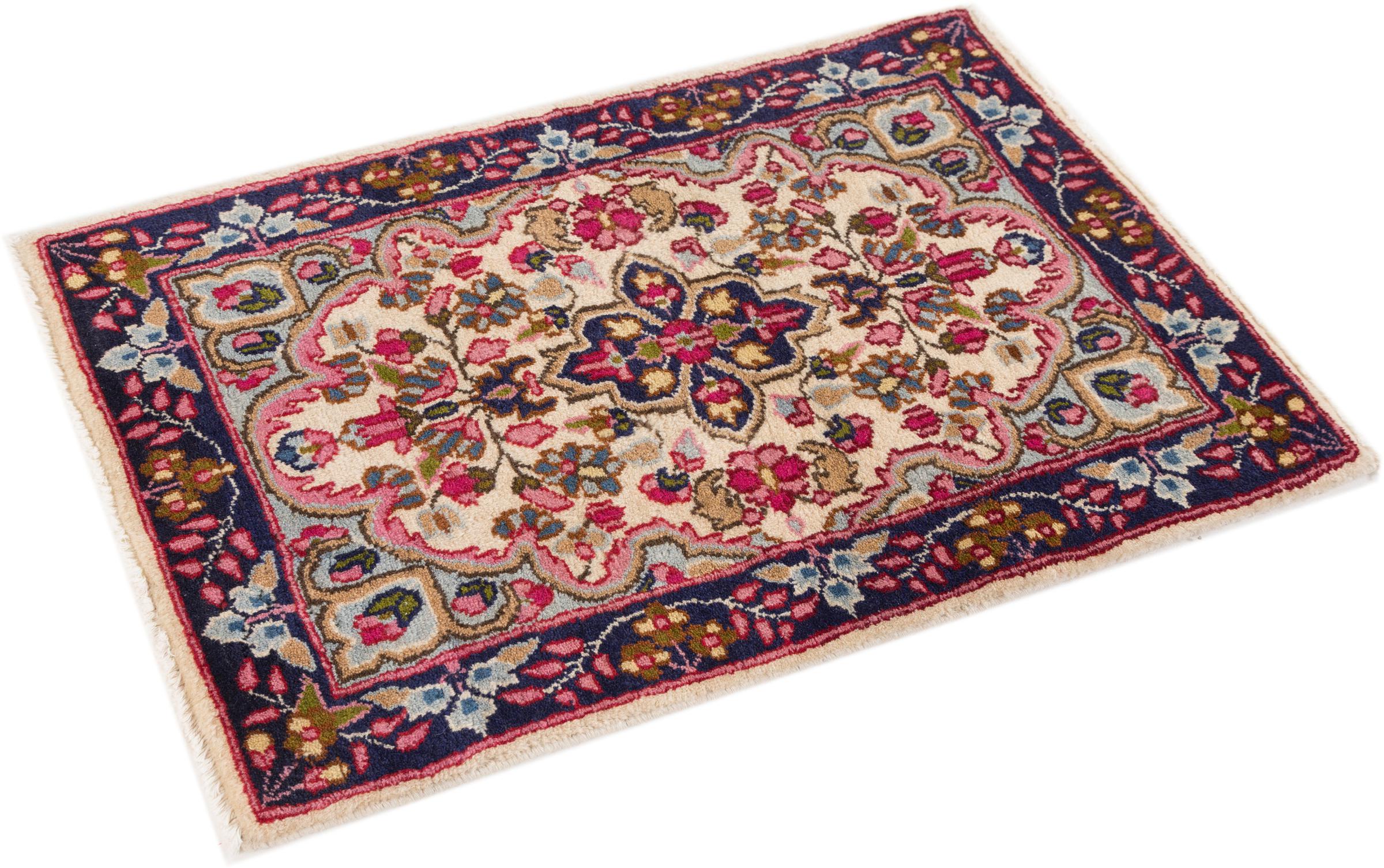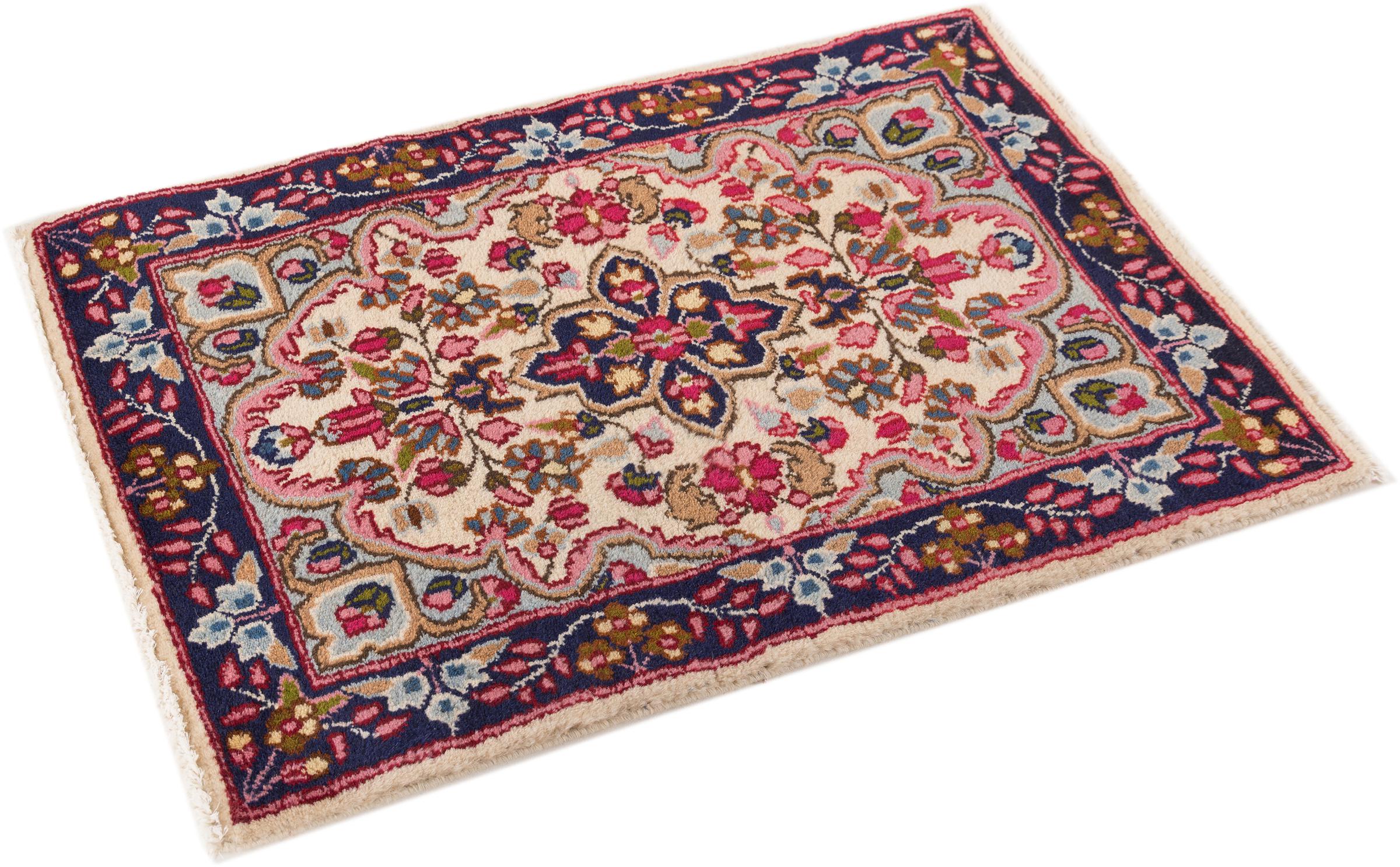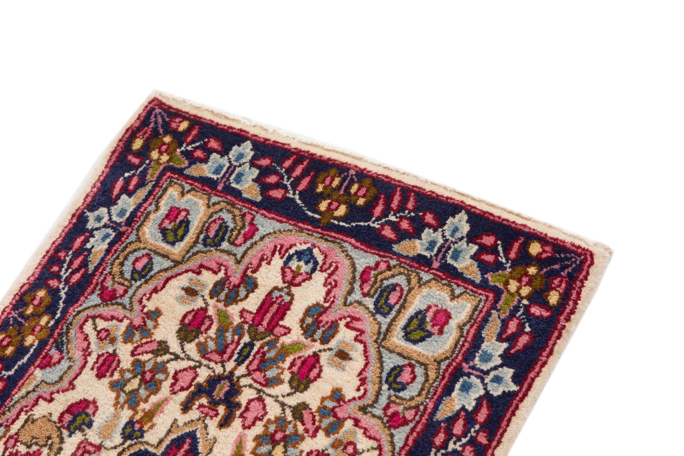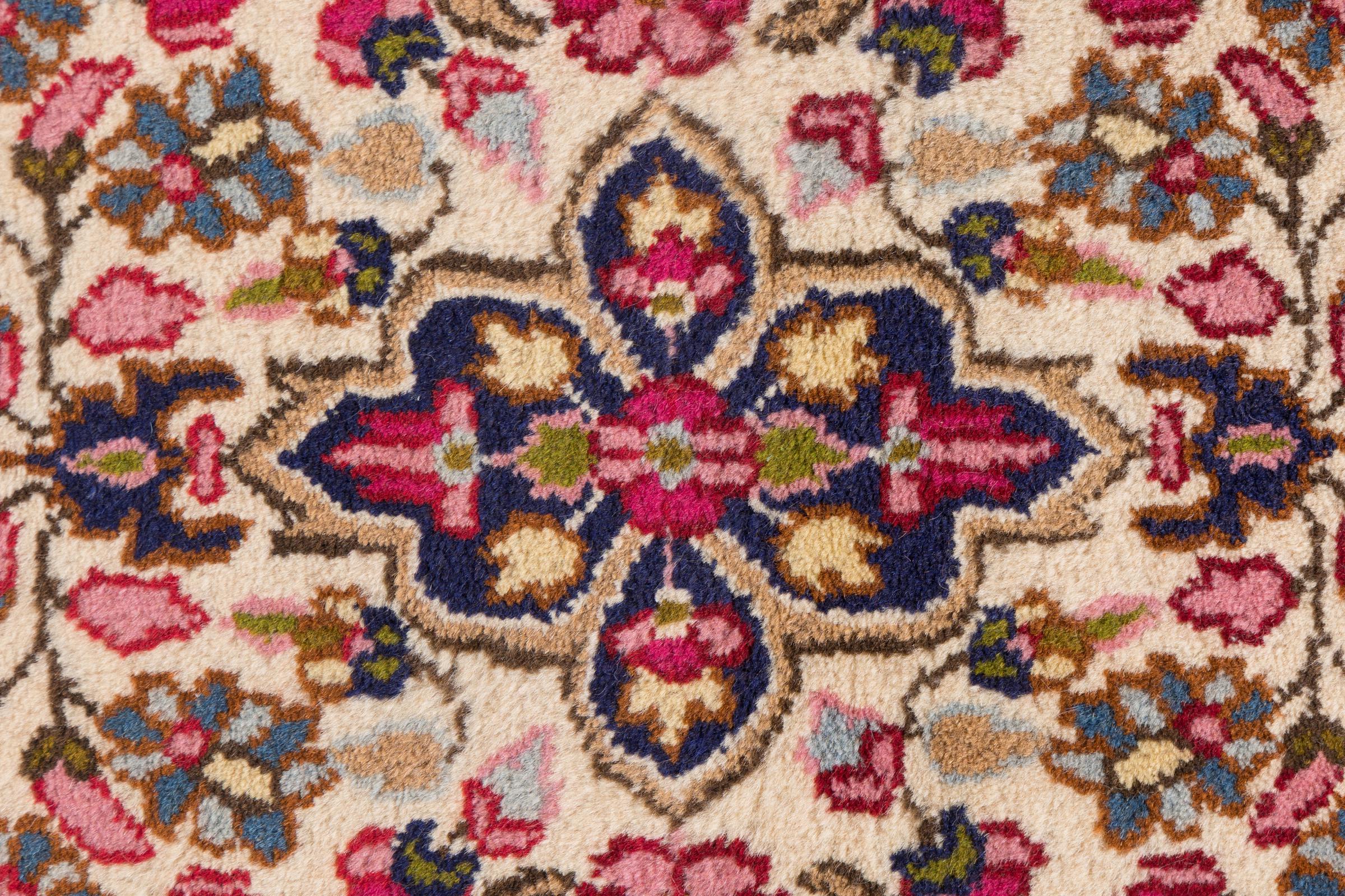 Esta alfombra Kerman convence por su calidad y diseño. Se anudó a mano en la ciudad de Kerman, un oasis en un desierto lejos de Teherán, con hilo de alta calidad durante meses. Contemple usted mismo esta obra de arte. Le dará a su habitación un hermoso toque oriental con adornos florales.