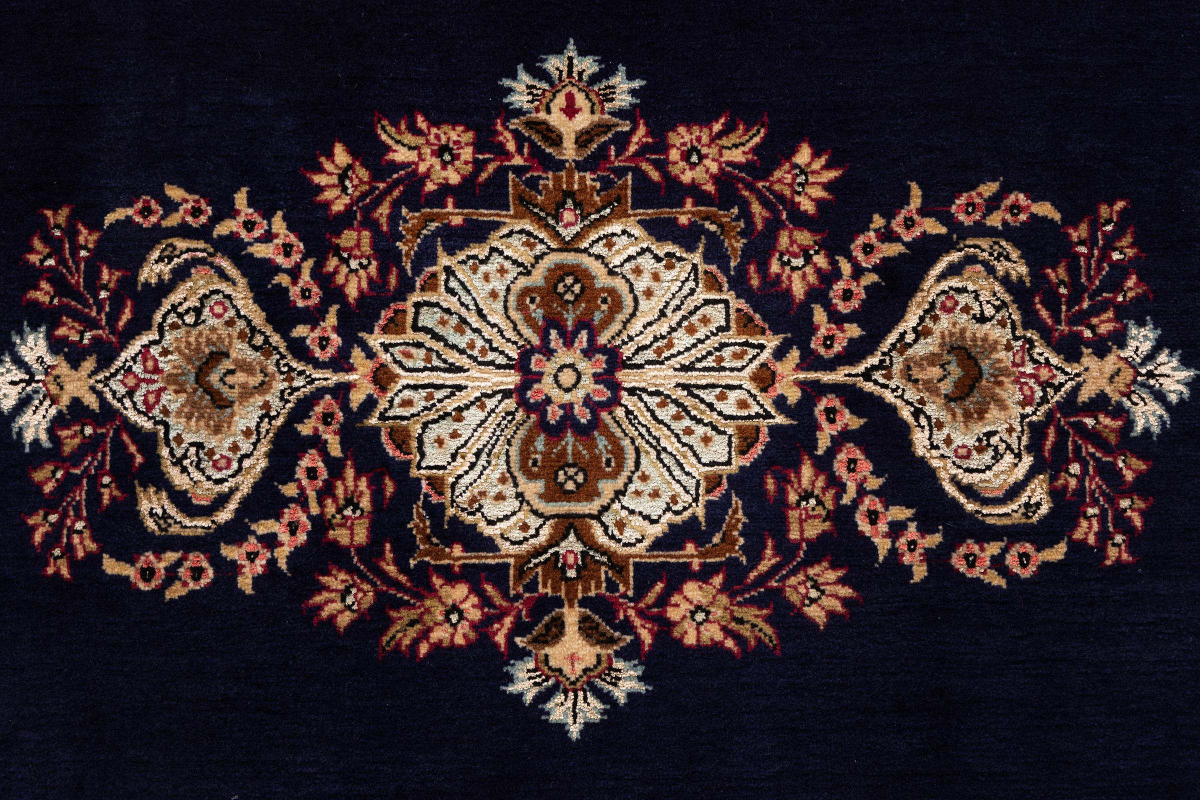Esta alfombra Kerman convence por su calidad y diseño. Se anudó a mano en la ciudad de Kerman, un oasis en un desierto lejos de Teherán, con hilo de alta calidad durante meses. Contemple usted mismo esta obra de arte. Le dará a su habitación un hermoso toque oriental con adornos florales.