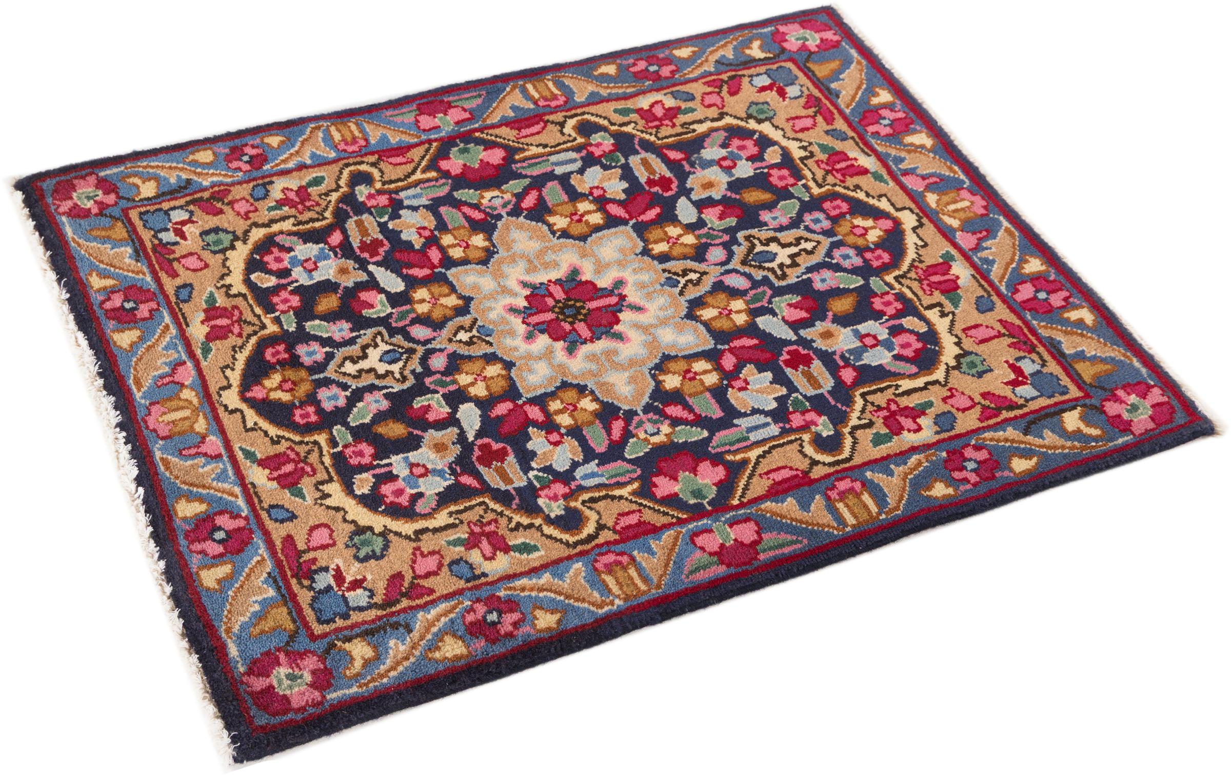 Alfombra número: 296547004301 Tamaño: 98x65 cm Espesor: alrededor de 12 mm Nudos: 128 000 - 160 000 / m² Elaboración: Anudado a mano Crespón: Lana hilada a mano Urdimbre: Algodón Origen: Persia / Iran Edad: Nuevo Peso: alrededor de 2 kg Cantidad en stock: Única - Solo 1 en stock