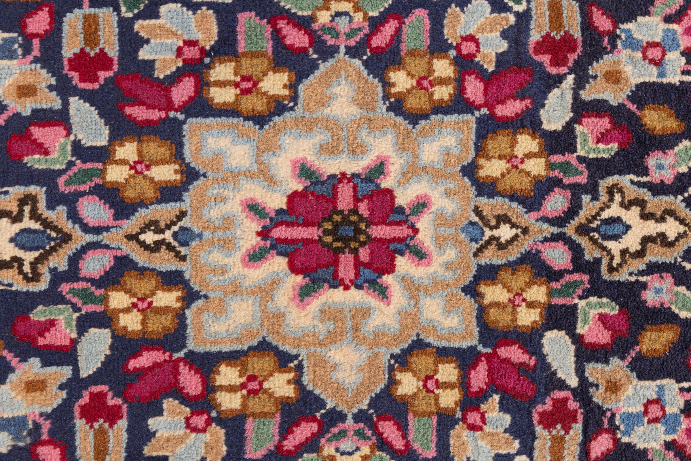 Esta alfombra Kerman convence por su calidad y diseño. Se anudó a mano en la ciudad de Kerman, un oasis en un desierto lejos de Teherán, con hilo de alta calidad durante meses. Contemple usted mismo esta obra de arte. Le dará a su habitación un hermoso toque oriental con adornos florales.
