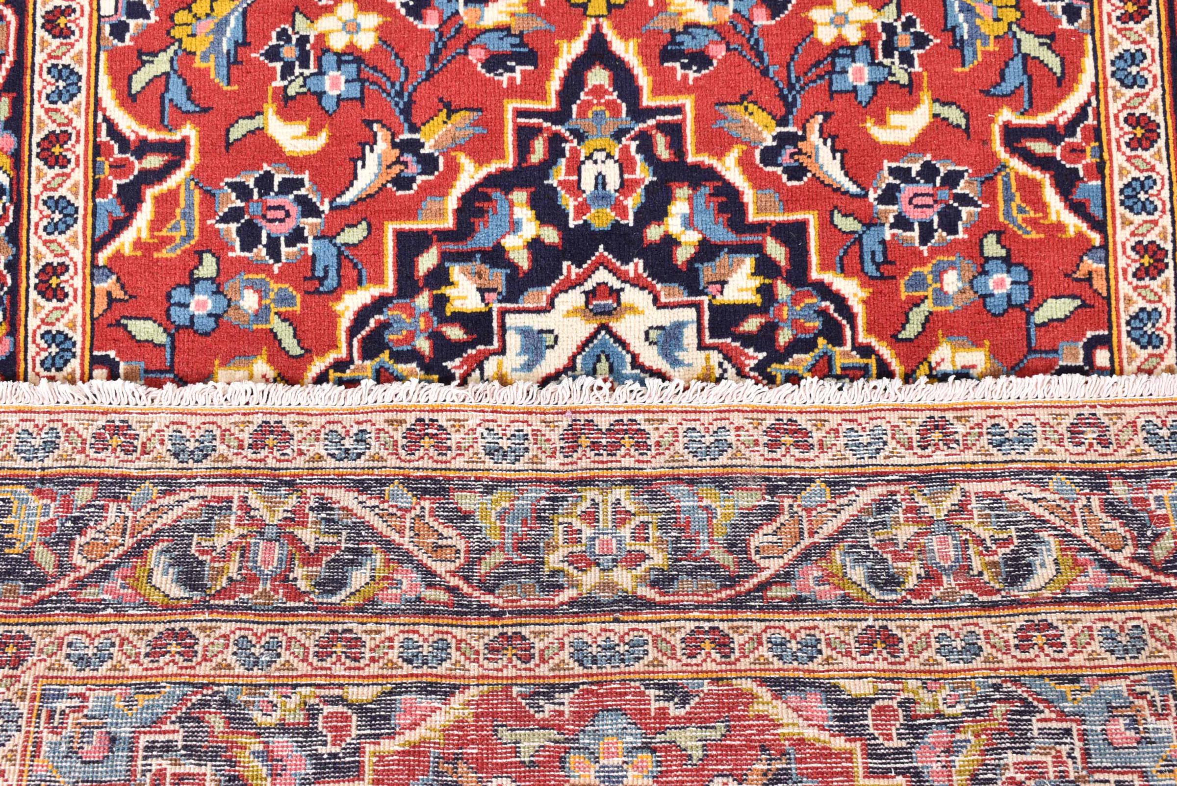 Esta alfombra de Kashan (Keshan) se lleva a cabo en su diseño persa muy tradicional y típico con hermosos adornos. Las alfombras Kashan son muy populares debido a su diseño excepcionalmente elegante. Estas alfombras son originarias de Kashan, una ciudad en la antigua Ruta de la Seda. Esta alfombra ha sido anudada a mano con lana de oveja de alta calidad y será un elemento destacado único en su hogar.