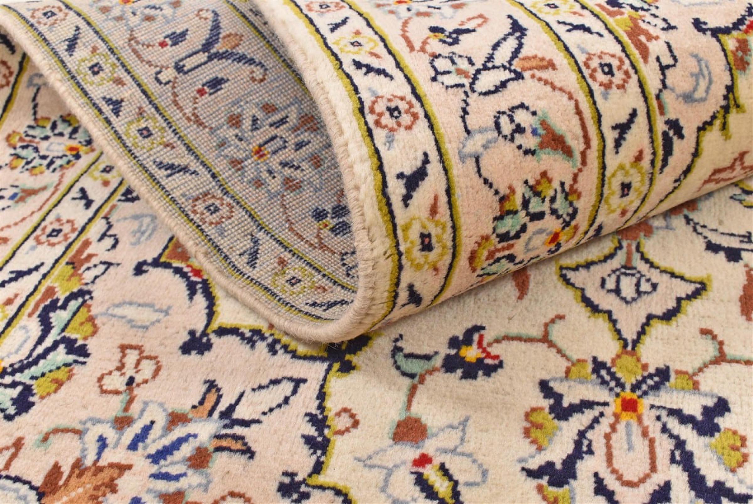 Esta alfombra de Kashan (Keshan) se lleva a cabo en su diseño persa muy tradicional y típico con hermosos adornos. Las alfombras Kashan son muy populares debido a su diseño excepcionalmente elegante. Estas alfombras son originarias de Kashan, una ciudad en la antigua Ruta de la Seda. Esta alfombra ha sido anudada a mano con lana de oveja de alta calidad y será un elemento destacado único en su hogar.