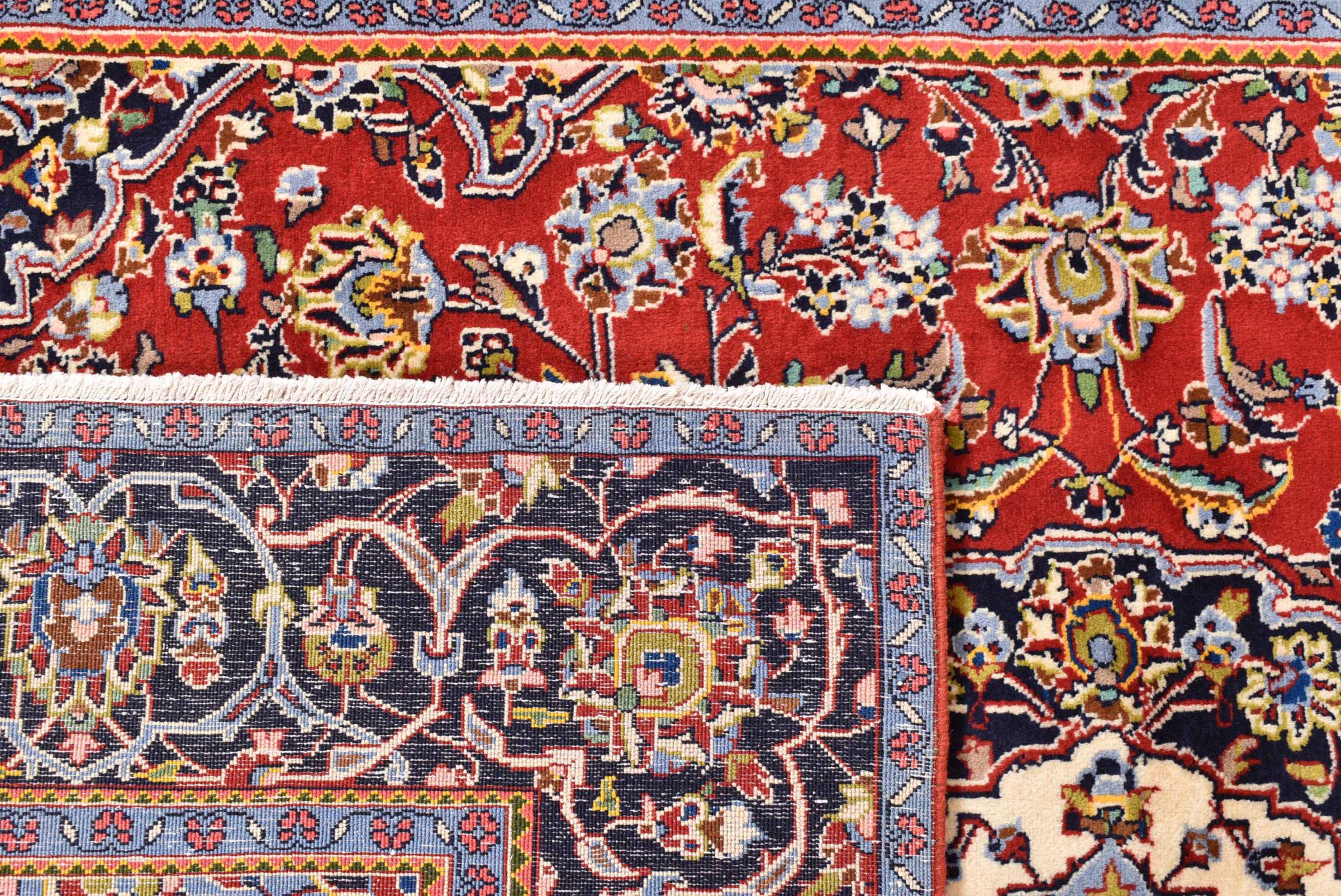 Esta alfombra de Kashan (Keshan) se lleva a cabo en su diseño persa muy tradicional y típico con hermosos adornos. Las alfombras Kashan son muy populares debido a su diseño excepcionalmente elegante. Estas alfombras son originarias de Kashan, una ciudad en la antigua Ruta de la Seda. Esta alfombra ha sido anudada a mano con lana de oveja de alta calidad y será un elemento destacado único en su hogar.