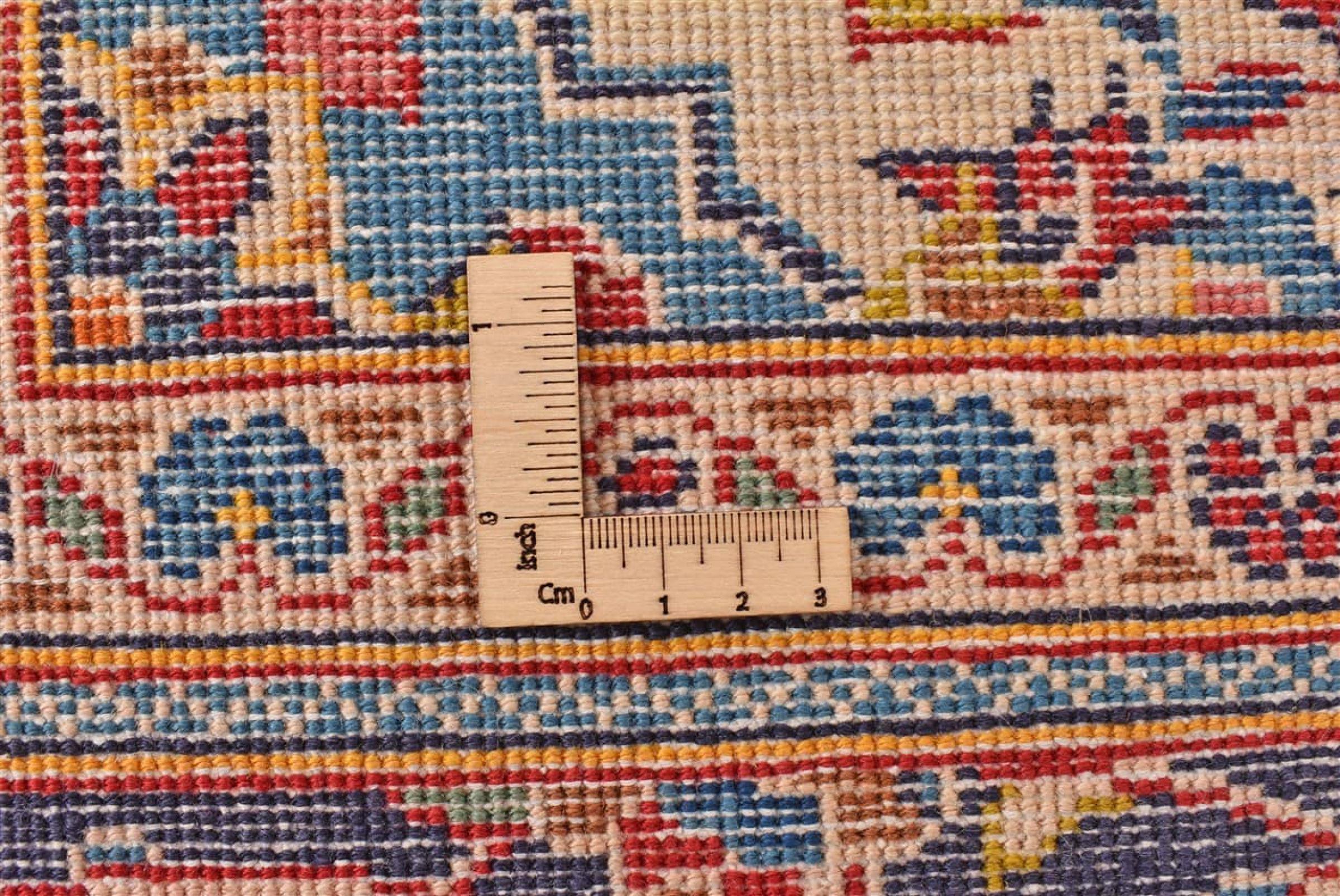 Esta alfombra está hecha de lana de oveja hilada a mano de la más alta calidad. Especialmente en Irán (antigua Persia), la lana de Afganistán y Pakistán sigue siendo hilada a mano antes de que comience el anudado de la alfombra. La lana ha demostrado ser un material natural y extremadamente resistente a lo largo de los siglos. Entre otras cosas, tiene propiedades repelentes de la suciedad y aislantes del calor. Al mismo tiempo, la lana es incomparablemente suave y tiene un brillo natural.