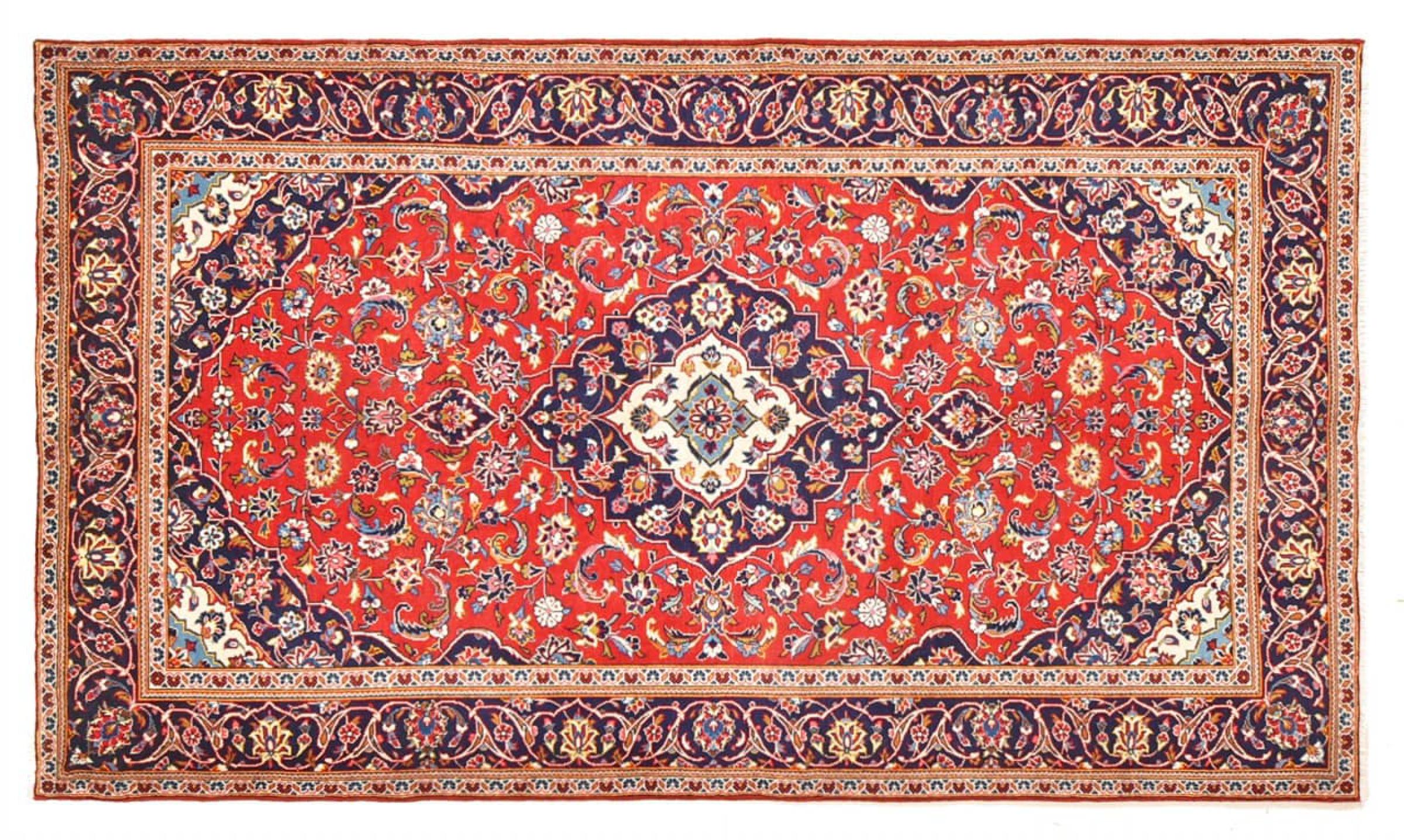 Las alfombras anudadas a mano de la ciudad de Keshan (Kashan) son conocidas en todo el mundo. Estas alfombras persas no sólo tienen un diseño muy popular, sino que su calidad es indiscutiblemente una de las mejores. En el Imperio Persa la ciudad era considerada uno de los lugares de comercio más importantes a lo largo de la famosa Ruta de la Seda. Las alfombras de Keshan suelen tener un medallón central, adornos florales y un fondo rojo. Están hechos de lana de oveja de alta calidad y tintes vegetales.