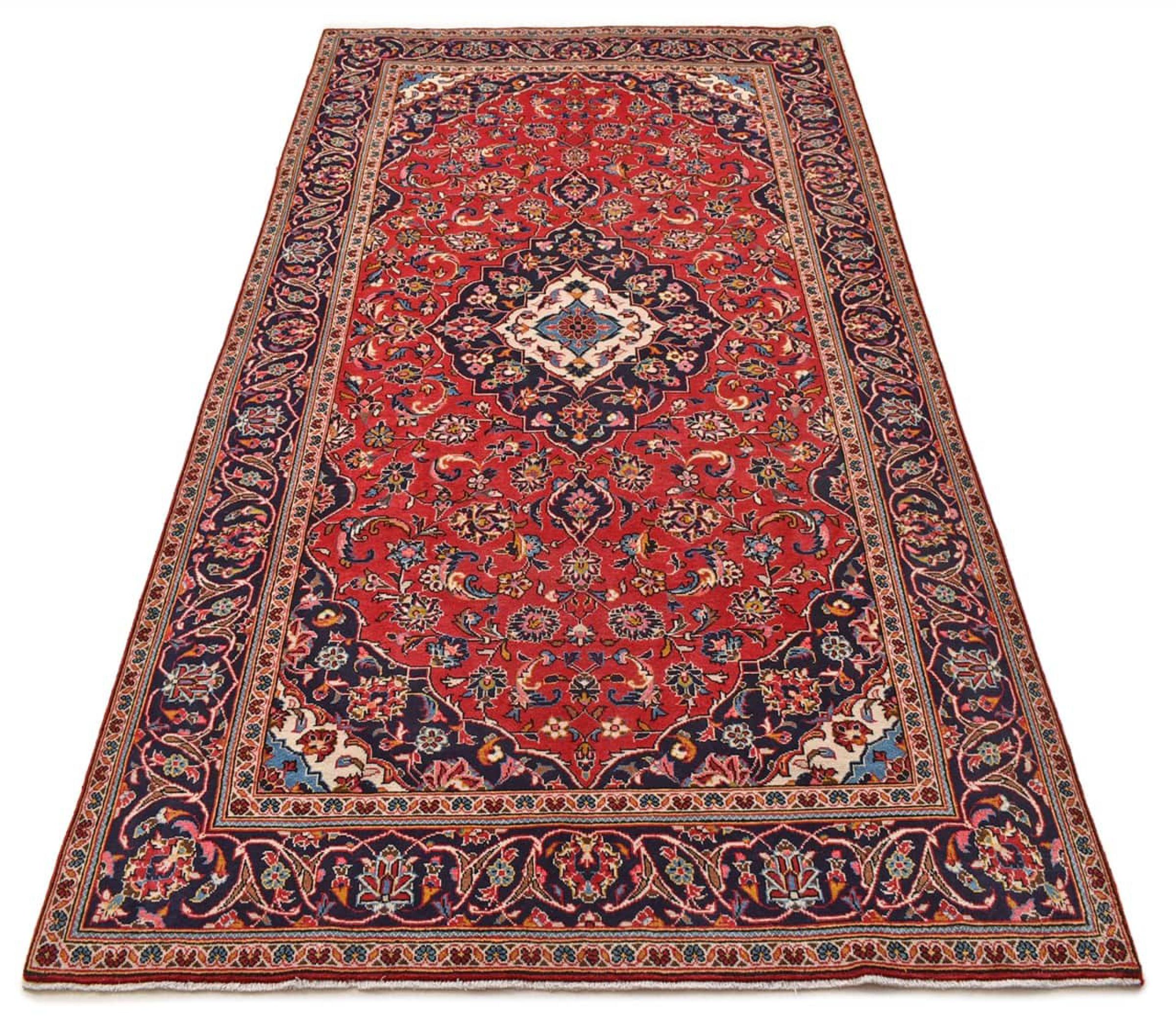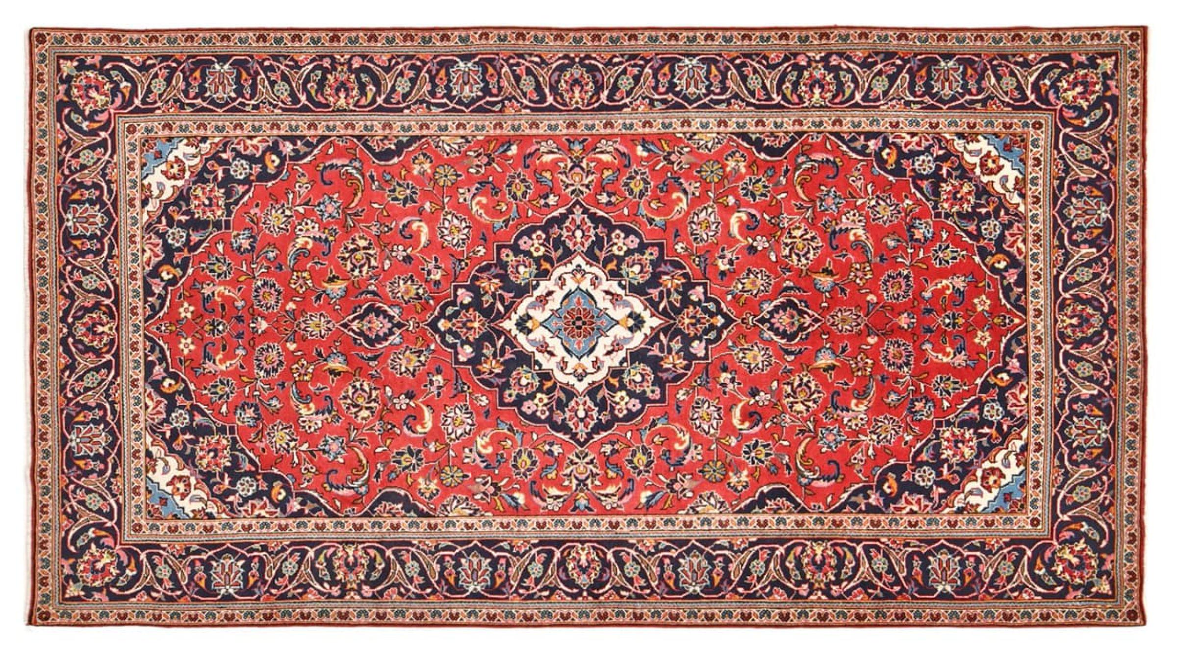 Las alfombras anudadas a mano de la ciudad de Keshan (Kashan) son conocidas en todo el mundo. Estas alfombras persas no sólo tienen un diseño muy popular, sino que su calidad es indiscutiblemente una de las mejores. En el Imperio Persa la ciudad era considerada uno de los lugares de comercio más importantes a lo largo de la famosa Ruta de la Seda. Las alfombras de Keshan suelen tener un medallón central, adornos florales y un fondo rojo. Están hechos de lana de oveja de alta calidad y tintes vegetales.