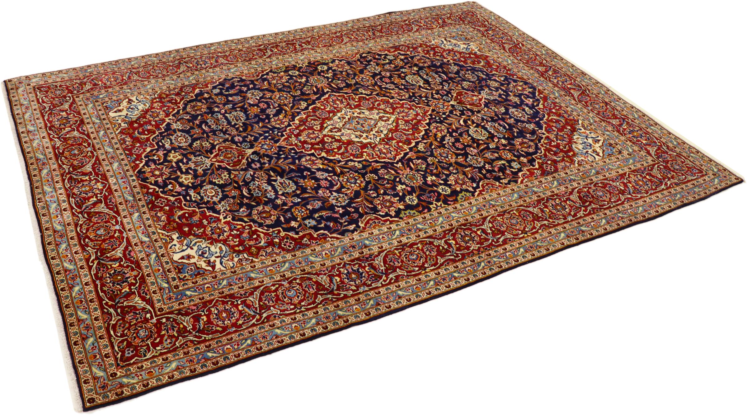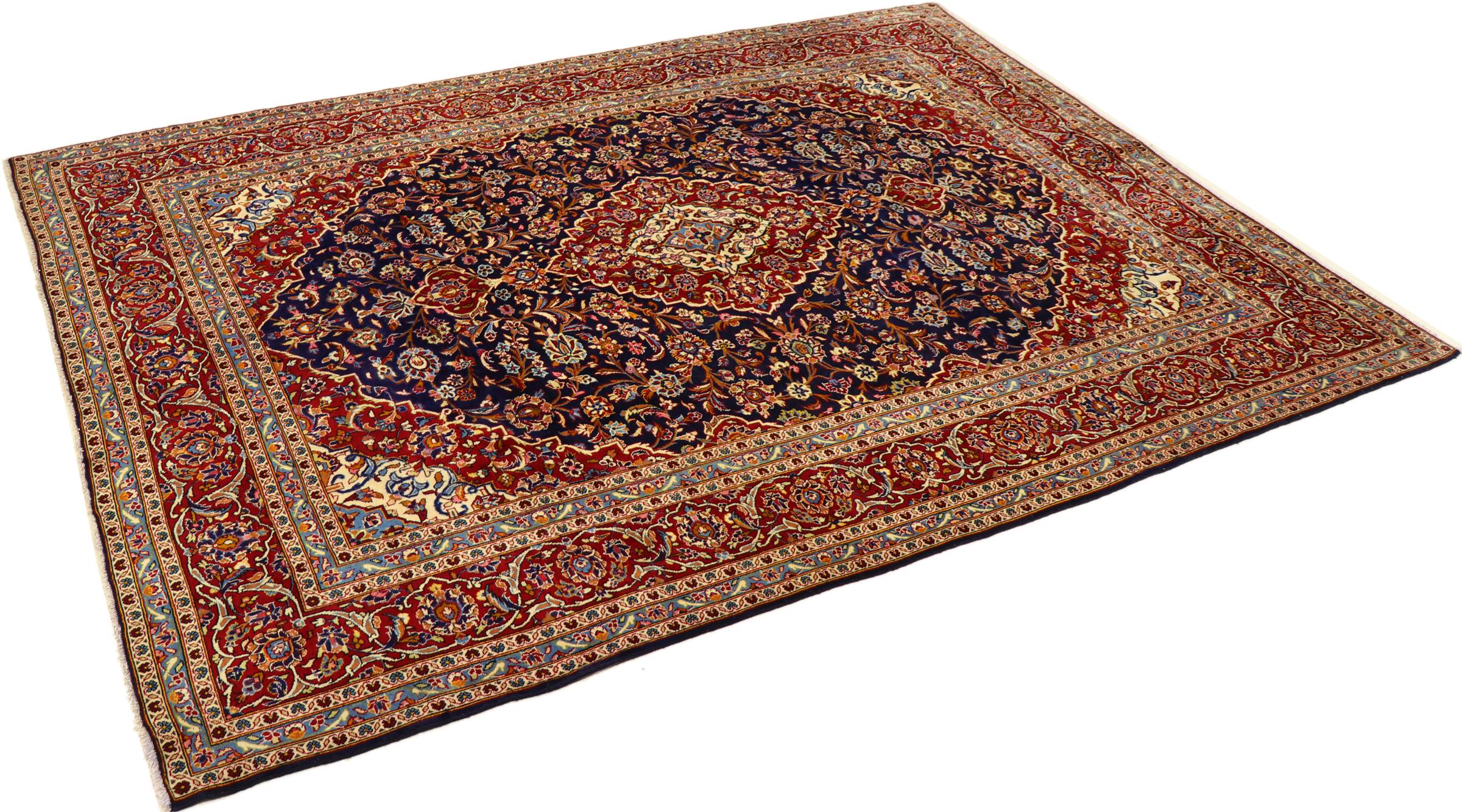 Esta alfombra de Kashan (Keshan) se lleva a cabo en su diseño persa muy tradicional y típico con hermosos adornos. Las alfombras Kashan son muy populares debido a su diseño excepcionalmente elegante. Estas alfombras son originarias de Kashan, una ciudad en la antigua Ruta de la Seda. Esta alfombra ha sido anudada a mano con lana de oveja de alta calidad y será un elemento destacado único en su hogar.