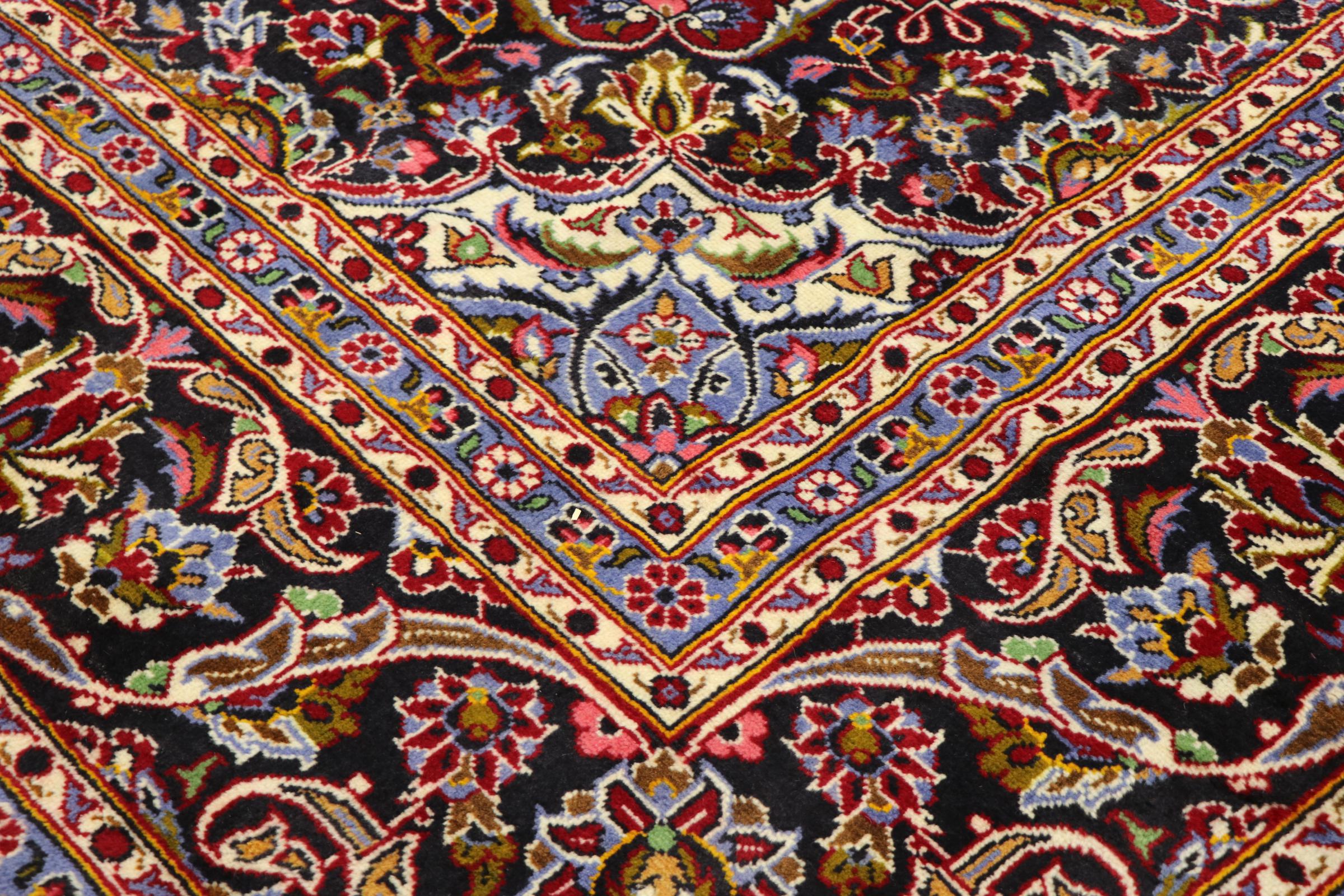 Esta alfombra de Kashan (Keshan) se lleva a cabo en su diseño persa muy tradicional y típico con hermosos adornos. Las alfombras Kashan son muy populares debido a su diseño excepcionalmente elegante. Estas alfombras son originarias de Kashan, una ciudad en la antigua Ruta de la Seda. Esta alfombra ha sido anudada a mano con lana de oveja de alta calidad y será un elemento destacado único en su hogar.