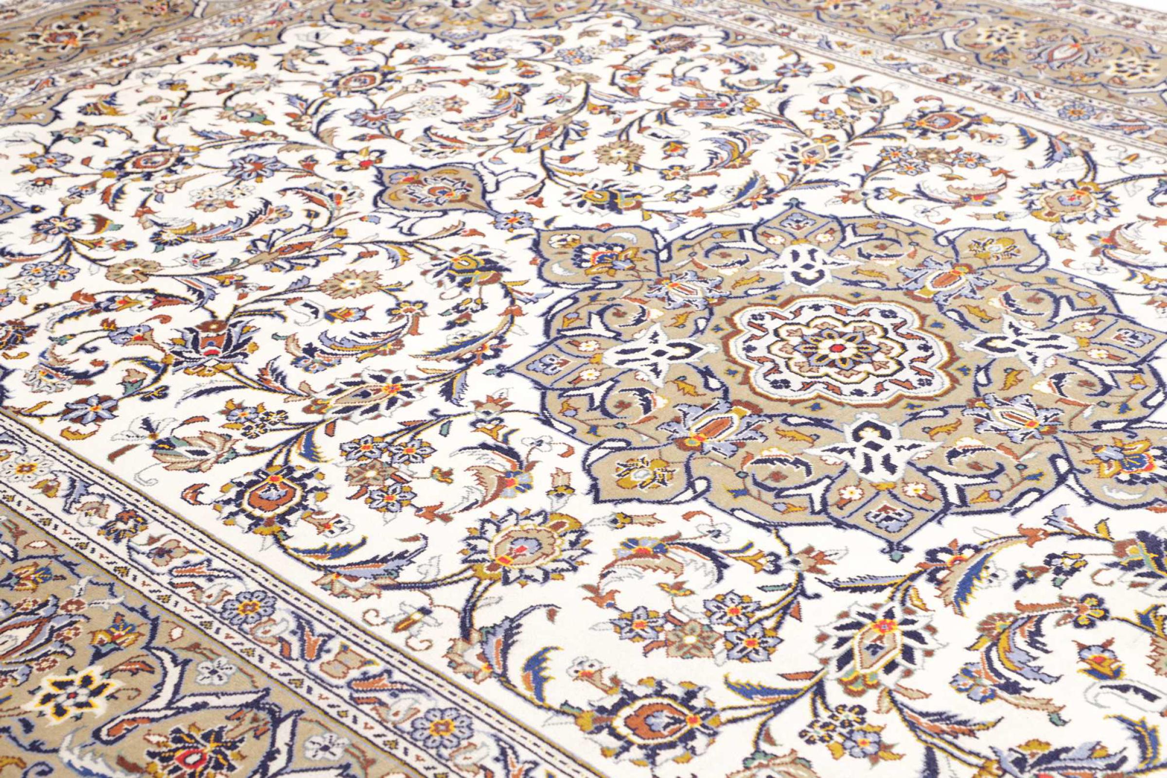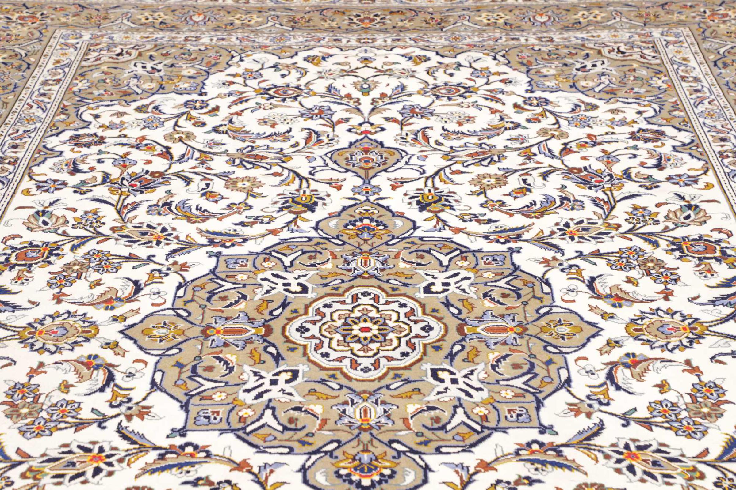 Las alfombras anudadas a mano de la ciudad de Keshan (Kashan) son conocidas en todo el mundo. Estas alfombras persas no sólo tienen un diseño muy popular, sino que su calidad es indiscutiblemente una de las mejores. En el Imperio Persa la ciudad era considerada uno de los lugares de comercio más importantes a lo largo de la famosa Ruta de la Seda. Las alfombras de Keshan suelen tener un medallón central, adornos florales y un fondo rojo. Están hechos de lana de oveja de alta calidad y tintes vegetales.