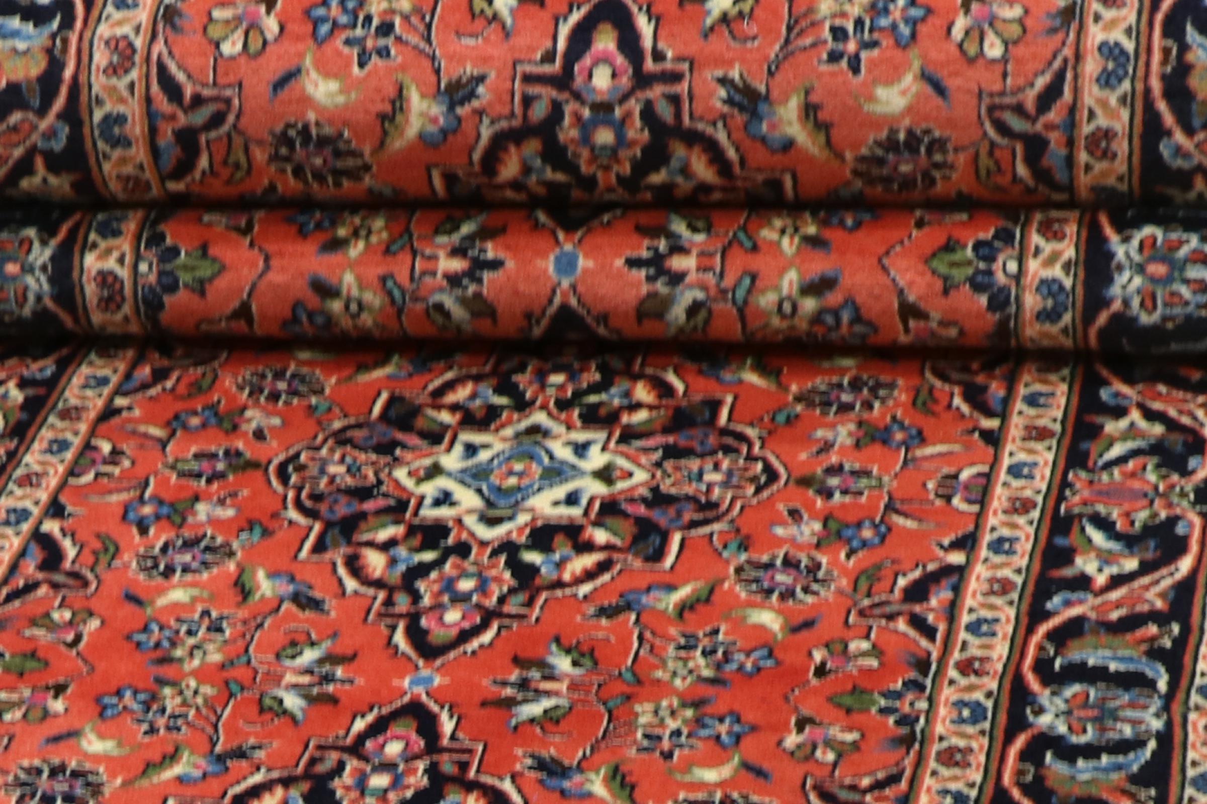 Esta alfombra de Kashan (Keshan) se lleva a cabo en su diseño persa muy tradicional y típico con hermosos adornos. Las alfombras Kashan son muy populares debido a su diseño excepcionalmente elegante. Estas alfombras son originarias de Kashan, una ciudad en la antigua Ruta de la Seda. Esta alfombra ha sido anudada a mano con lana de oveja de alta calidad y será un elemento destacado único en su hogar.