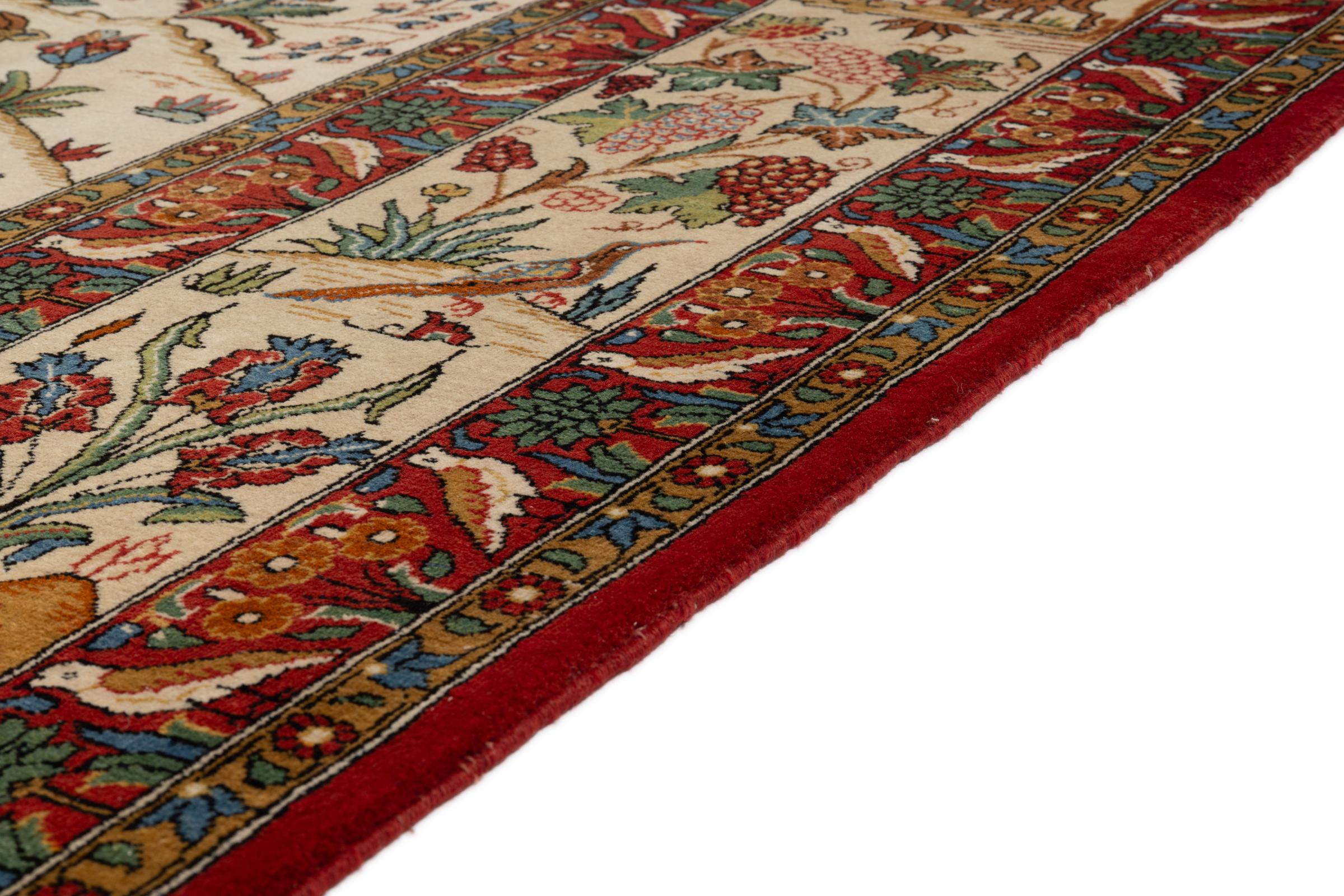 Esta alfombra proviene de Irán (antiguamente Persia) y como alfombra persa goza de la probablemente más alta reputación entre todos los tipos de alfombras anudadas a mano. Ninguna otra región tiene una tradición tan larga en el anudado de alfombras como Irán. Así que las probablemente más finas y elaboradas alfombras vienen aquí. La robustez, la durabilidad y la calidad del nudo persa siguen siendo insuperables hoy en día. Las alfombras persas suelen recibir el nombre de su región de origen. Así, un Nain, un Ghom, así como una alfombra de Isfahan, proviene de la ciudad del mismo nombre en Irán.