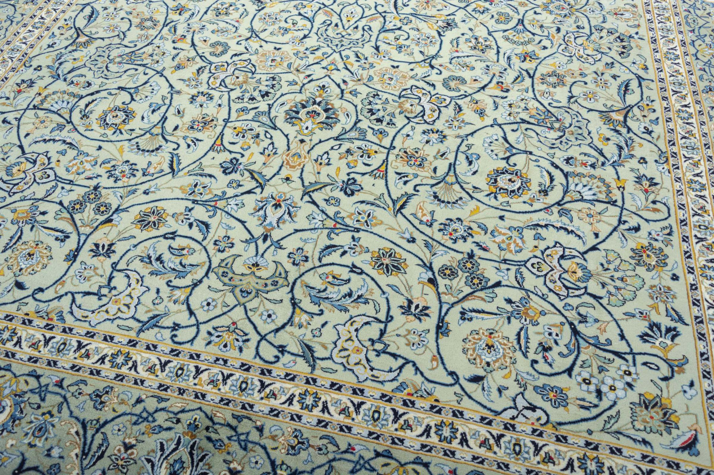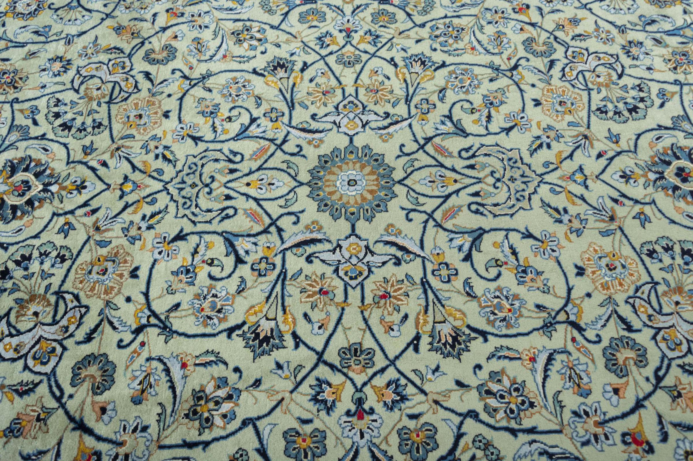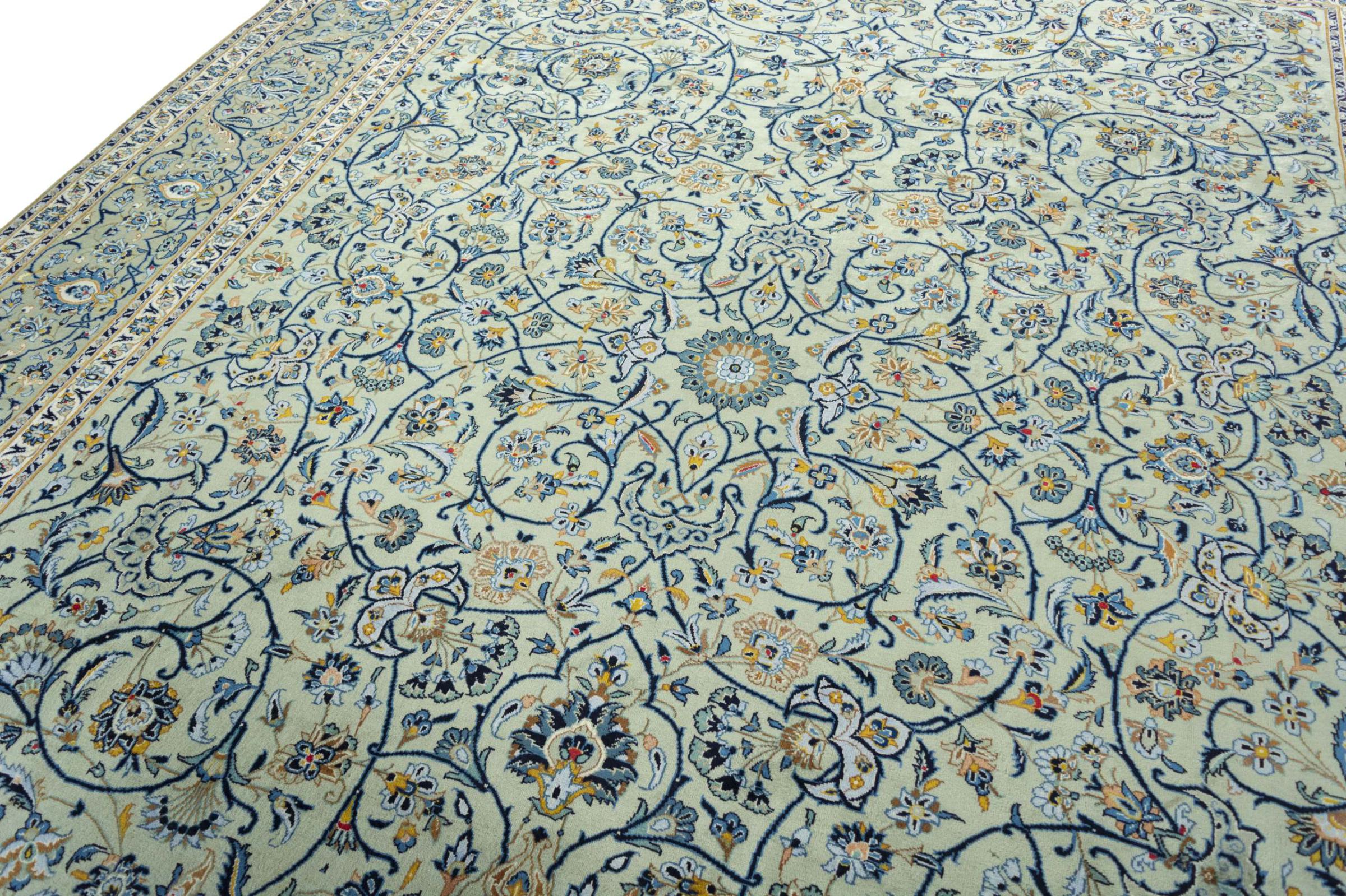 Alfombra número: 310568005236033 Tamaño: 421x322 cm Espesor: alrededor de 12 mm Nudos: 120 000 - 150 000 / m² Elaboración: Anudado a mano Crespón: Lana hilada a mano Urdimbre: Algodón Origen: Persia / Iran Edad: Nuevo Peso: alrededor de 47 kg Cantidad en stock: Única - Solo 1 en stock