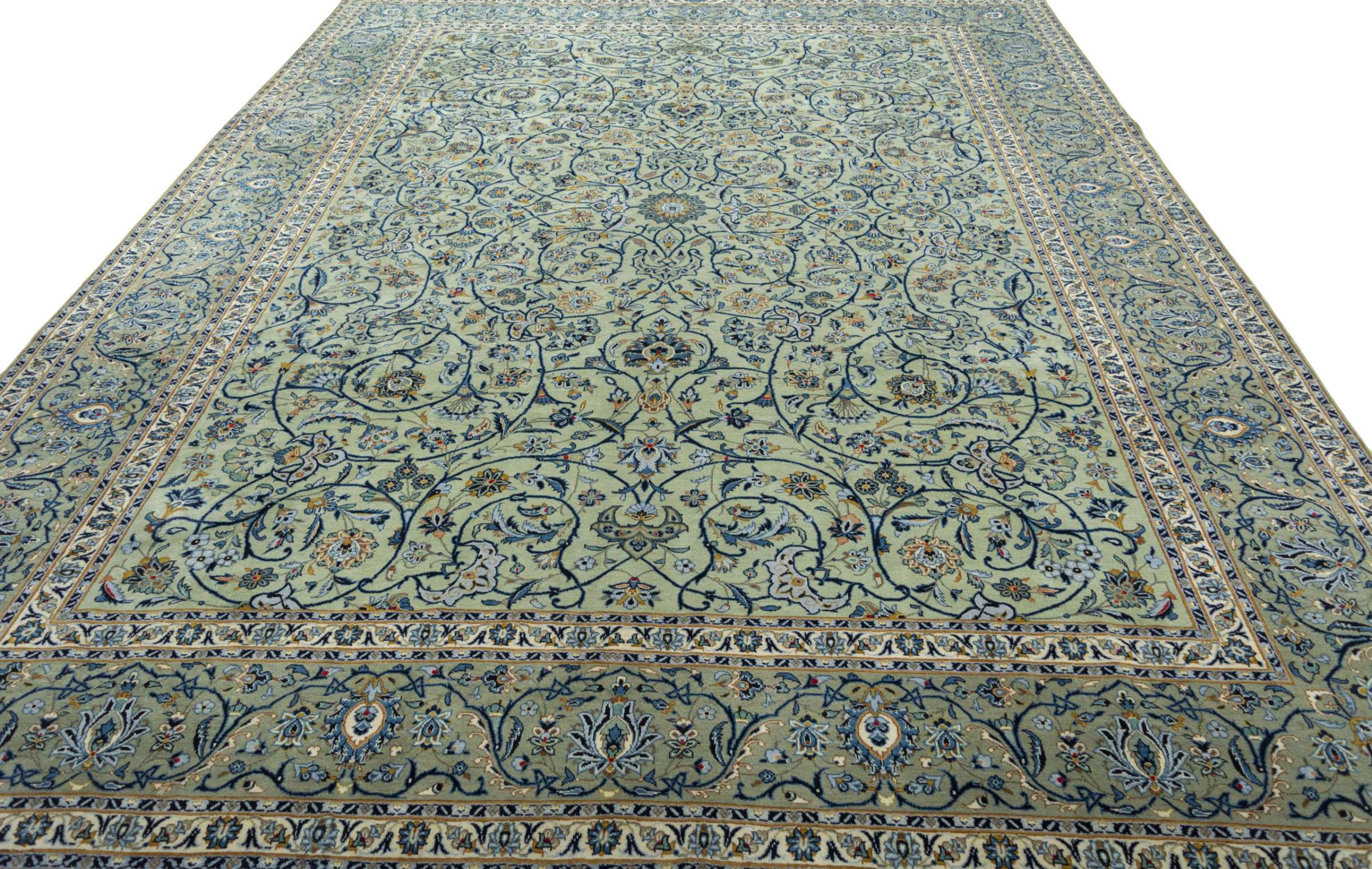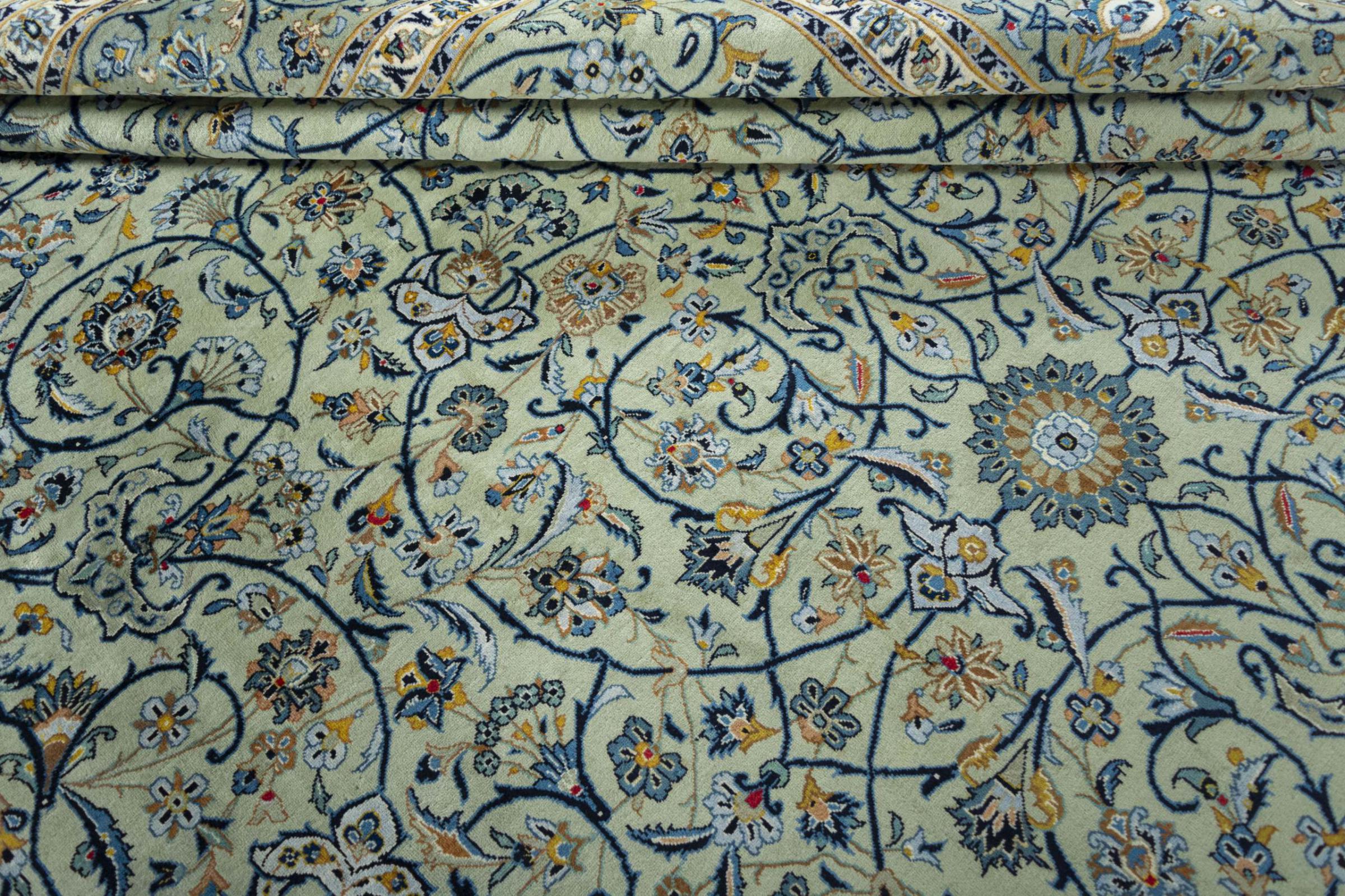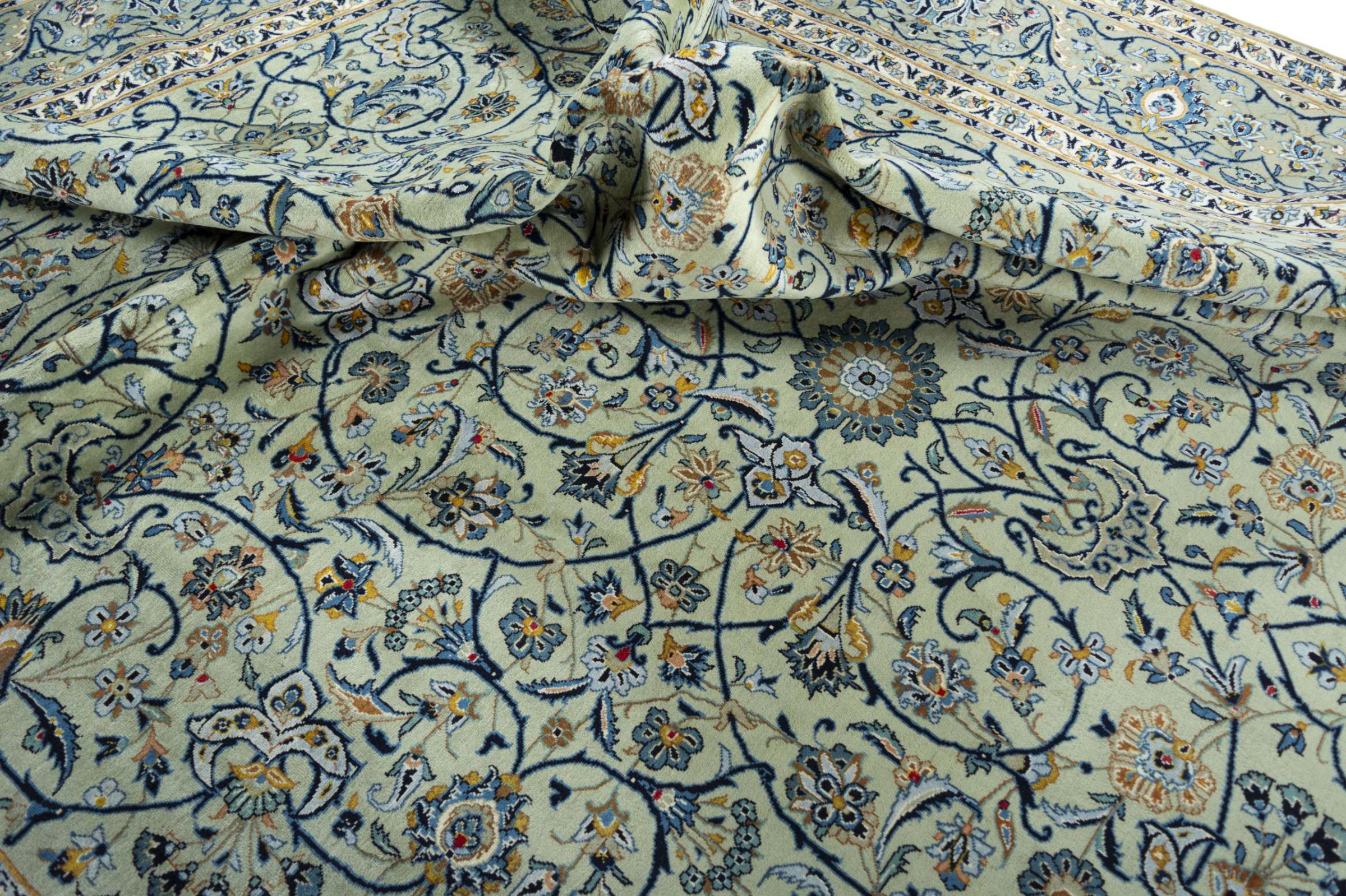 Alfombra número: 310568005236033 Tamaño: 421x322 cm Espesor: alrededor de 12 mm Nudos: 120 000 - 150 000 / m² Elaboración: Anudado a mano Crespón: Lana hilada a mano Urdimbre: Algodón Origen: Persia / Iran Edad: Nuevo Peso: alrededor de 47 kg Cantidad en stock: Única - Solo 1 en stock