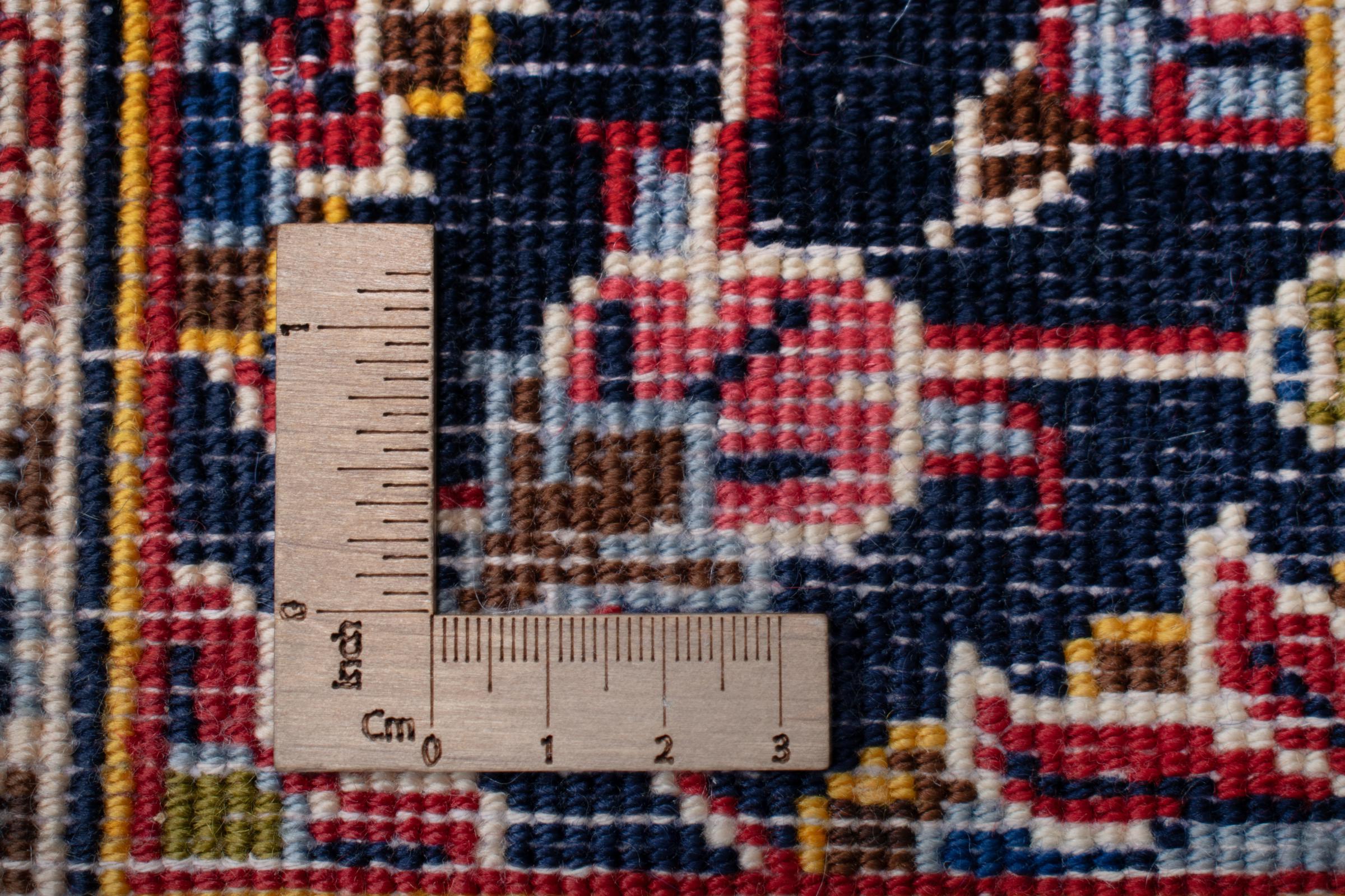 Esta alfombra está hecha de lana de oveja hilada a mano de la más alta calidad. Especialmente en Irán (antigua Persia), la lana de Afganistán y Pakistán sigue siendo hilada a mano antes de que comience el anudado de la alfombra. La lana ha demostrado ser un material natural y extremadamente resistente a lo largo de los siglos. Entre otras cosas, tiene propiedades repelentes de la suciedad y aislantes del calor. Al mismo tiempo, la lana es incomparablemente suave y tiene un brillo natural.