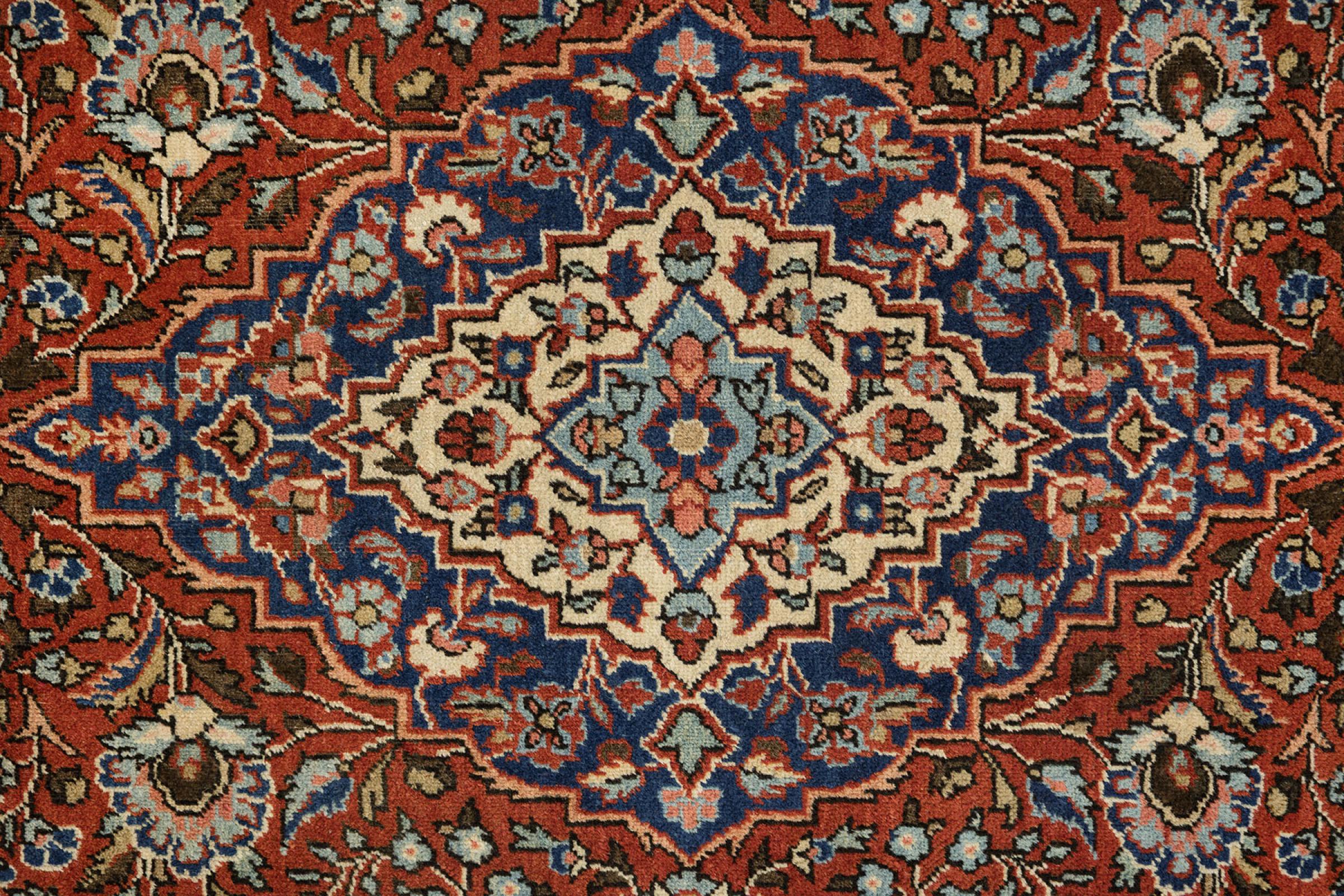 Esta antigua alfombra Keshan es una hermosa pieza única. Fue anudada a mano hace décadas en la ciudad de Kashan, en Irán. Sus ornamentos han sido anudados en colores duraderos y fuertes con mucha experiencia. Gracias a la alta densidad de nudos, los dibujos aparecen finos y vivos. La alfombra ha sido totalmente revisada, limpiada y cuidada por nuestros expertos. Esta alfombra persa antigua de una de las procedencias más populares es una pieza muy valiosa de la artesanía tradicional de la historia de Persia.