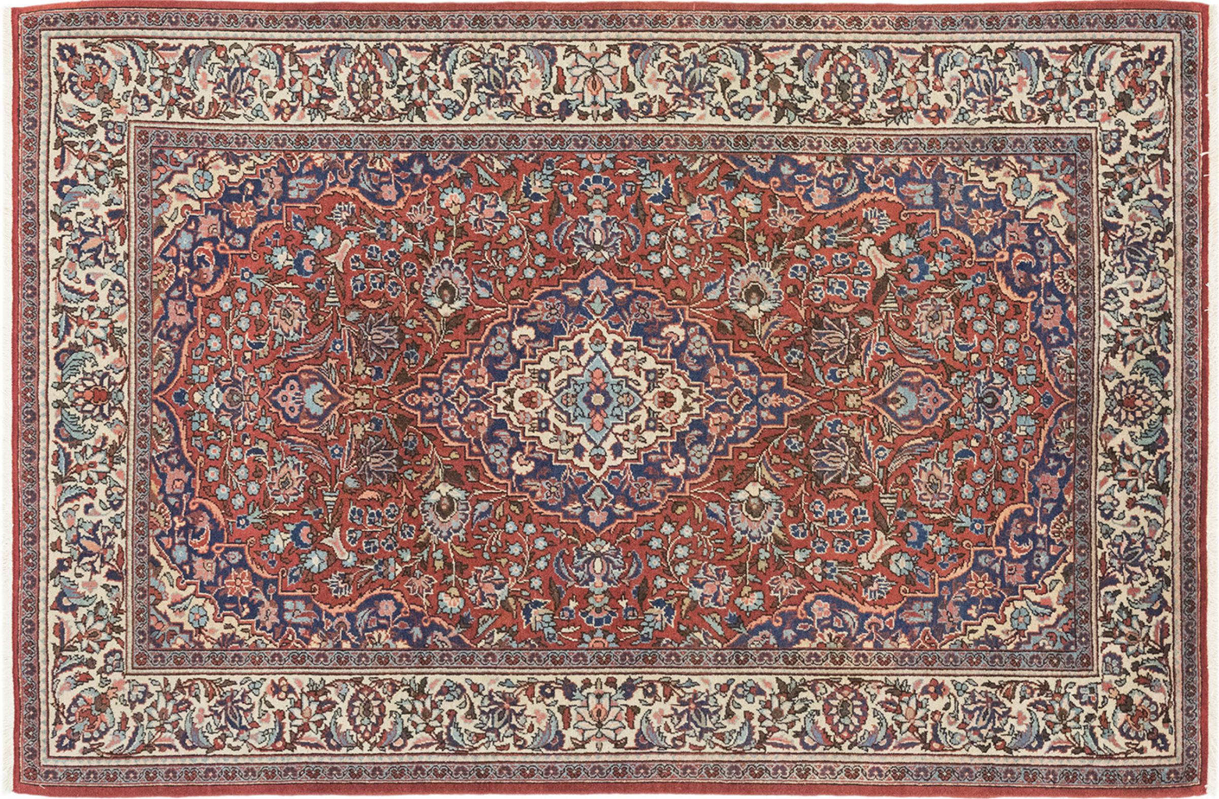 Esta alfombra proviene de Irán (antiguamente Persia) y como alfombra persa goza de la probablemente más alta reputación entre todos los tipos de alfombras anudadas a mano. Ninguna otra región tiene una tradición tan larga en el anudado de alfombras como Irán. Así que las probablemente más finas y elaboradas alfombras vienen aquí. La robustez, la durabilidad y la calidad del nudo persa siguen siendo insuperables hoy en día. Las alfombras persas suelen recibir el nombre de su región de origen. Así, un Nain, un Ghom, así como una alfombra de Isfahan, proviene de la ciudad del mismo nombre en Irán.