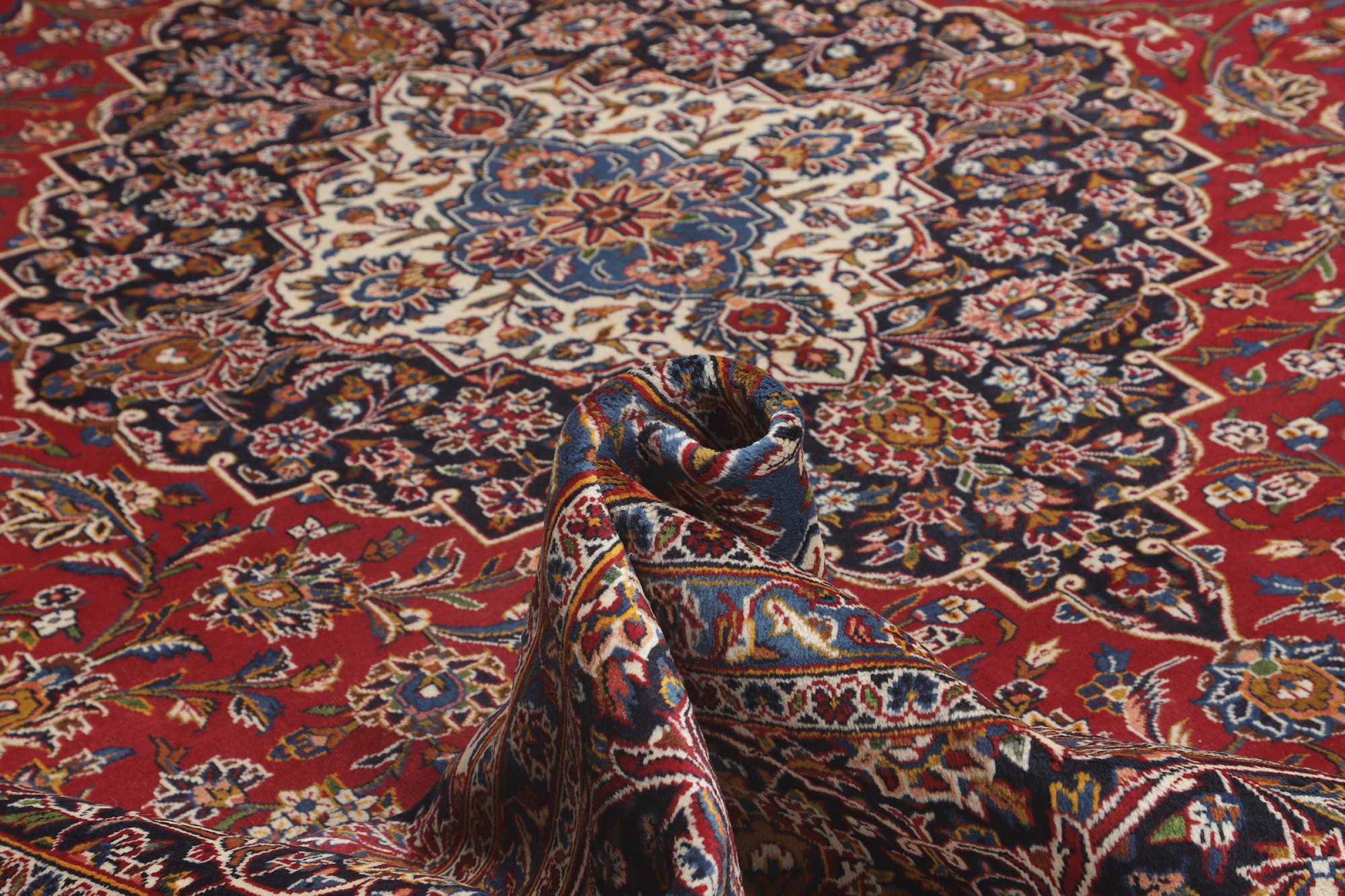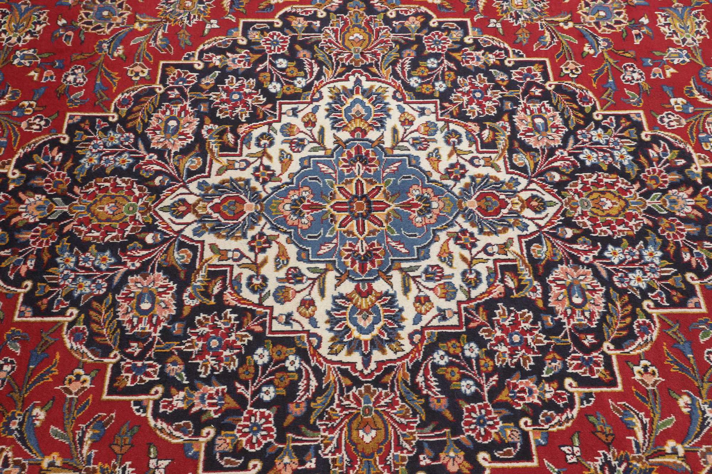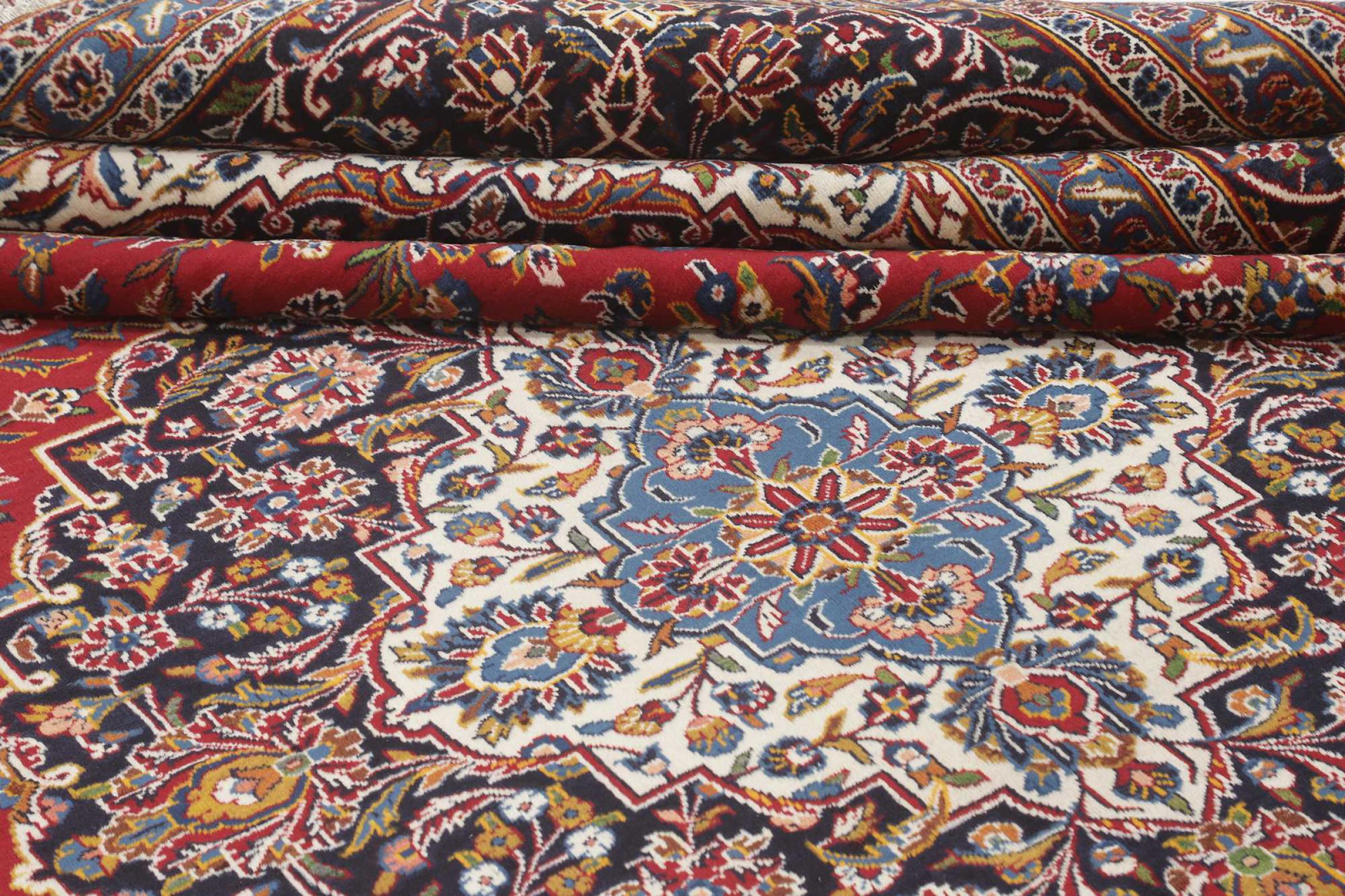 Las alfombras anudadas a mano de la ciudad de Keshan (Kashan) son conocidas en todo el mundo. Estas alfombras persas no sólo tienen un diseño muy popular, sino que su calidad es indiscutiblemente una de las mejores. En el Imperio Persa la ciudad era considerada uno de los lugares de comercio más importantes a lo largo de la famosa Ruta de la Seda. Las alfombras de Keshan suelen tener un medallón central, adornos florales y un fondo rojo. Están hechos de lana de oveja de alta calidad y tintes vegetales.