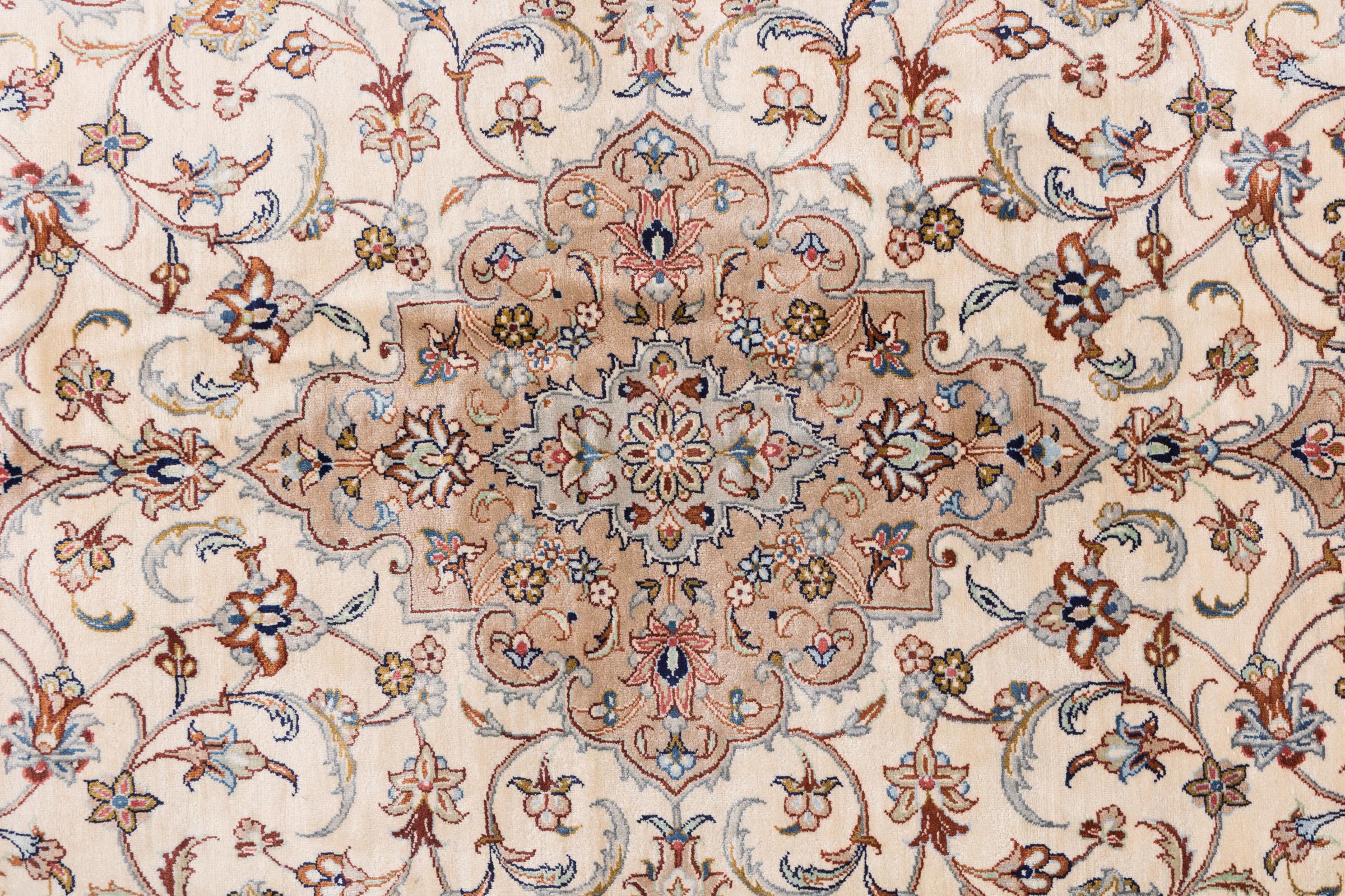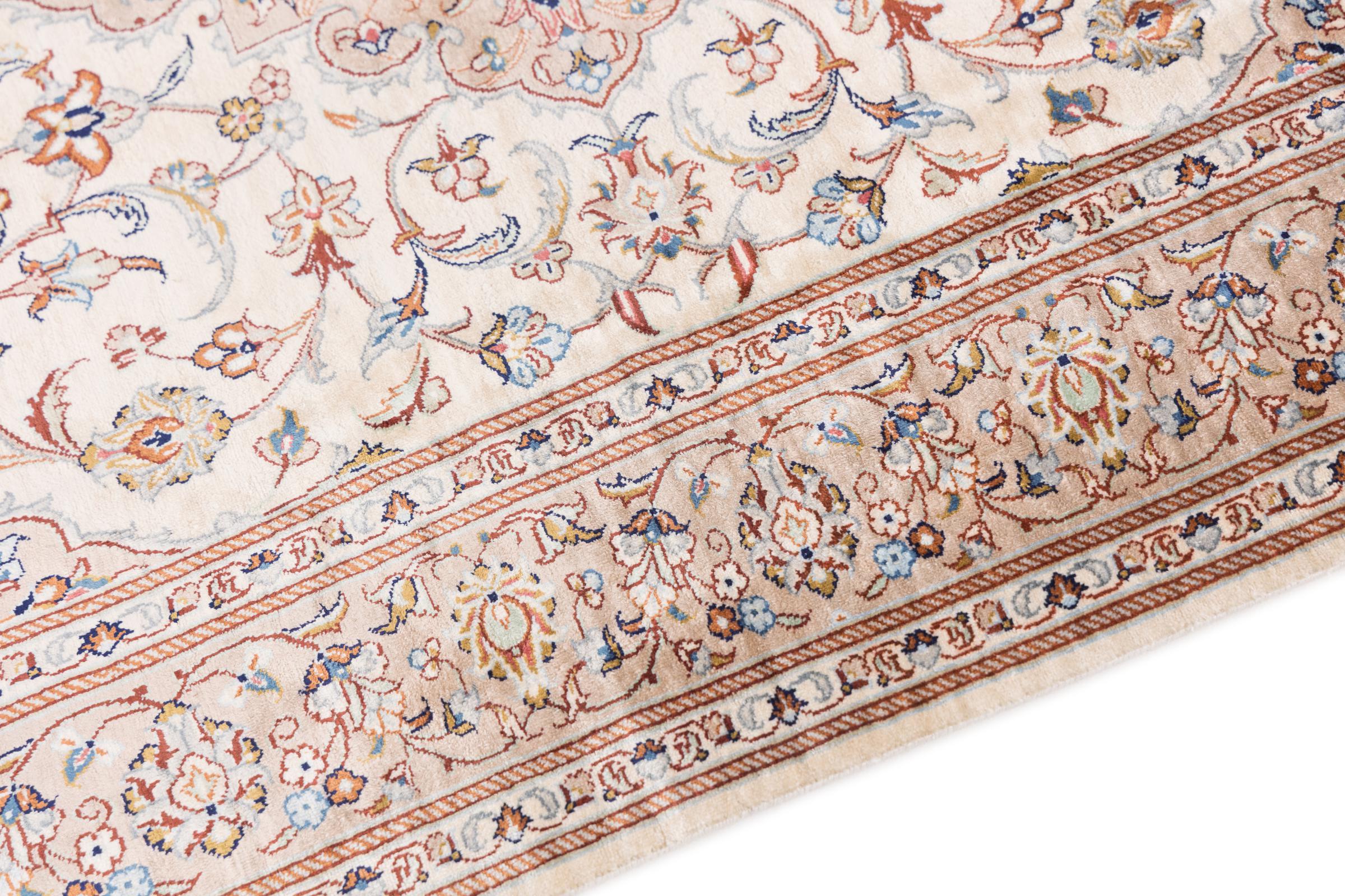 Esta alfombra de seda Kashan es inigualable. Está hecha completamente de seda y anudada a mano. Su alta densidad de nudos le otorga una calidad completamente lujosa. Estas alfombras son todo un lujo oriental – y con toda razón.