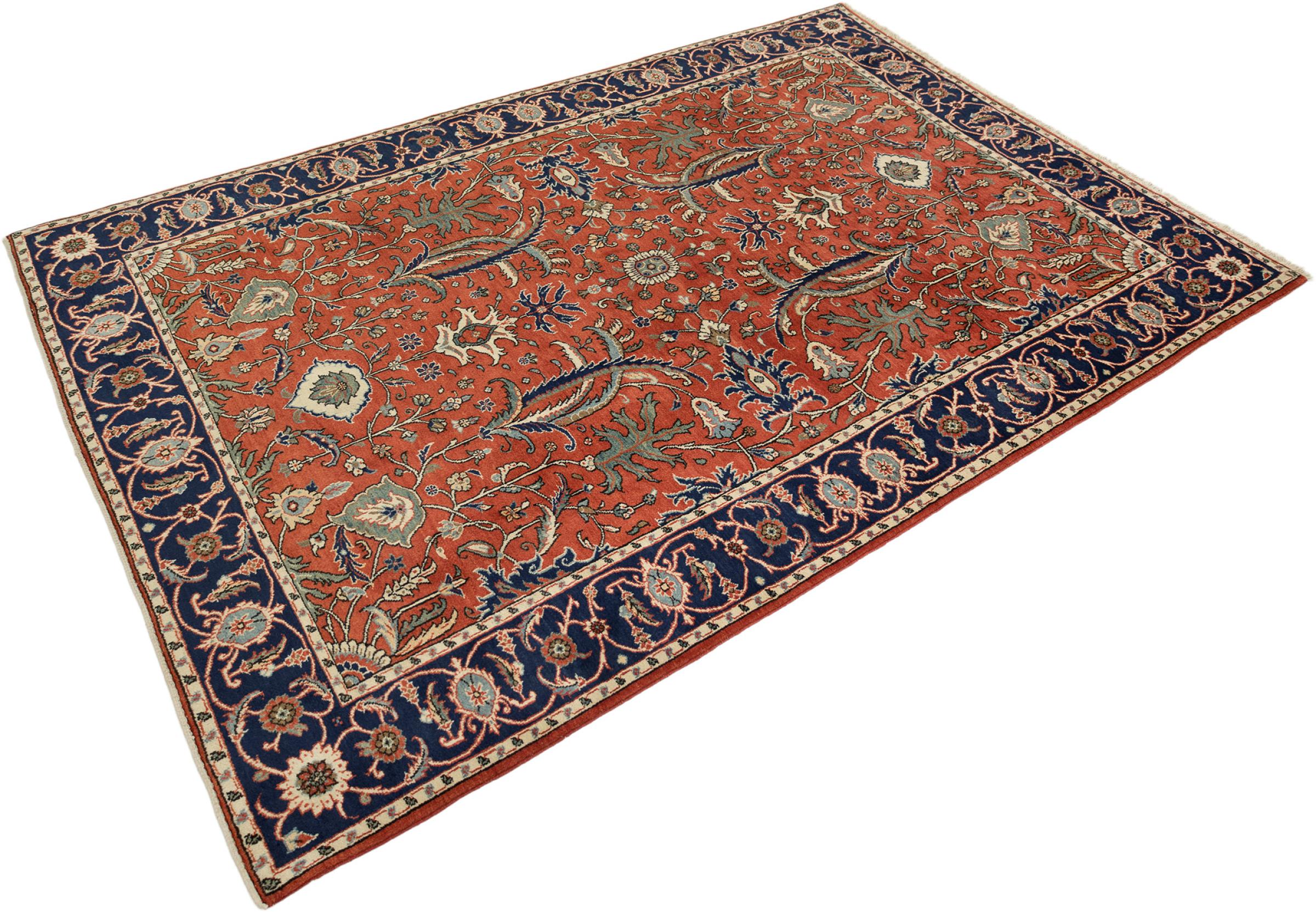 Esta alfombra de Kashan (Keshan) se lleva a cabo en su diseño persa muy tradicional y típico con hermosos adornos. Las alfombras Kashan son muy populares debido a su diseño excepcionalmente elegante. Estas alfombras son originarias de Kashan, una ciudad en la antigua Ruta de la Seda. Esta alfombra ha sido anudada a mano con lana de oveja de alta calidad y será un elemento destacado único en su hogar.