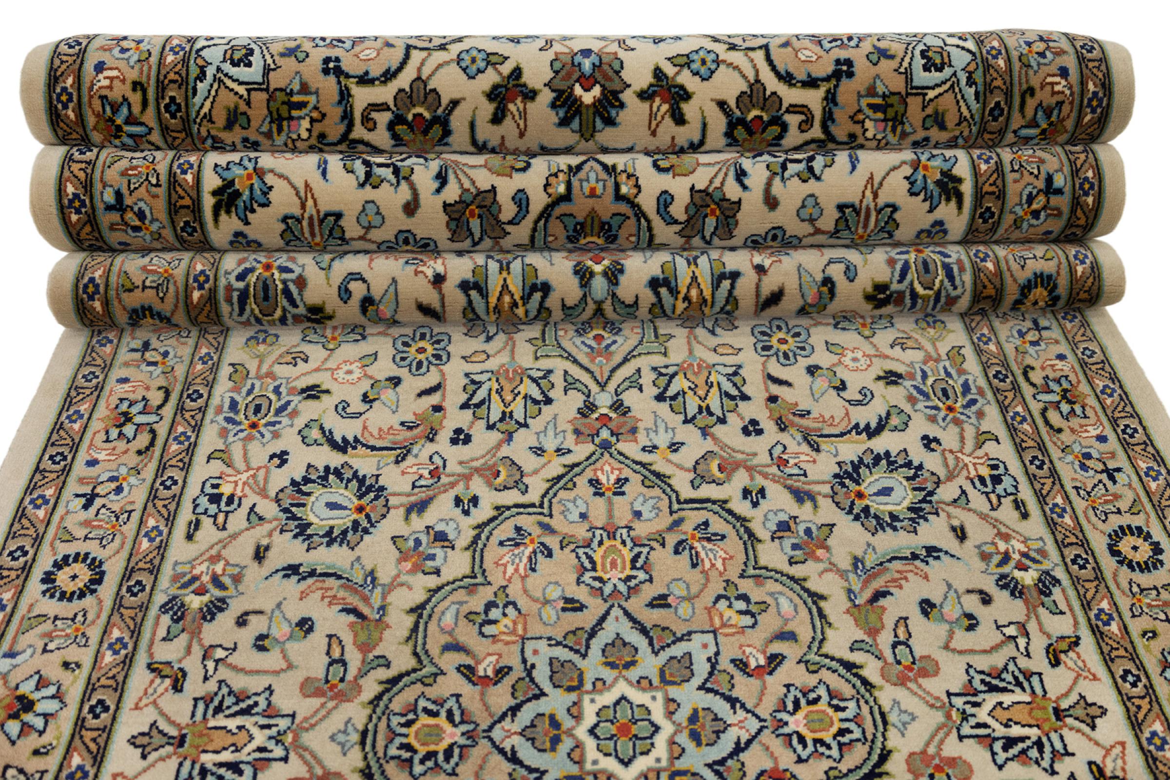 Las alfombras anudadas a mano de la ciudad de Keshan (Kashan) son conocidas en todo el mundo. Estas alfombras persas no sólo tienen un diseño muy popular, sino que su calidad es indiscutiblemente una de las mejores. En el Imperio Persa la ciudad era considerada uno de los lugares de comercio más importantes a lo largo de la famosa Ruta de la Seda. Las alfombras de Keshan suelen tener un medallón central, adornos florales y un fondo rojo. Están hechos de lana de oveja de alta calidad y tintes vegetales.