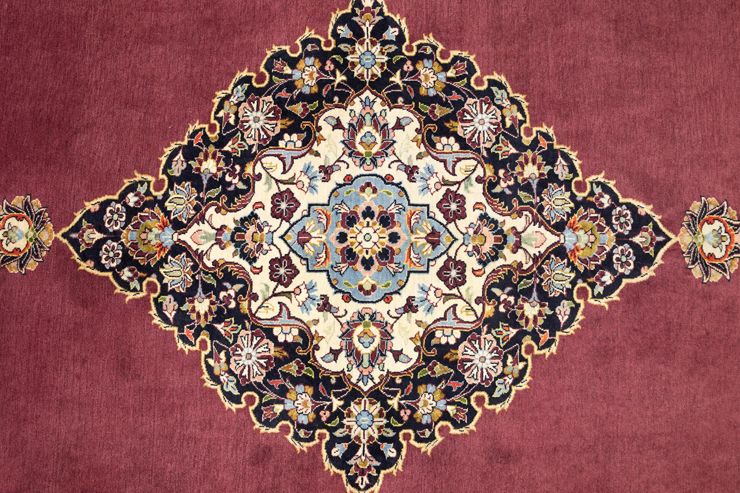 Las alfombras anudadas a mano de la ciudad de Keshan (Kashan) son conocidas en todo el mundo. Estas alfombras persas no sólo tienen un diseño muy popular, sino que su calidad es indiscutiblemente una de las mejores. En el Imperio Persa la ciudad era considerada uno de los lugares de comercio más importantes a lo largo de la famosa Ruta de la Seda. Las alfombras de Keshan suelen tener un medallón central, adornos florales y un fondo rojo. Están hechos de lana de oveja de alta calidad y tintes vegetales.