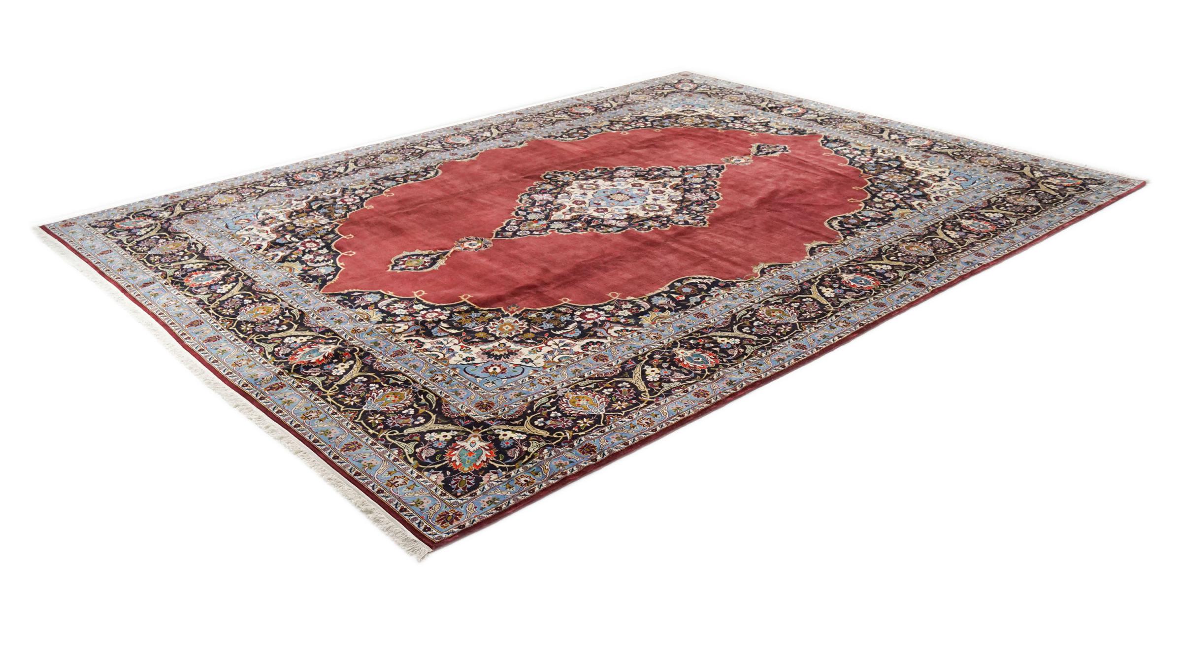 Las alfombras anudadas a mano de la ciudad de Keshan (Kashan) son conocidas en todo el mundo. Estas alfombras persas no sólo tienen un diseño muy popular, sino que su calidad es indiscutiblemente una de las mejores. En el Imperio Persa la ciudad era considerada uno de los lugares de comercio más importantes a lo largo de la famosa Ruta de la Seda. Las alfombras de Keshan suelen tener un medallón central, adornos florales y un fondo rojo. Están hechos de lana de oveja de alta calidad y tintes vegetales.