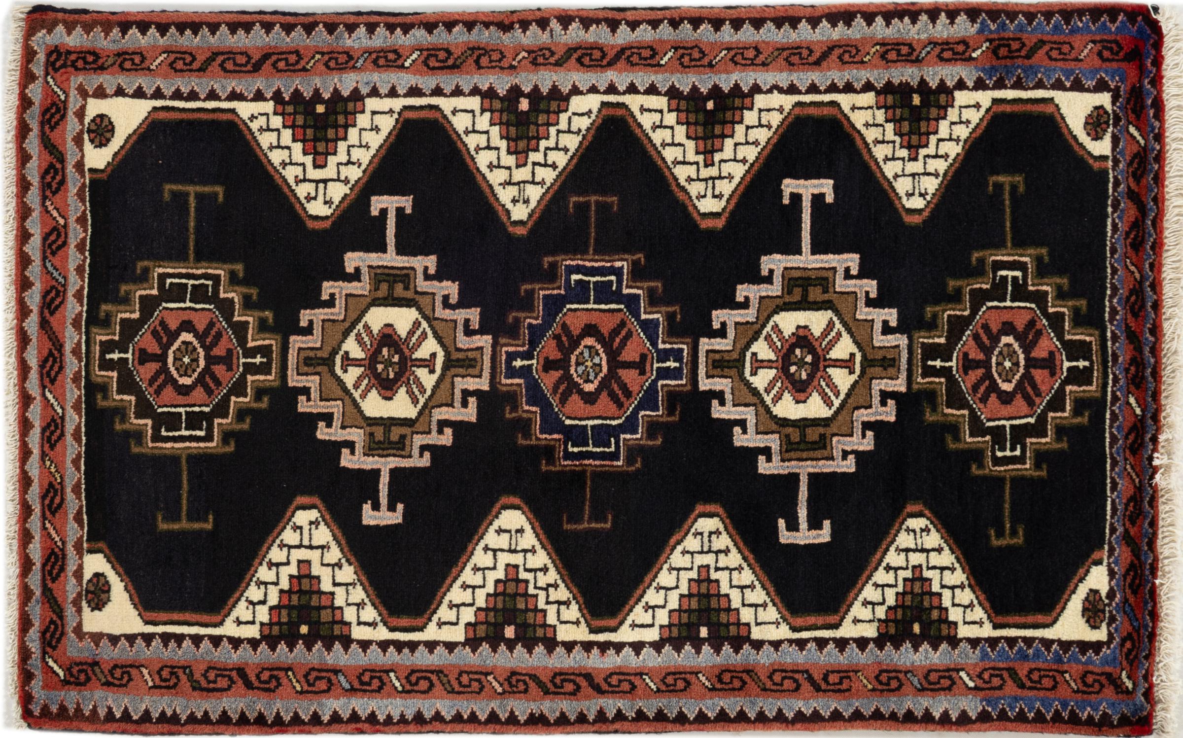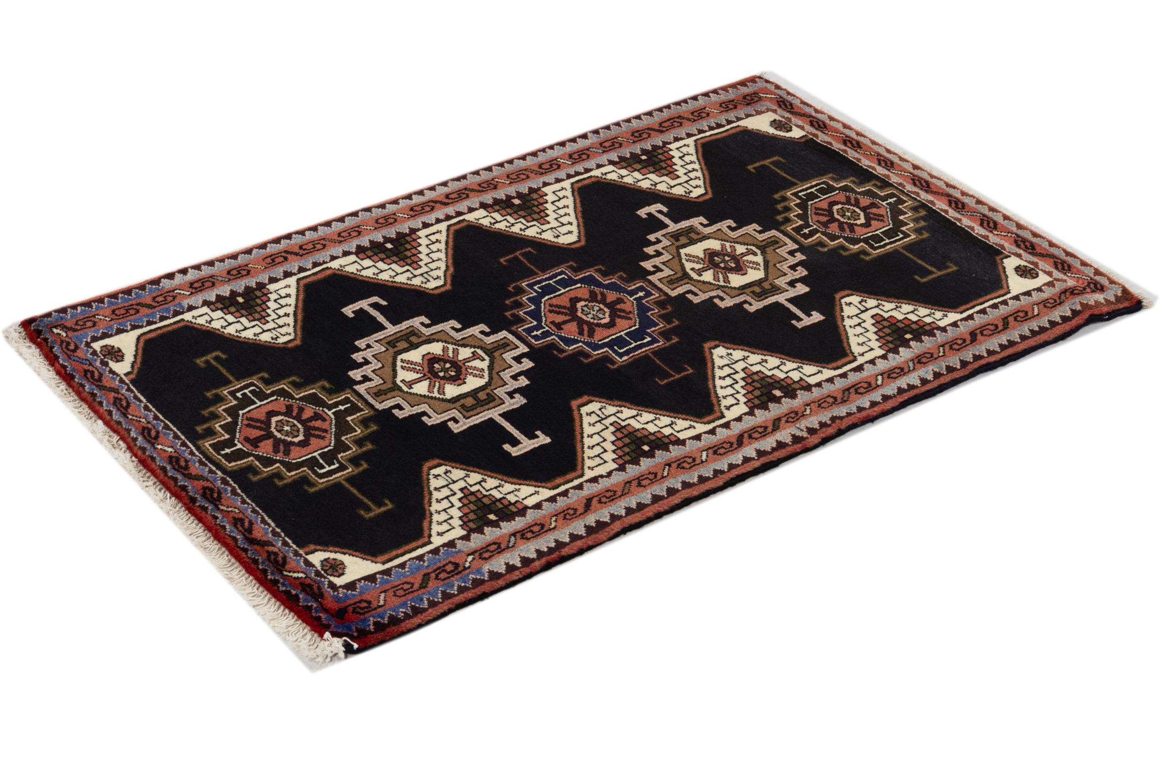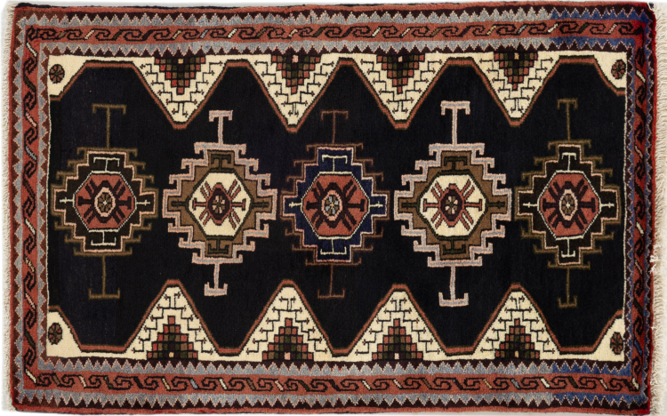 Es una auténtica alfombra persa procedente de Khamseh, un pueblo de la región de Hamadán. Tiene los colores típicos y los dibujos rectos de una alfombra de pueblo. Además, esta alfombra está hecha con el arte tradicional persa del anudado.
