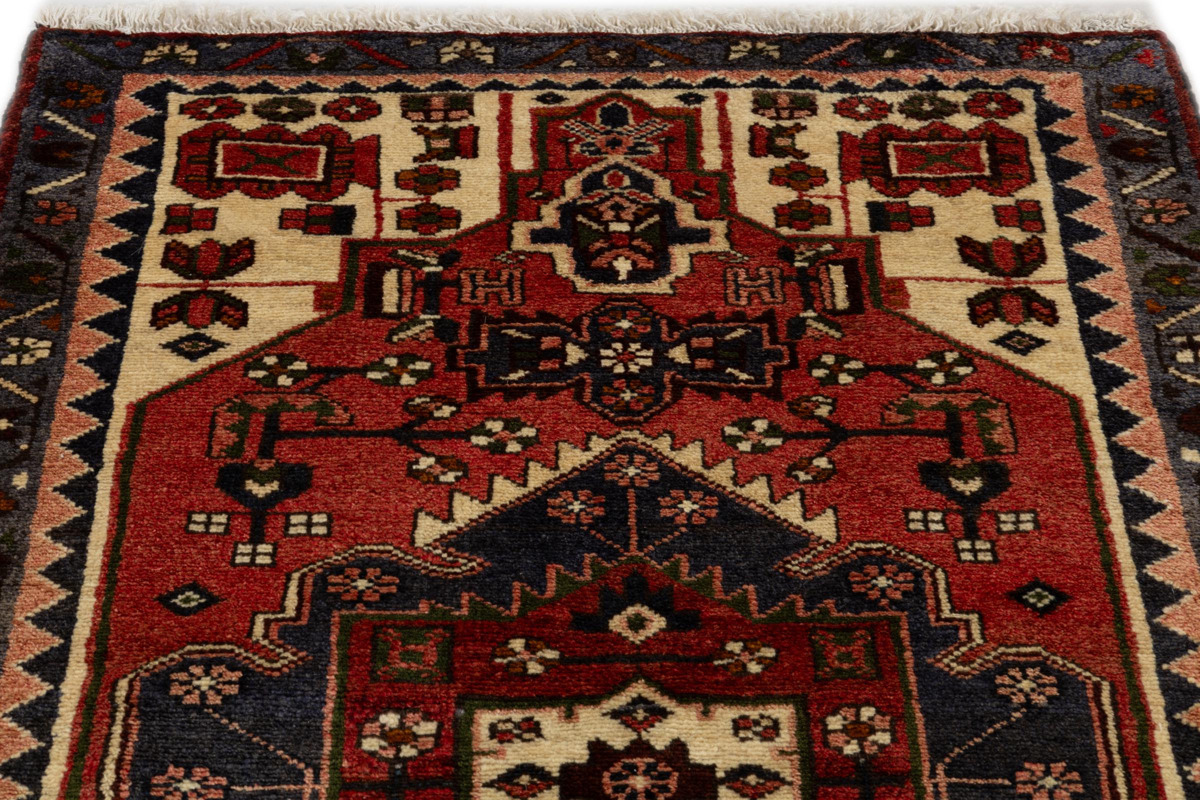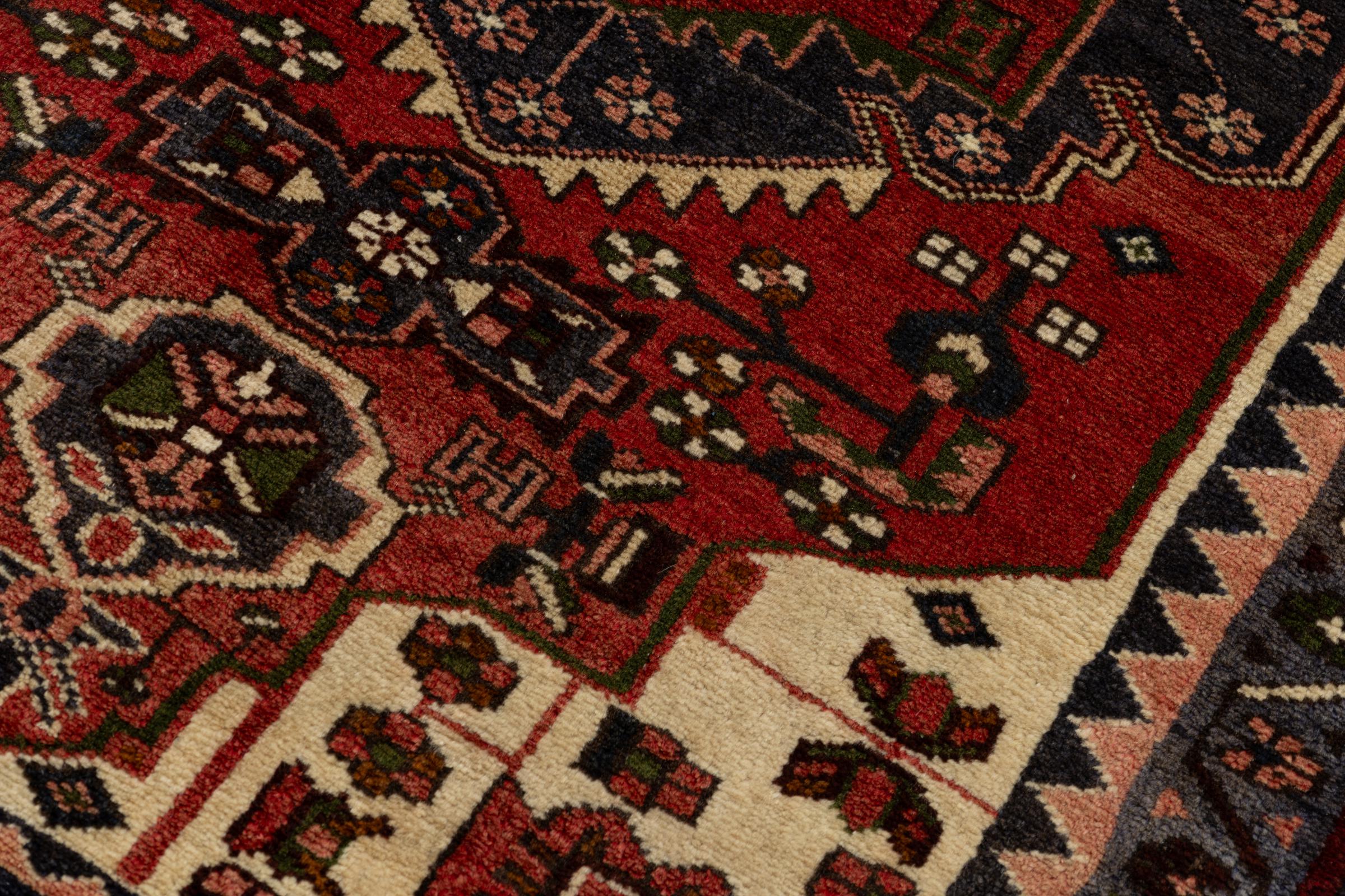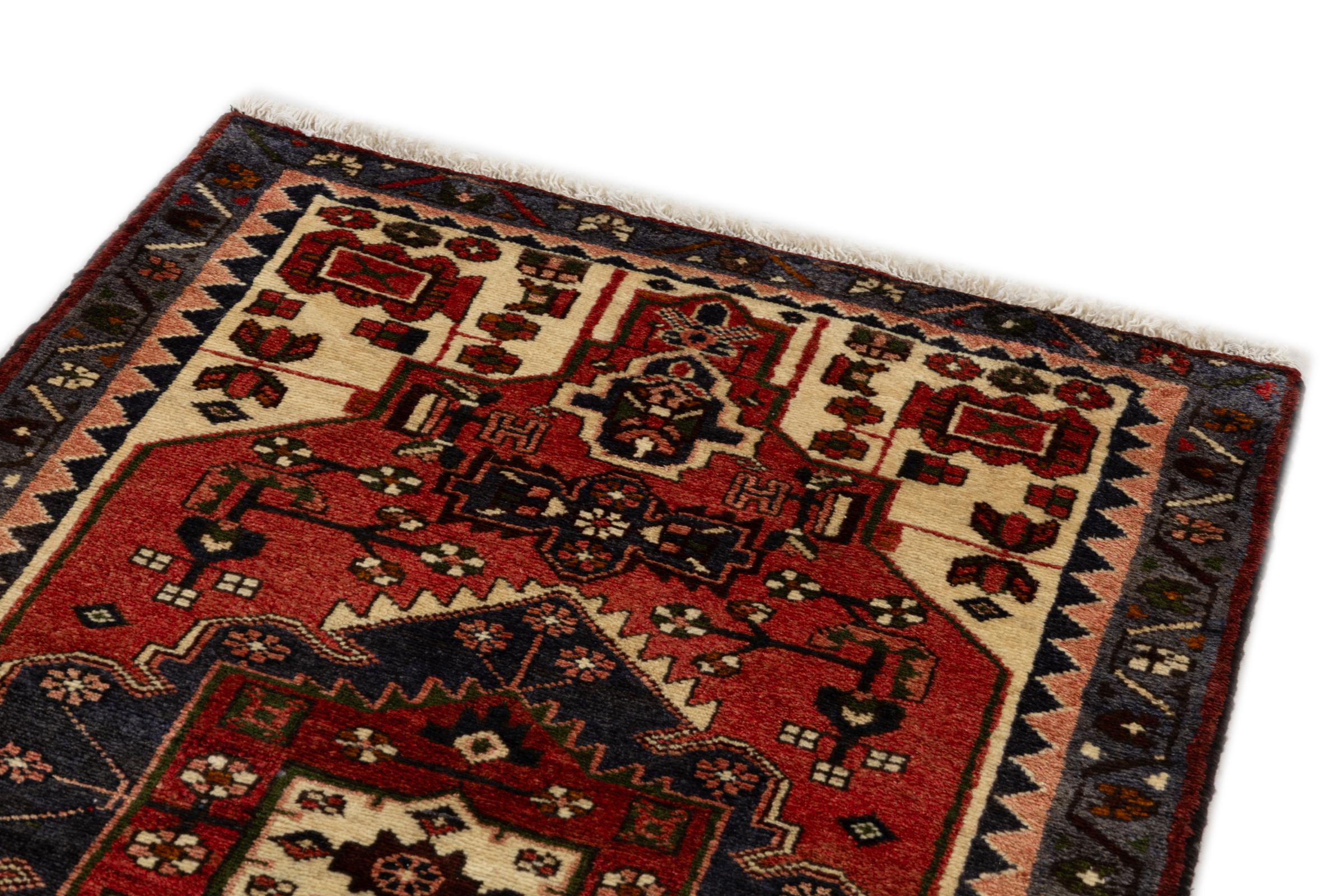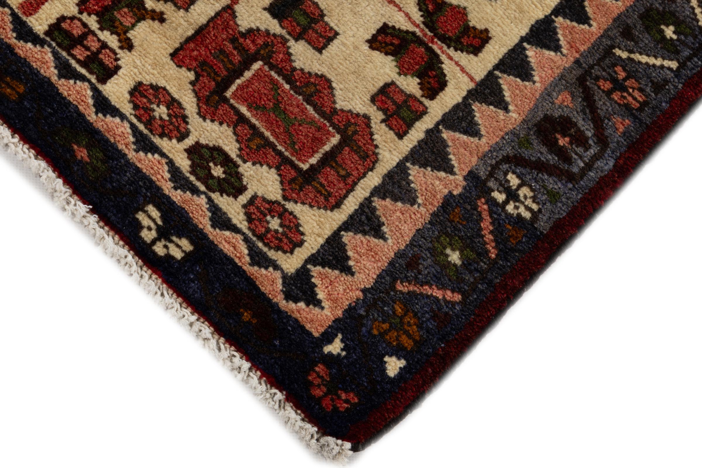 Es una auténtica alfombra persa procedente de Khamseh, un pueblo de la región de Hamadán. Tiene los colores típicos y los dibujos rectos de una alfombra de pueblo. Además, esta alfombra está hecha con el arte tradicional persa del anudado.