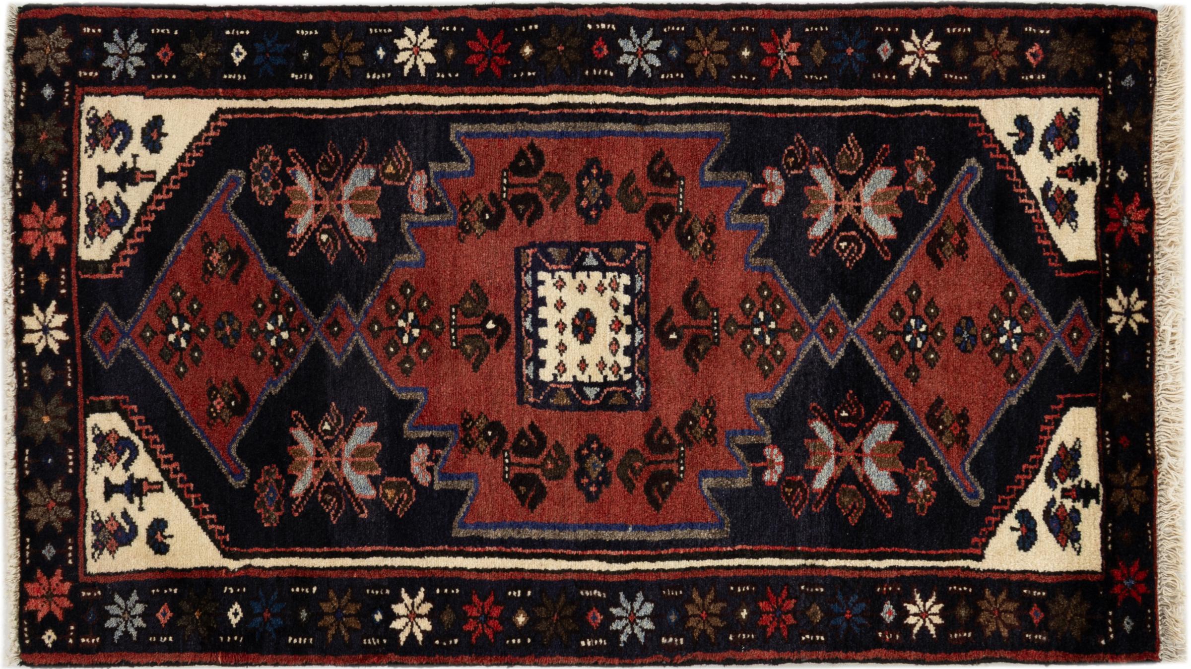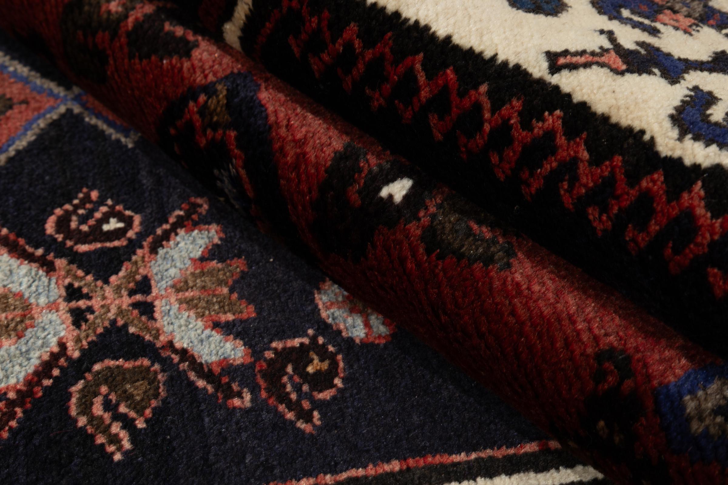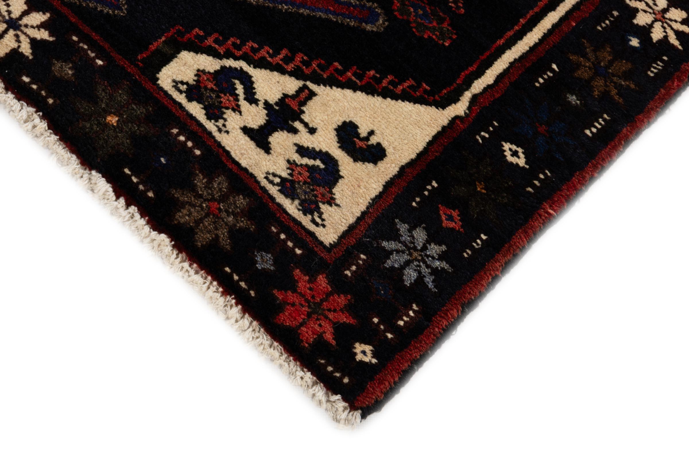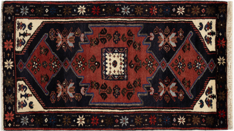 Es una auténtica alfombra persa procedente de Khamseh, un pueblo de la región de Hamadán. Tiene los colores típicos y los dibujos rectos de una alfombra de pueblo. Además, esta alfombra está hecha con el arte tradicional persa del anudado.