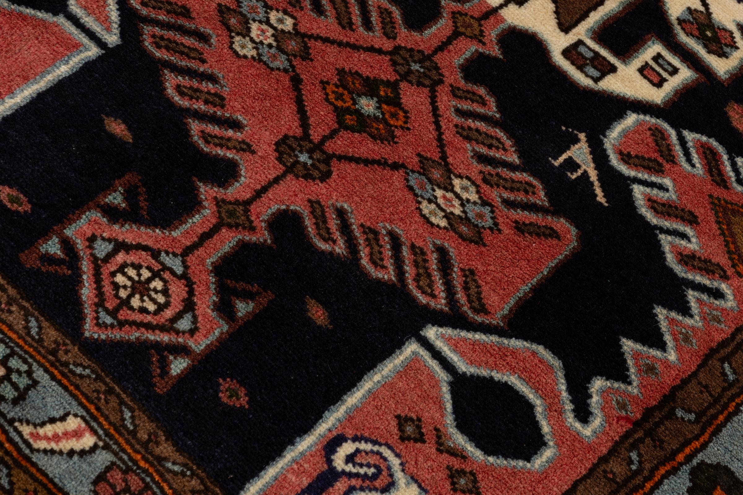 Es una auténtica alfombra persa procedente de Khamseh, un pueblo de la región de Hamadán. Tiene los colores típicos y los dibujos rectos de una alfombra de pueblo. Además, esta alfombra está hecha con el arte tradicional persa del anudado.