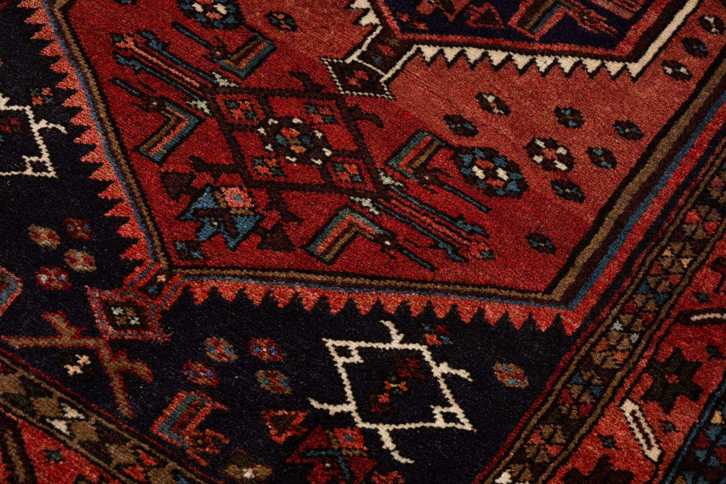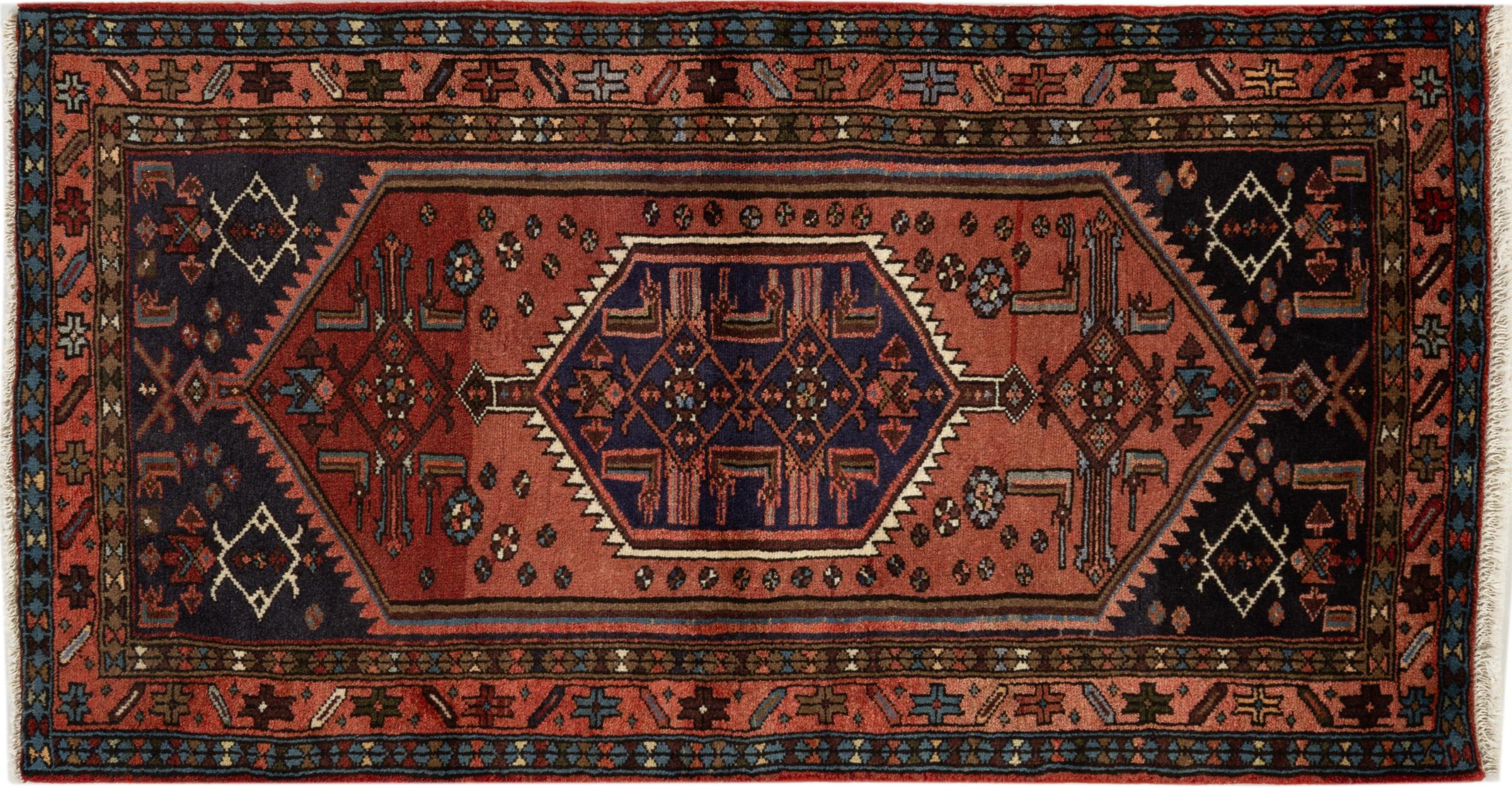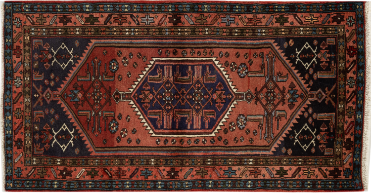 Es una auténtica alfombra persa procedente de Khamseh, un pueblo de la región de Hamadán. Tiene los colores típicos y los dibujos rectos de una alfombra de pueblo. Además, esta alfombra está hecha con el arte tradicional persa del anudado.