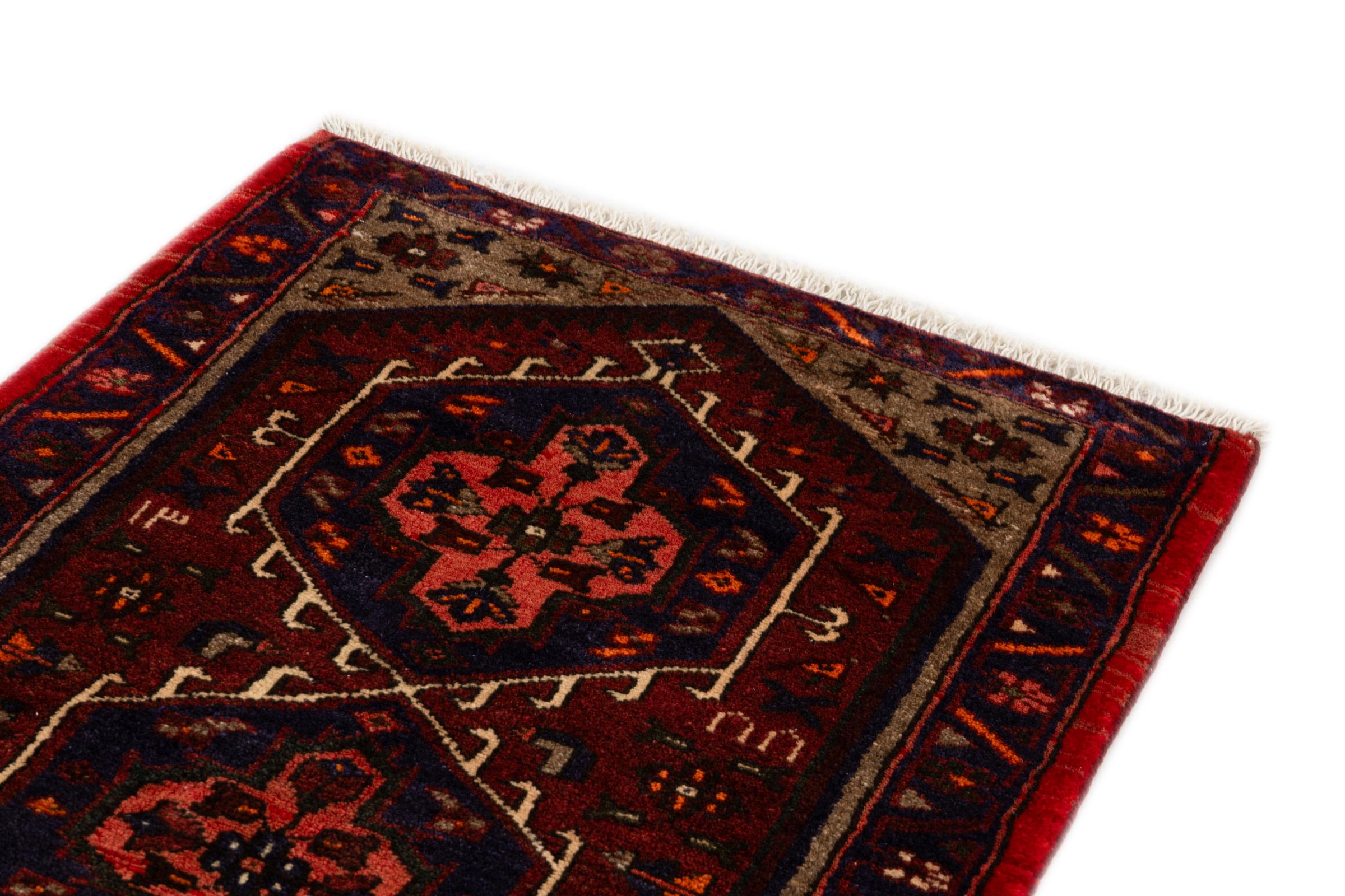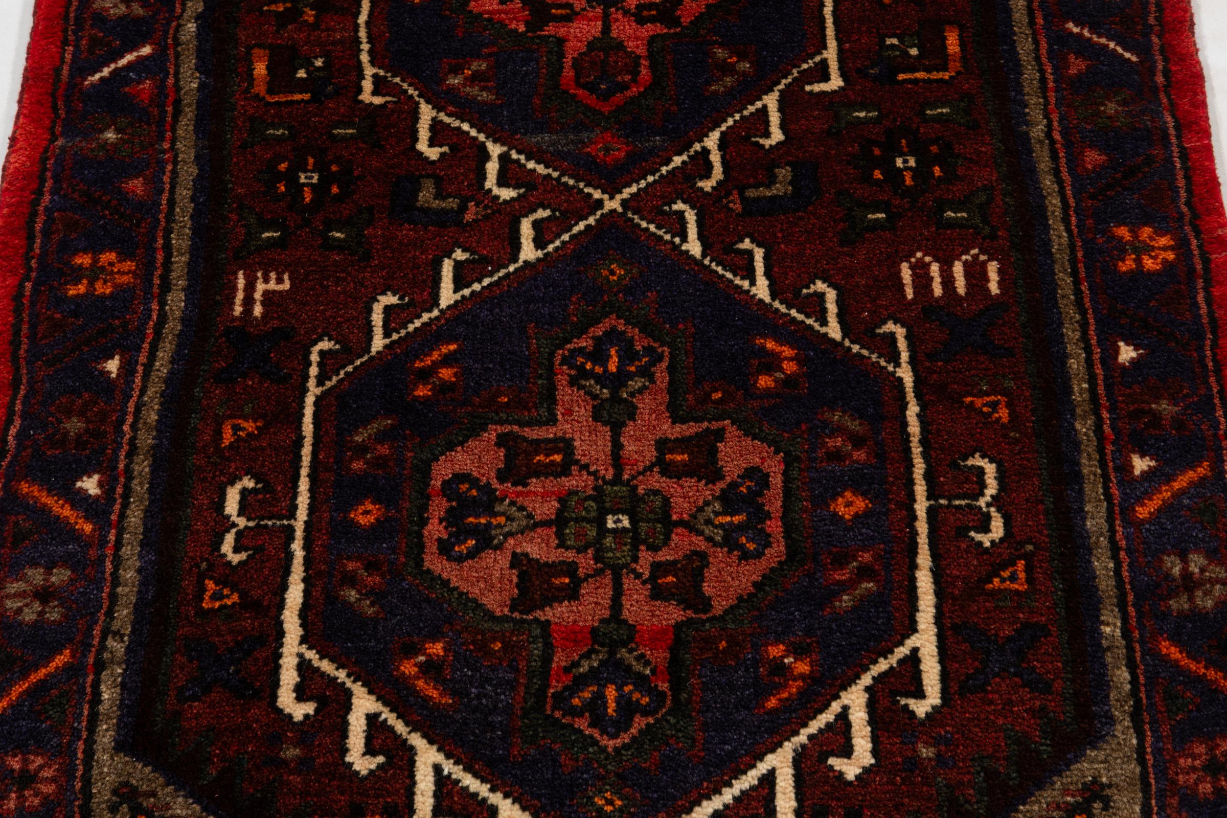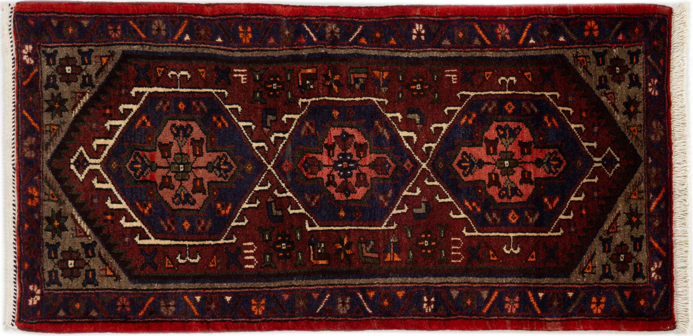 Es una auténtica alfombra persa procedente de Khamseh, un pueblo de la región de Hamadán. Tiene los colores típicos y los dibujos rectos de una alfombra de pueblo. Además, esta alfombra está hecha con el arte tradicional persa del anudado.