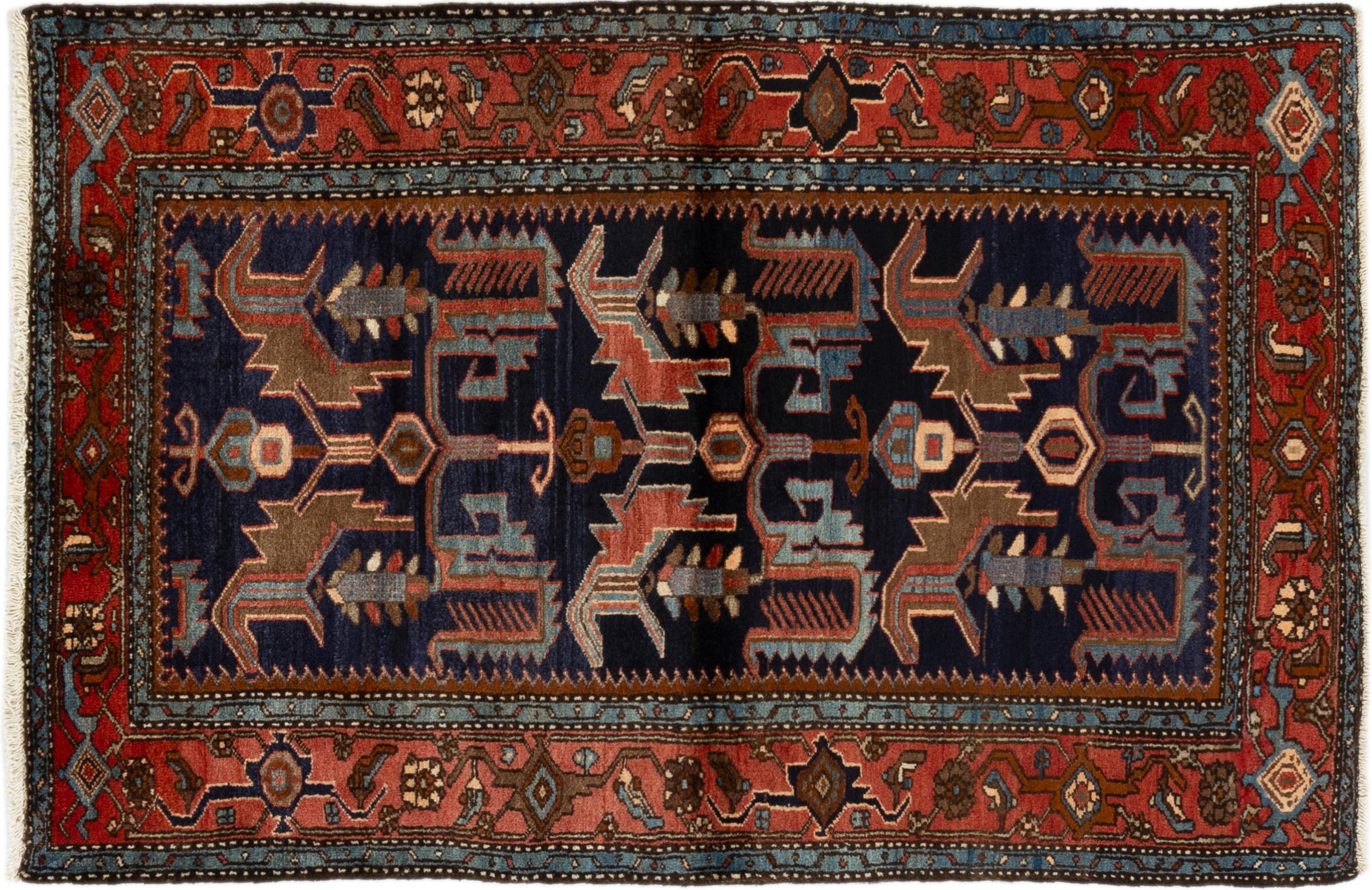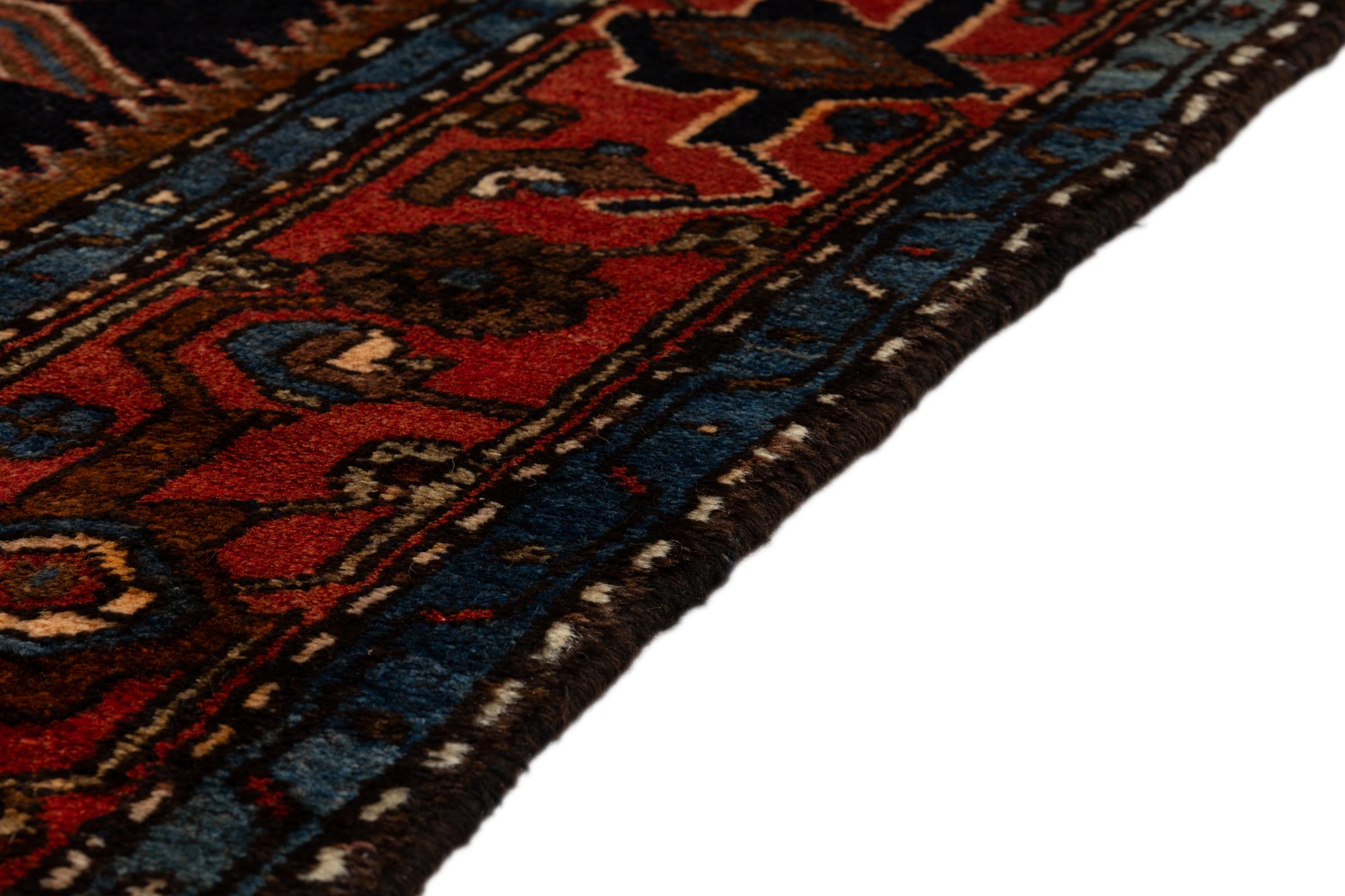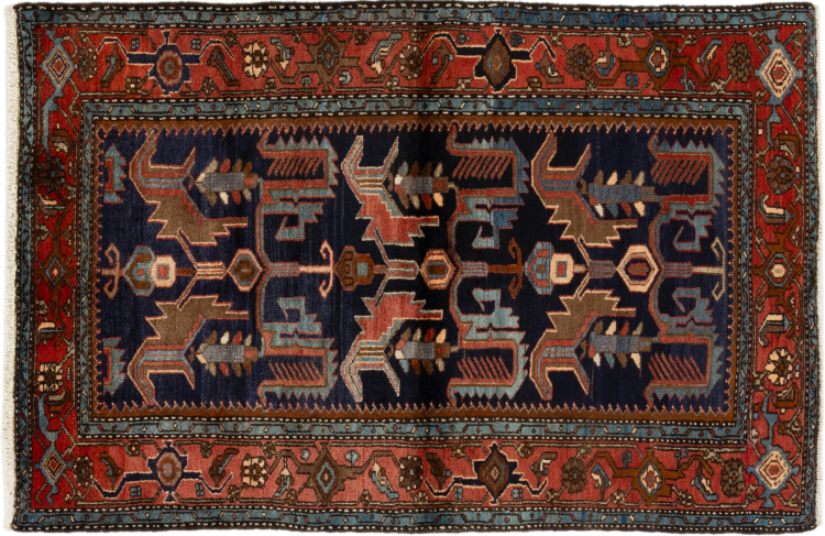 Es una auténtica alfombra persa procedente de Khamseh, un pueblo de la región de Hamadán. Tiene los colores típicos y los dibujos rectos de una alfombra de pueblo. Además, esta alfombra está hecha con el arte tradicional persa del anudado.