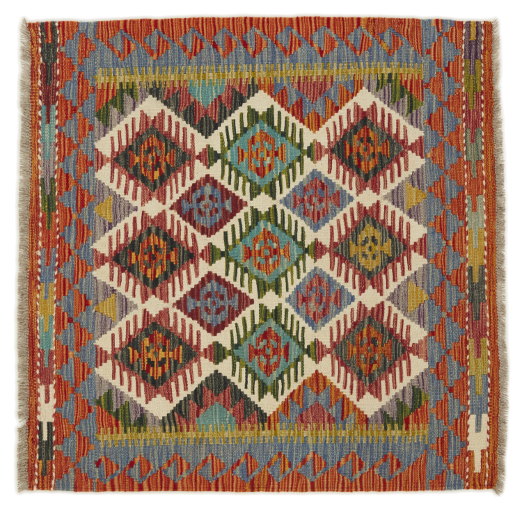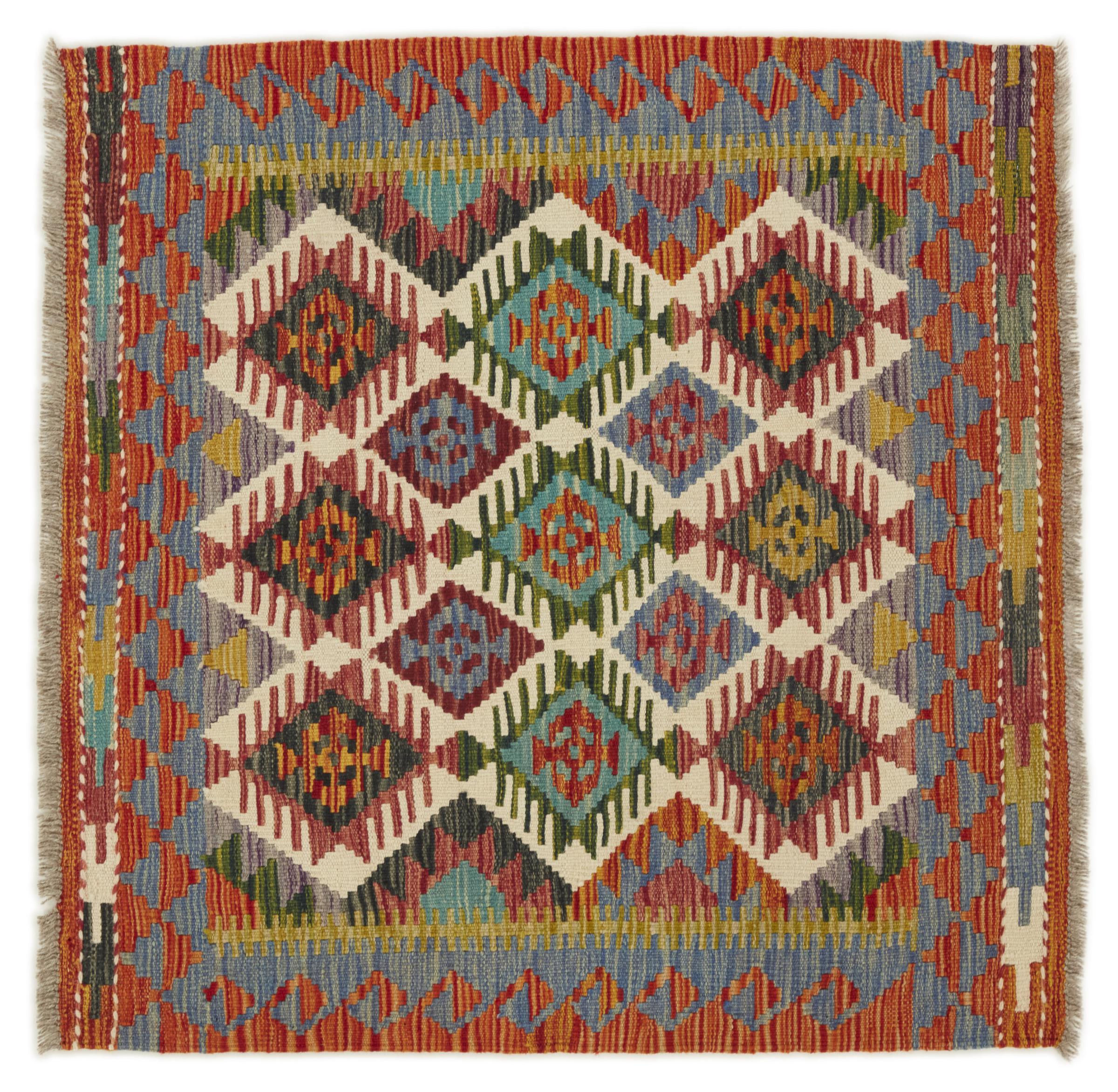 Estas alfombras kilim muestran una diferencia decisiva con las alfombras anudadas a mano - son tejidas a mano. Por lo tanto, no tienen un montón alto de lana y son a menudo más planos y más ásperos que las alfombras de lana anudada. Su fabricación es menos elaborada y por eso suelen ser mucho más baratas. Como ventaja, las alfombras de kilim son también mucho más ligeras y pueden ser colocadas por delante y por detrás. Los kilims tejidos a mano provienen originalmente de la antigua Persia y ahora también se fabrican a menudo en el Afganistán. Tienen patrones bastante simples y directos, que se deben a su técnica de tejido.