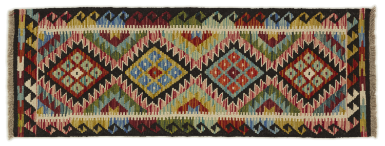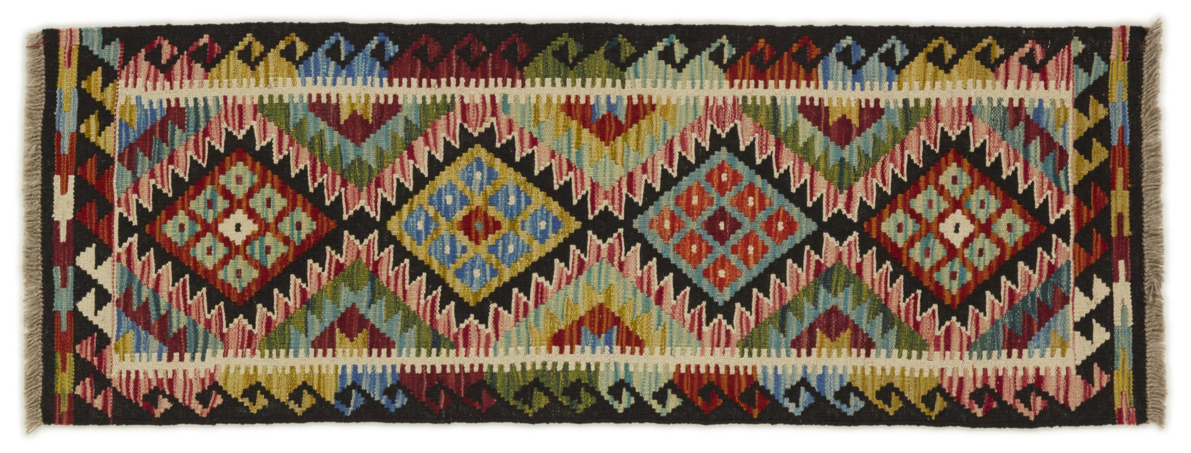 Estas alfombras kilim muestran una diferencia decisiva con las alfombras anudadas a mano - son tejidas a mano. Por lo tanto, no tienen un montón alto de lana y son a menudo más planos y más ásperos que las alfombras de lana anudada. Su fabricación es menos elaborada y por eso suelen ser mucho más baratas. Como ventaja, las alfombras de kilim son también mucho más ligeras y pueden ser colocadas por delante y por detrás. Los kilims tejidos a mano provienen originalmente de la antigua Persia y ahora también se fabrican a menudo en el Afganistán. Tienen patrones bastante simples y directos, que se deben a su técnica de tejido.