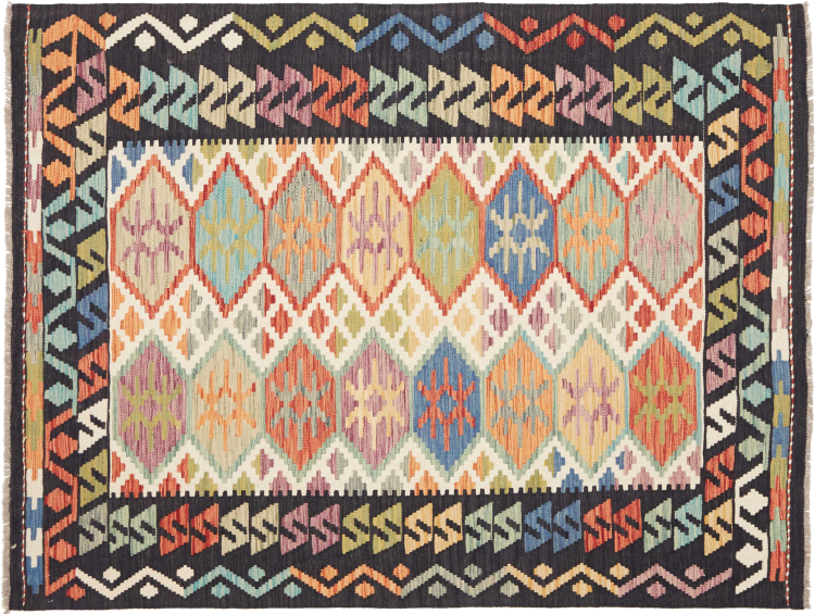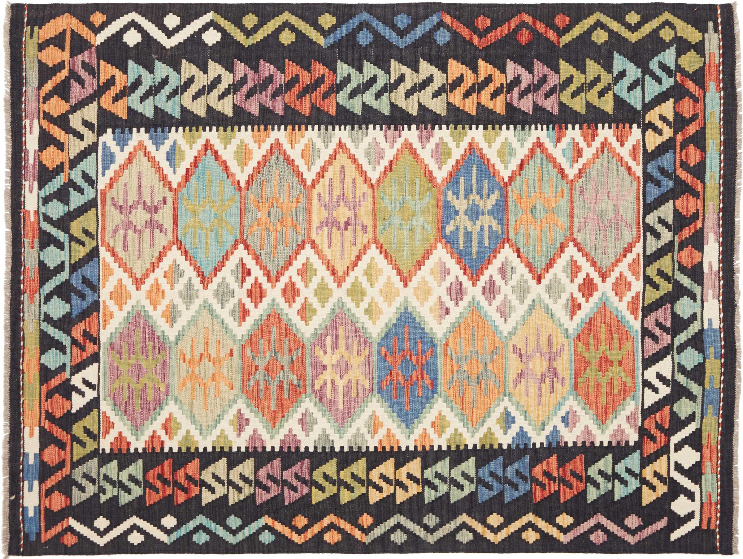 Estas alfombras kilim muestran una diferencia decisiva con las alfombras anudadas a mano - son tejidas a mano. Por lo tanto, no tienen un montón alto de lana y son a menudo más planos y más ásperos que las alfombras de lana anudada. Su fabricación es menos elaborada y por eso suelen ser mucho más baratas. Como ventaja, las alfombras de kilim son también mucho más ligeras y pueden ser colocadas por delante y por detrás. Los kilims tejidos a mano provienen originalmente de la antigua Persia y ahora también se fabrican a menudo en el Afganistán. Tienen patrones bastante simples y directos, que se deben a su técnica de tejido.