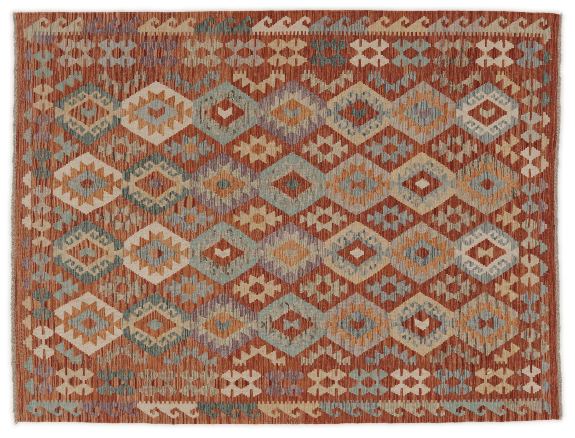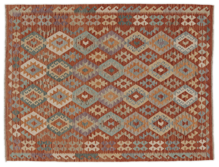 Estas alfombras kilim muestran una diferencia decisiva con las alfombras anudadas a mano - son tejidas a mano. Por lo tanto, no tienen un montón alto de lana y son a menudo más planos y más ásperos que las alfombras de lana anudada. Su fabricación es menos elaborada y por eso suelen ser mucho más baratas. Como ventaja, las alfombras de kilim son también mucho más ligeras y pueden ser colocadas por delante y por detrás. Los kilims tejidos a mano provienen originalmente de la antigua Persia y ahora también se fabrican a menudo en el Afganistán. Tienen patrones bastante simples y directos, que se deben a su técnica de tejido.