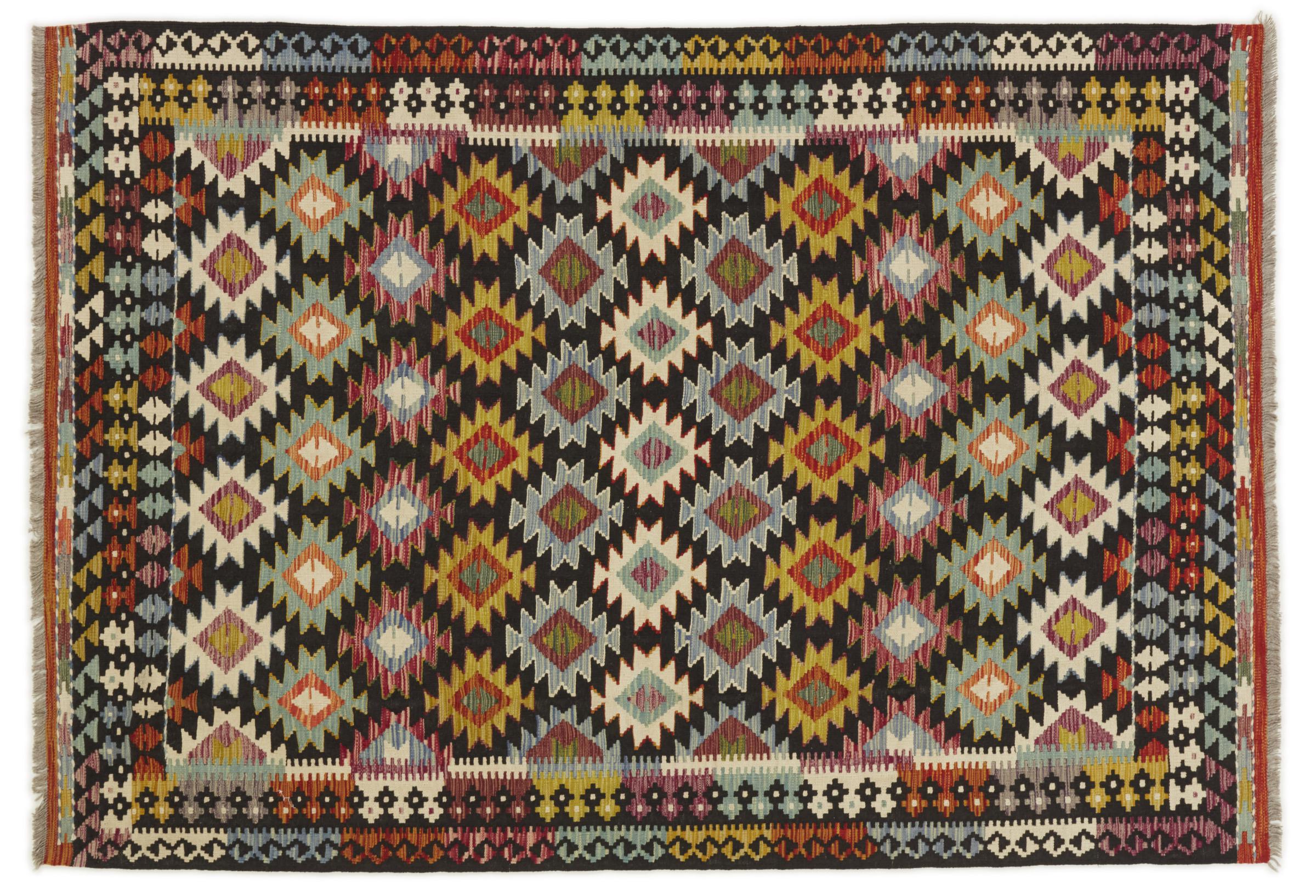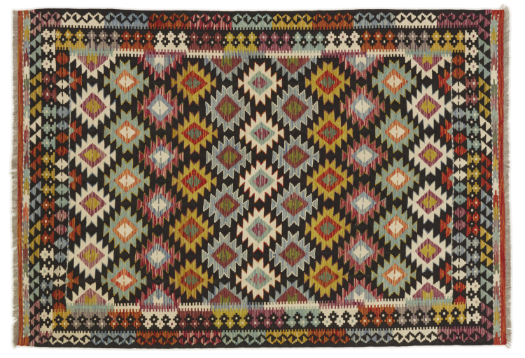 Estas alfombras kilim muestran una diferencia decisiva con las alfombras anudadas a mano - son tejidas a mano. Por lo tanto, no tienen un montón alto de lana y son a menudo más planos y más ásperos que las alfombras de lana anudada. Su fabricación es menos elaborada y por eso suelen ser mucho más baratas. Como ventaja, las alfombras de kilim son también mucho más ligeras y pueden ser colocadas por delante y por detrás. Los kilims tejidos a mano provienen originalmente de la antigua Persia y ahora también se fabrican a menudo en el Afganistán. Tienen patrones bastante simples y directos, que se deben a su técnica de tejido.
