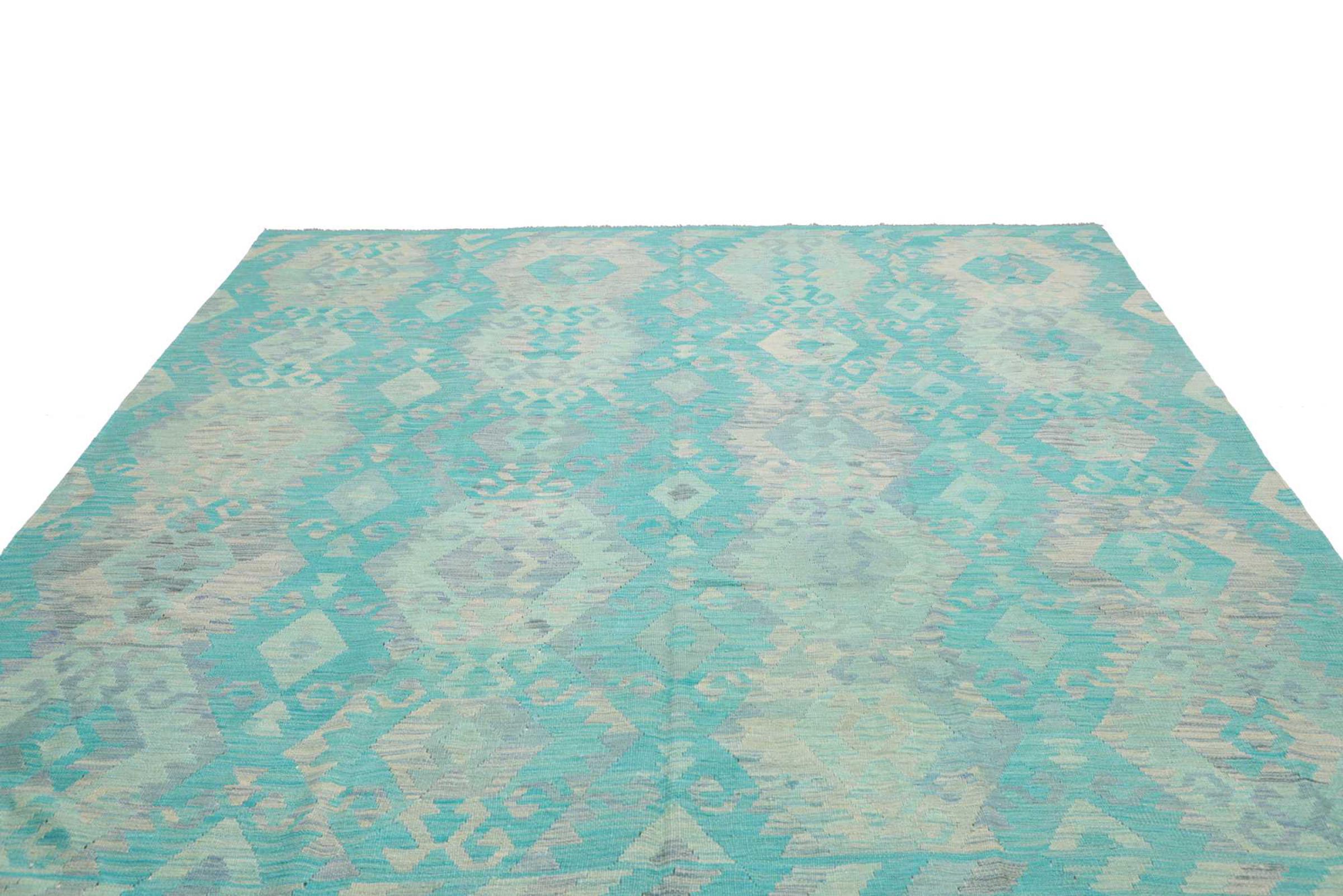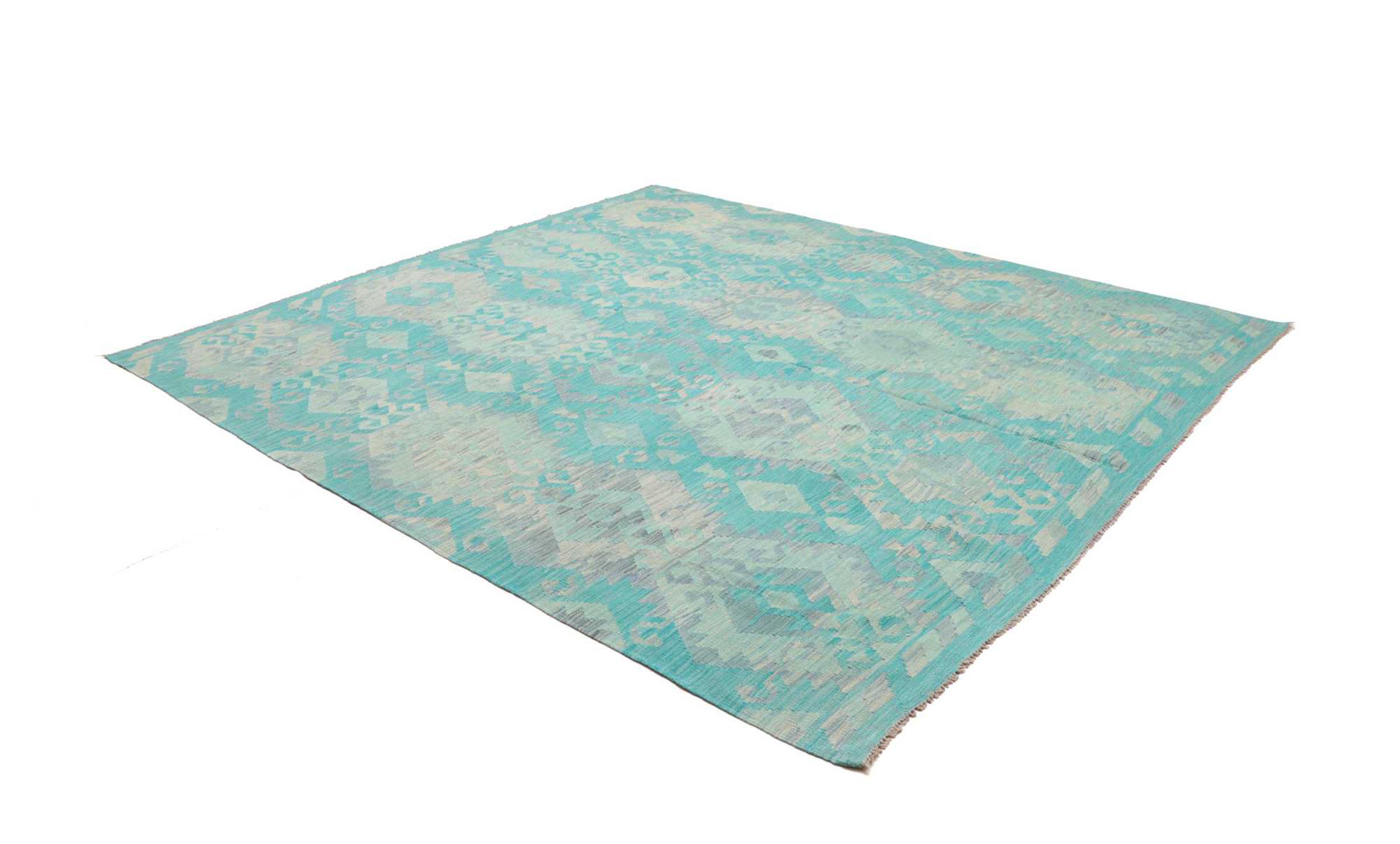 Estas alfombras kilim muestran una diferencia decisiva con las alfombras anudadas a mano - son tejidas a mano. Por lo tanto, no tienen un montón alto de lana y son a menudo más planos y más ásperos que las alfombras de lana anudada. Su fabricación es menos elaborada y por eso suelen ser mucho más baratas. Como ventaja, las alfombras de kilim son también mucho más ligeras y pueden ser colocadas por delante y por detrás. Los kilims tejidos a mano provienen originalmente de la antigua Persia y ahora también se fabrican a menudo en el Afganistán. Tienen patrones bastante simples y directos, que se deben a su técnica de tejido.