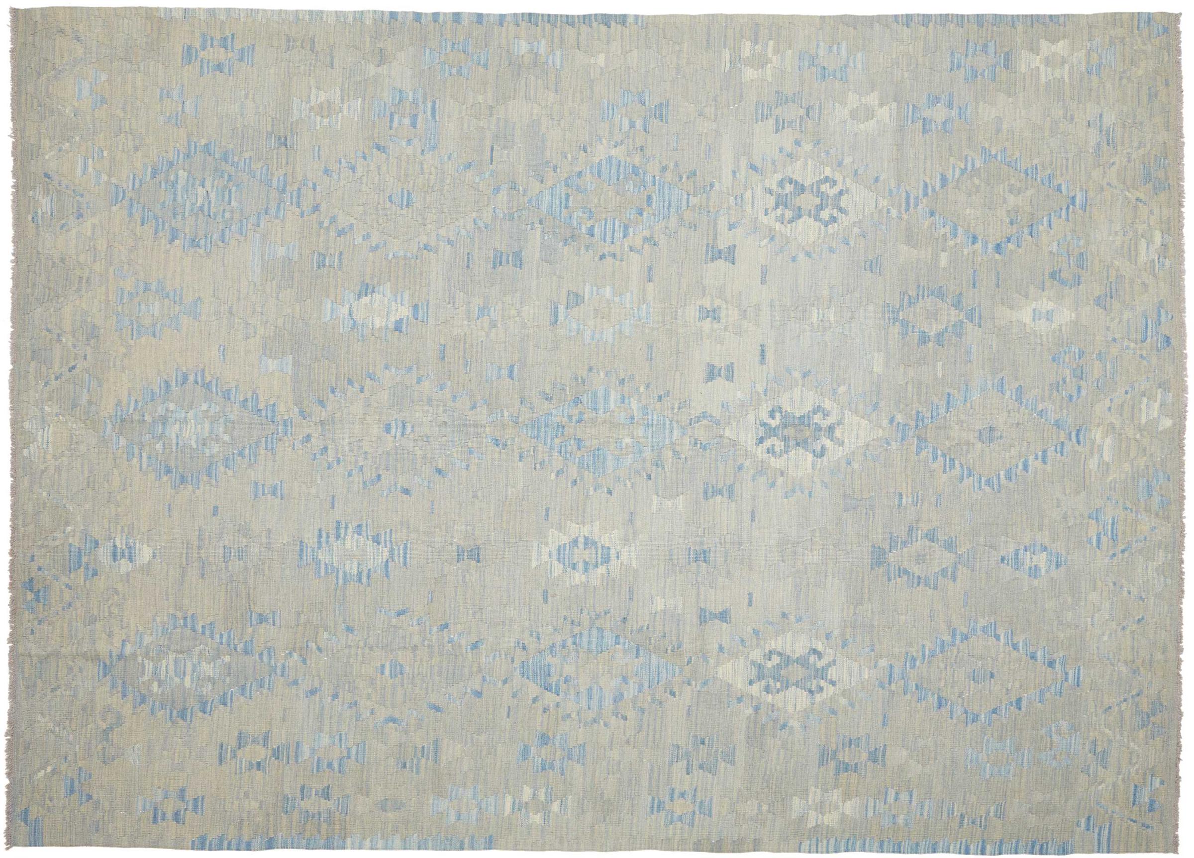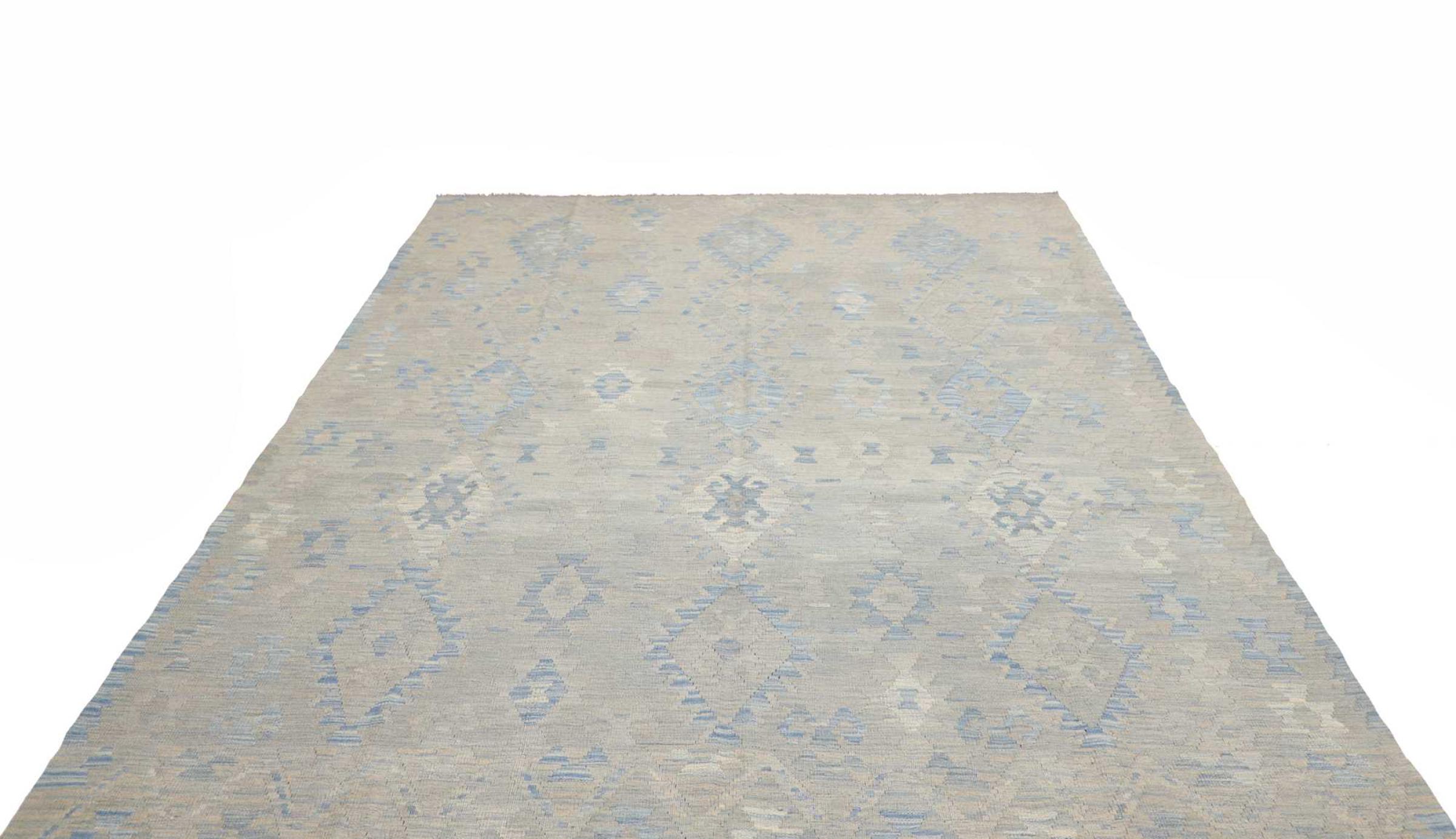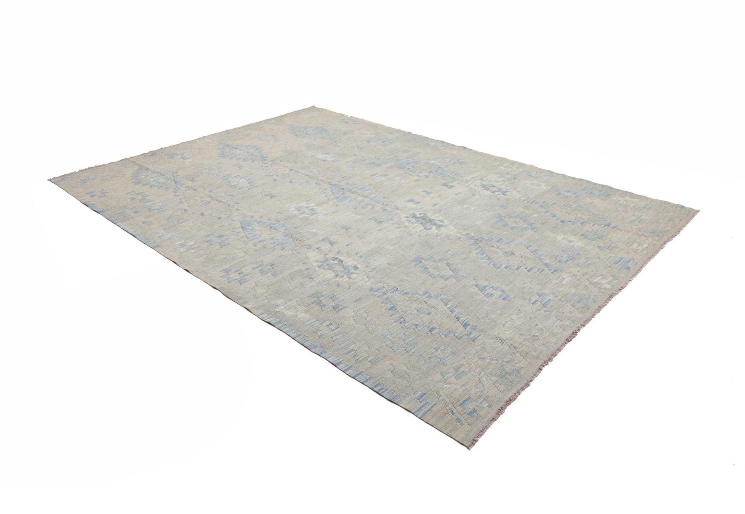 Estas alfombras kilim muestran una diferencia decisiva con las alfombras anudadas a mano - son tejidas a mano. Por lo tanto, no tienen un montón alto de lana y son a menudo más planos y más ásperos que las alfombras de lana anudada. Su fabricación es menos elaborada y por eso suelen ser mucho más baratas. Como ventaja, las alfombras de kilim son también mucho más ligeras y pueden ser colocadas por delante y por detrás. Los kilims tejidos a mano provienen originalmente de la antigua Persia y ahora también se fabrican a menudo en el Afganistán. Tienen patrones bastante simples y directos, que se deben a su técnica de tejido.