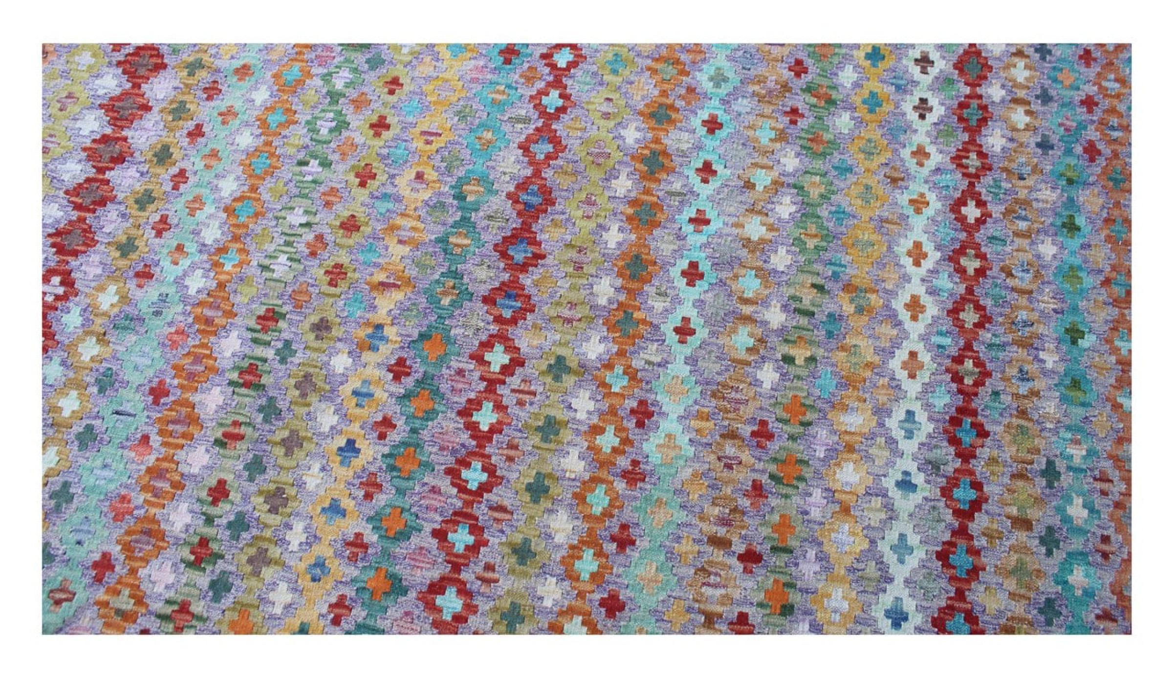 Estas alfombras kilim muestran una diferencia decisiva con las alfombras anudadas a mano - son tejidas a mano. Por lo tanto, no tienen un montón alto de lana y son a menudo más planos y más ásperos que las alfombras de lana anudada. Su fabricación es menos elaborada y por eso suelen ser mucho más baratas. Como ventaja, las alfombras de kilim son también mucho más ligeras y pueden ser colocadas por delante y por detrás. Los kilims tejidos a mano provienen originalmente de la antigua Persia y ahora también se fabrican a menudo en el Afganistán. Tienen patrones bastante simples y directos, que se deben a su técnica de tejido.