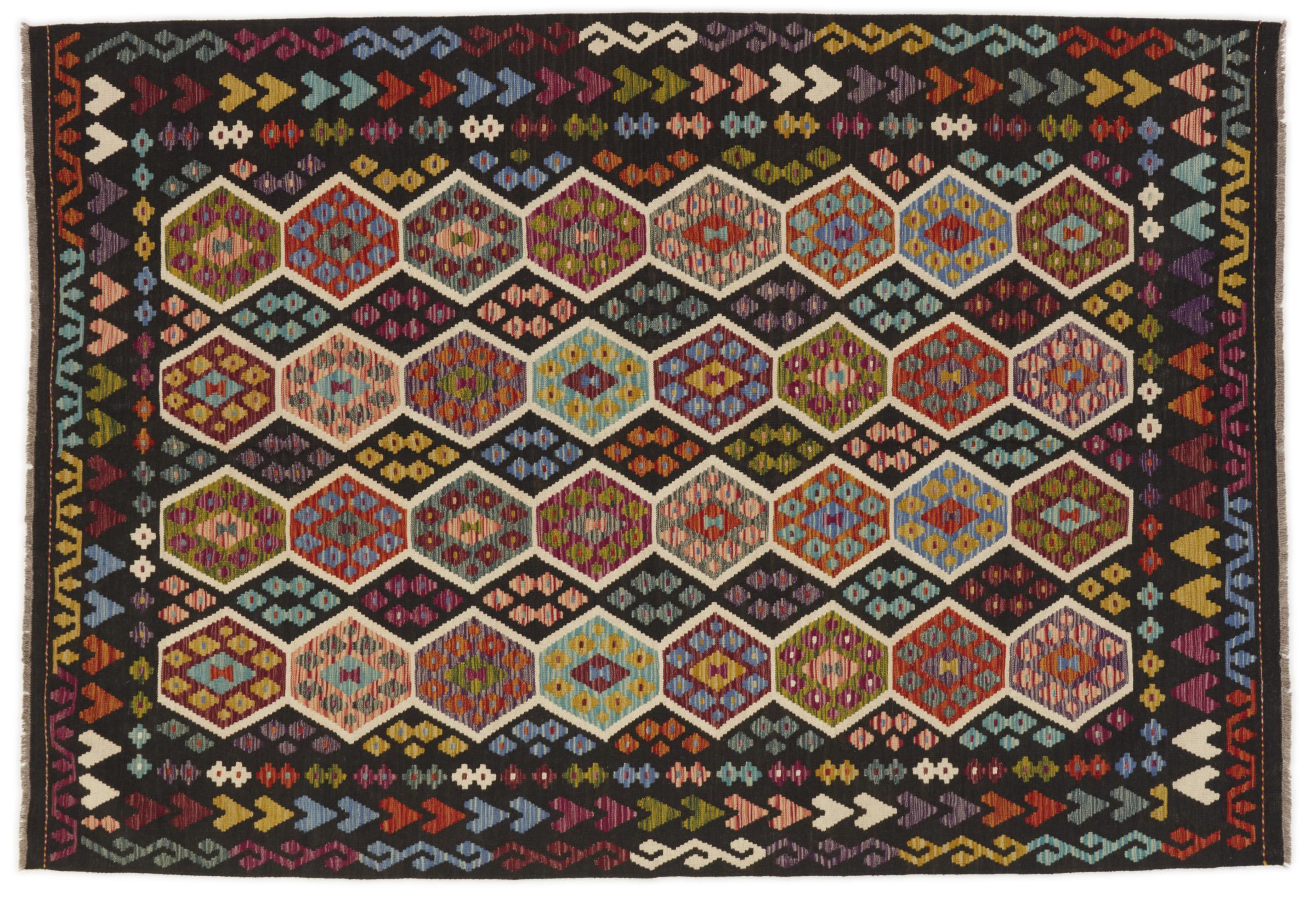 Estas alfombras kilim muestran una diferencia decisiva con las alfombras anudadas a mano - son tejidas a mano. Por lo tanto, no tienen un montón alto de lana y son a menudo más planos y más ásperos que las alfombras de lana anudada. Su fabricación es menos elaborada y por eso suelen ser mucho más baratas. Como ventaja, las alfombras de kilim son también mucho más ligeras y pueden ser colocadas por delante y por detrás. Los kilims tejidos a mano provienen originalmente de la antigua Persia y ahora también se fabrican a menudo en el Afganistán. Tienen patrones bastante simples y directos, que se deben a su técnica de tejido.