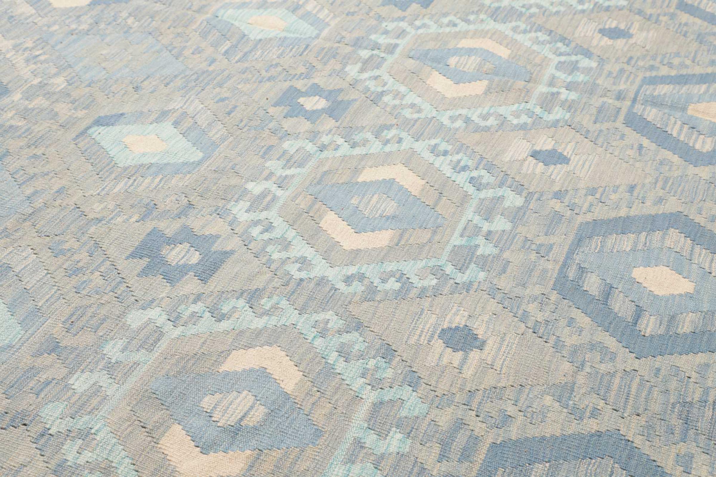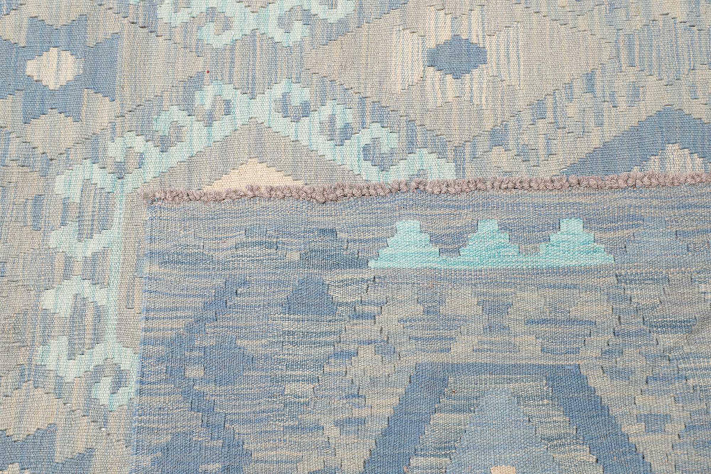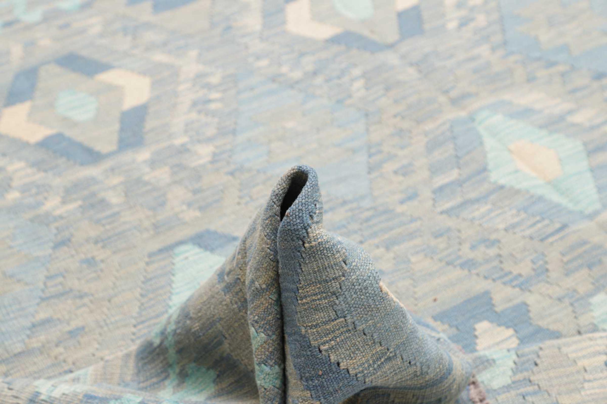 Estas alfombras kilim muestran una diferencia decisiva con las alfombras anudadas a mano - son tejidas a mano. Por lo tanto, no tienen un montón alto de lana y son a menudo más planos y más ásperos que las alfombras de lana anudada. Su fabricación es menos elaborada y por eso suelen ser mucho más baratas. Como ventaja, las alfombras de kilim son también mucho más ligeras y pueden ser colocadas por delante y por detrás. Los kilims tejidos a mano provienen originalmente de la antigua Persia y ahora también se fabrican a menudo en el Afganistán. Tienen patrones bastante simples y directos, que se deben a su técnica de tejido.