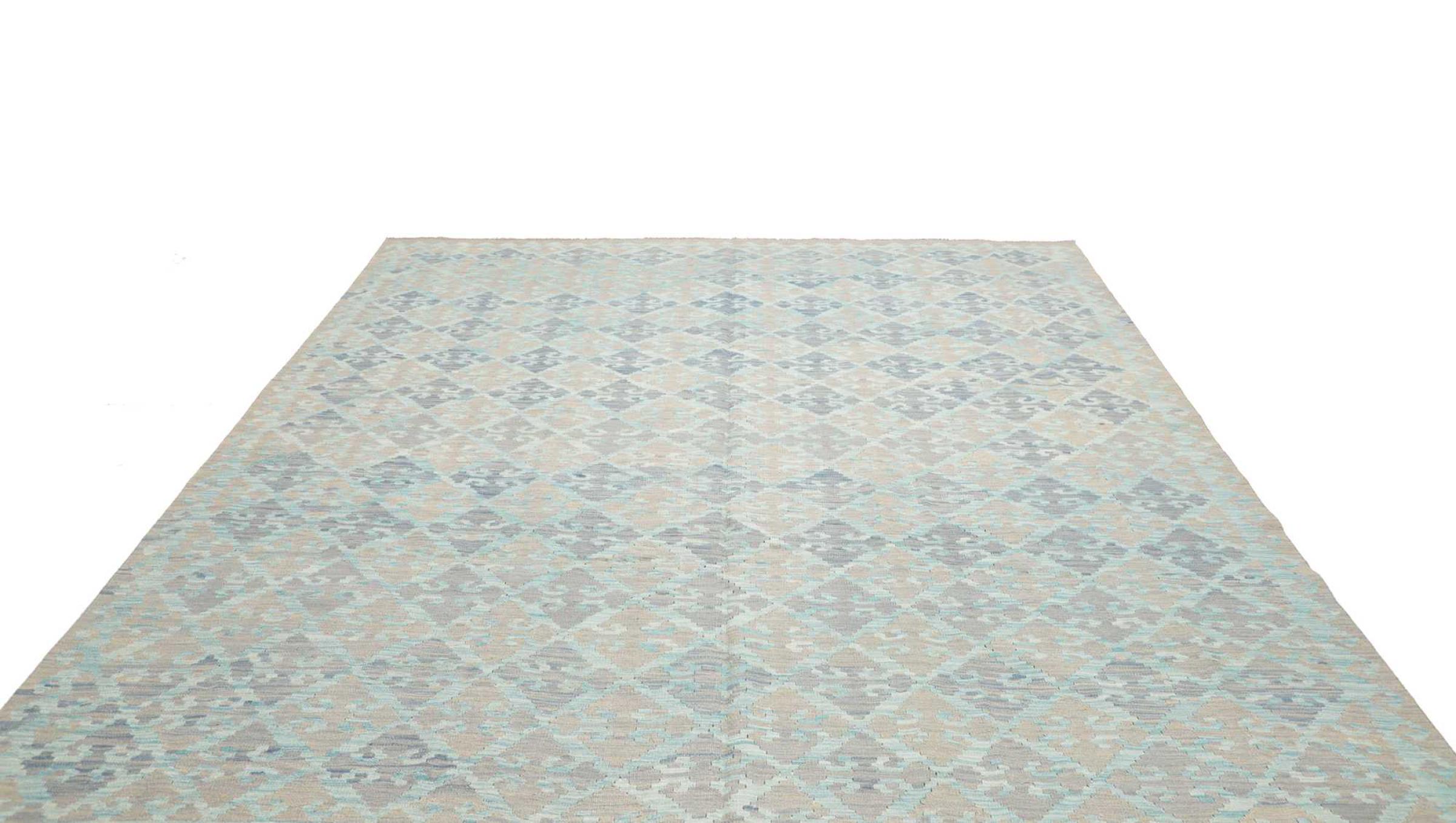 Estas alfombras kilim muestran una diferencia decisiva con las alfombras anudadas a mano - son tejidas a mano. Por lo tanto, no tienen un montón alto de lana y son a menudo más planos y más ásperos que las alfombras de lana anudada. Su fabricación es menos elaborada y por eso suelen ser mucho más baratas. Como ventaja, las alfombras de kilim son también mucho más ligeras y pueden ser colocadas por delante y por detrás. Los kilims tejidos a mano provienen originalmente de la antigua Persia y ahora también se fabrican a menudo en el Afganistán. Tienen patrones bastante simples y directos, que se deben a su técnica de tejido.